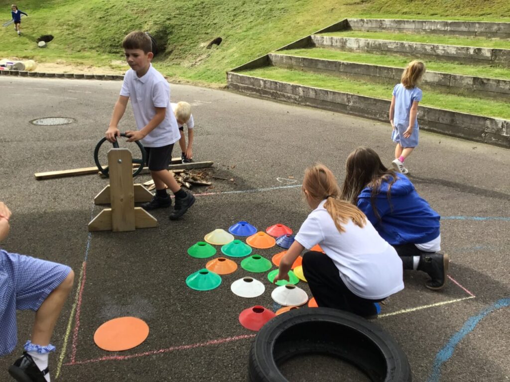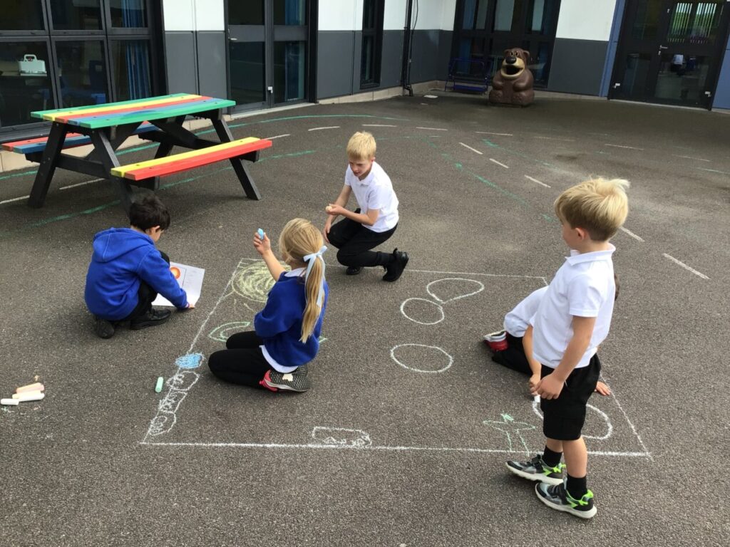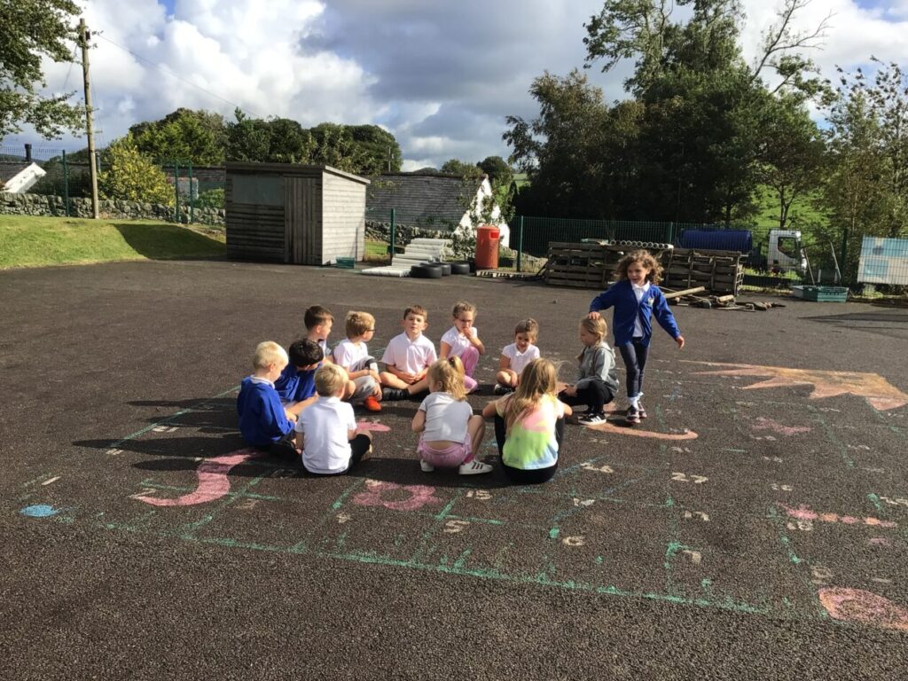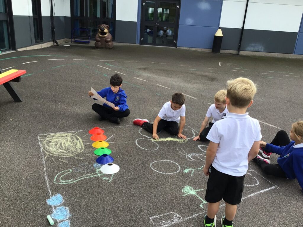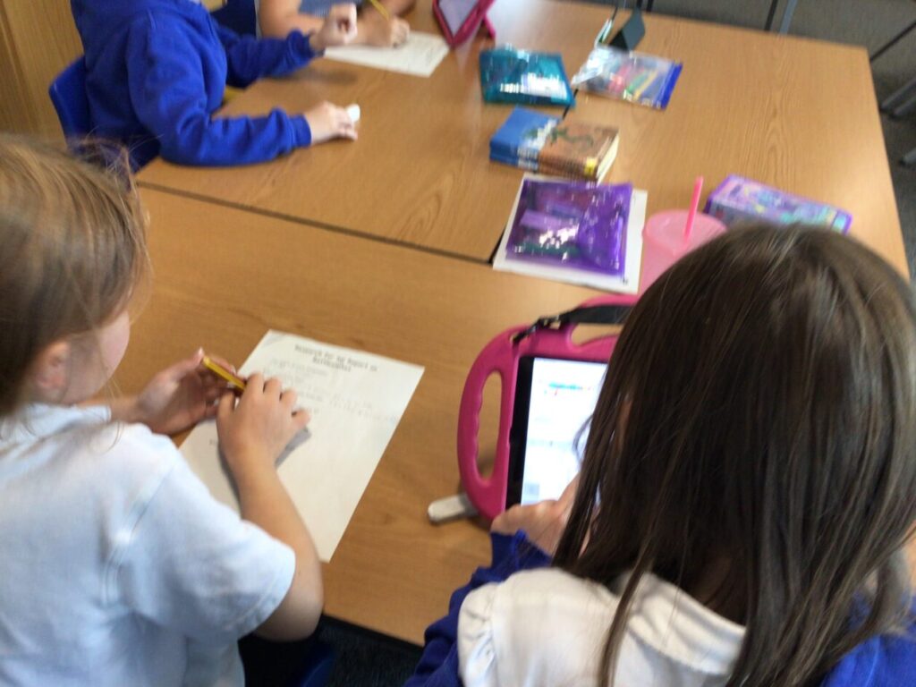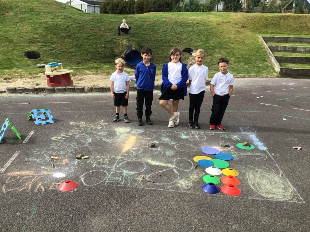 The blue class were doing different activities for maths. We were playing Topmarks on the laptop and place value activities inside and outside. – Ella