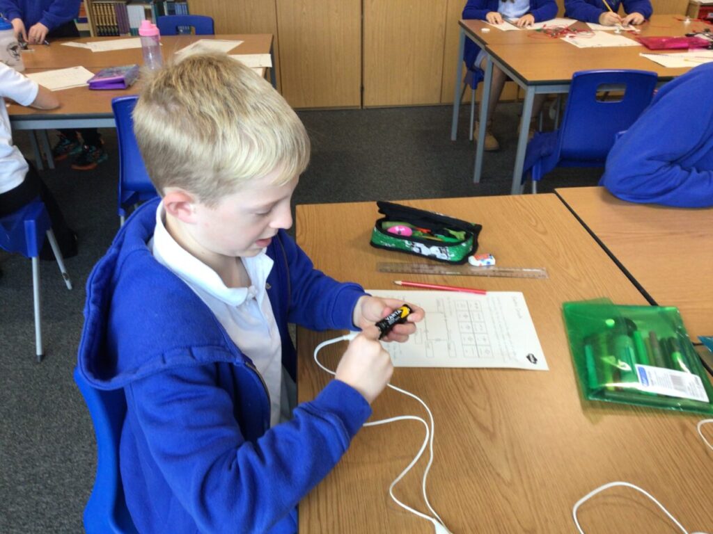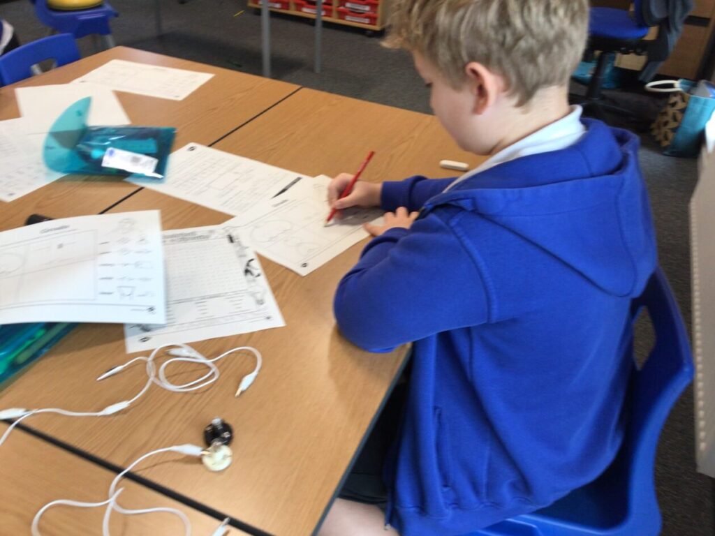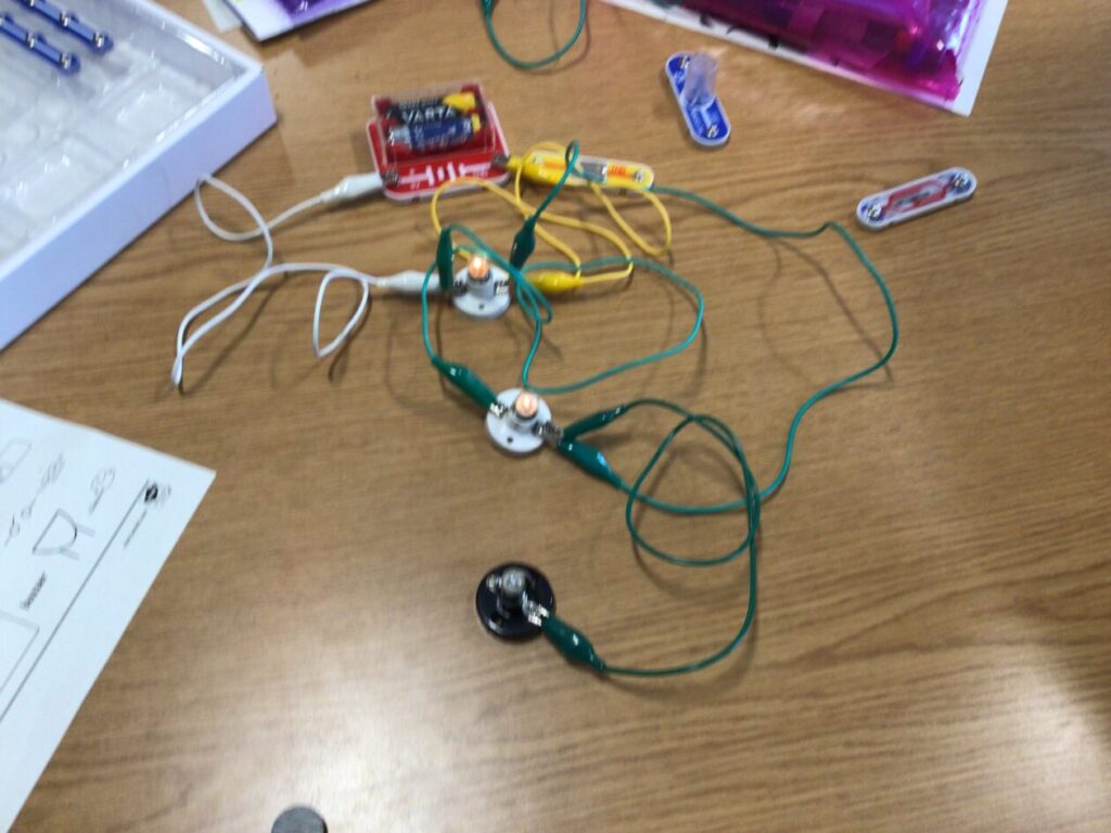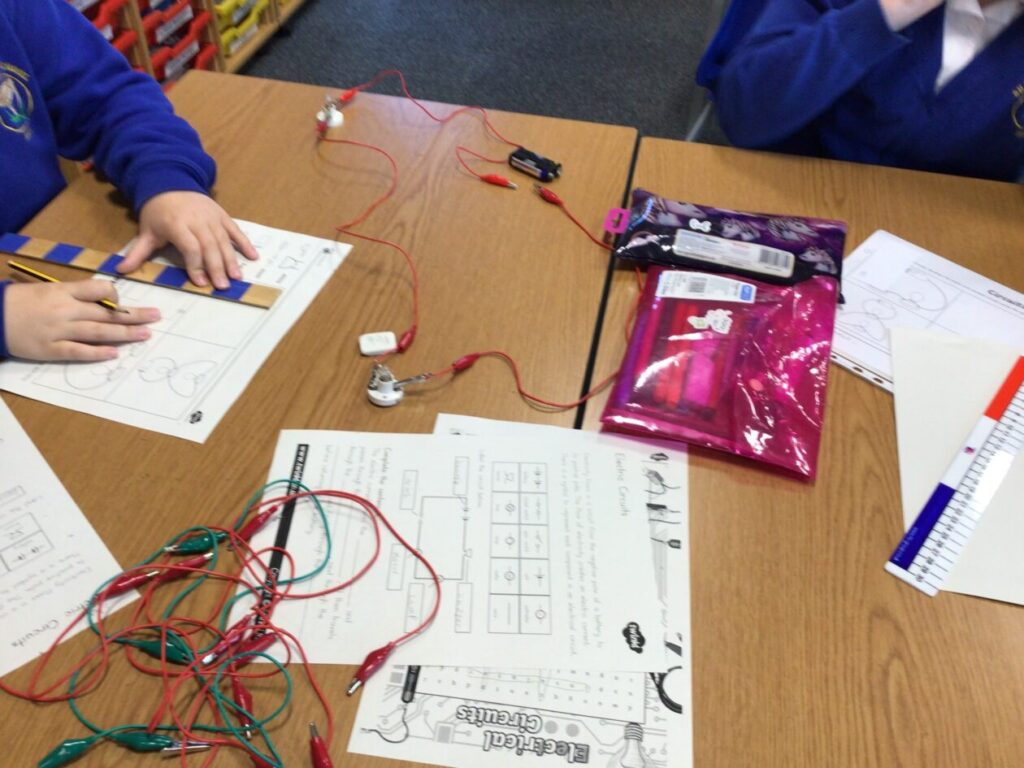 We were making circuits for our electricity topic, my circuit lit up. We also had to draw circuits using straight lines. – Mirren