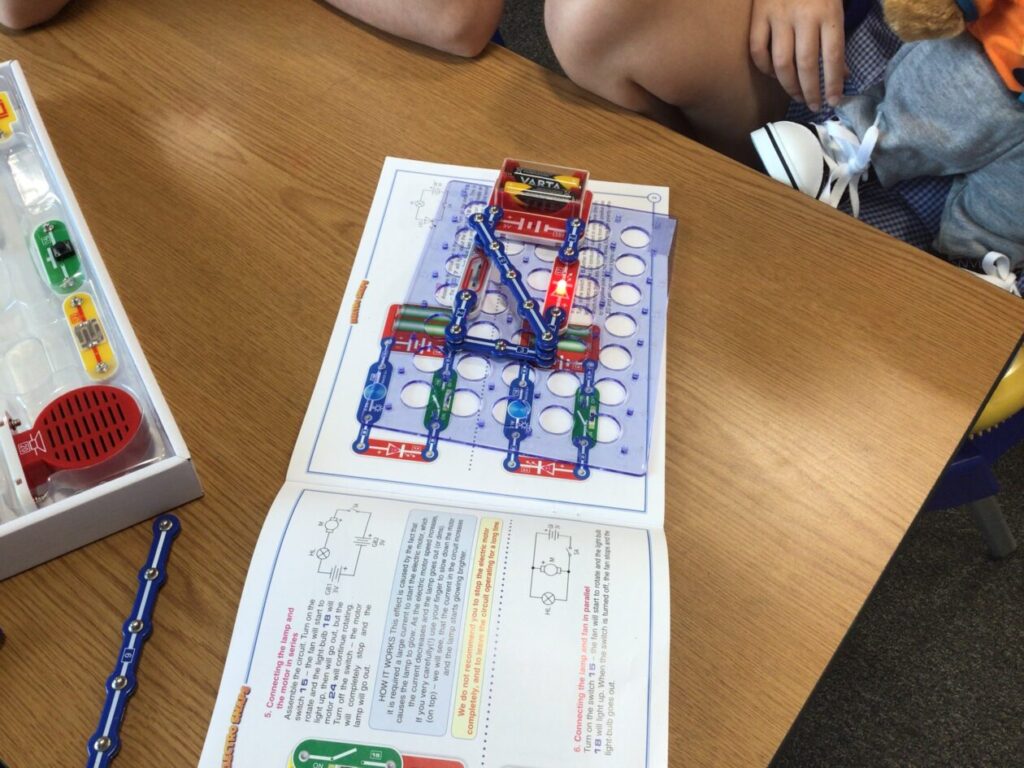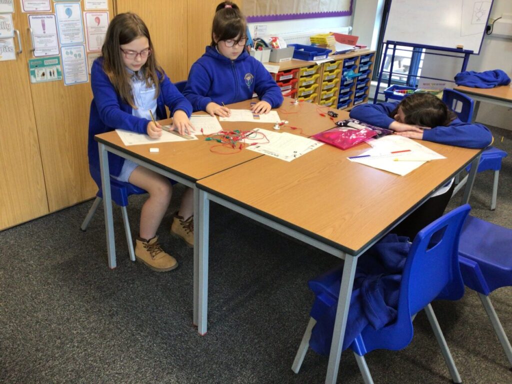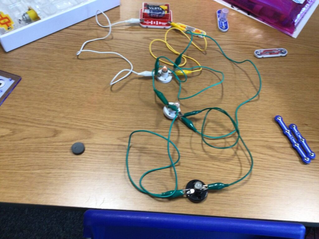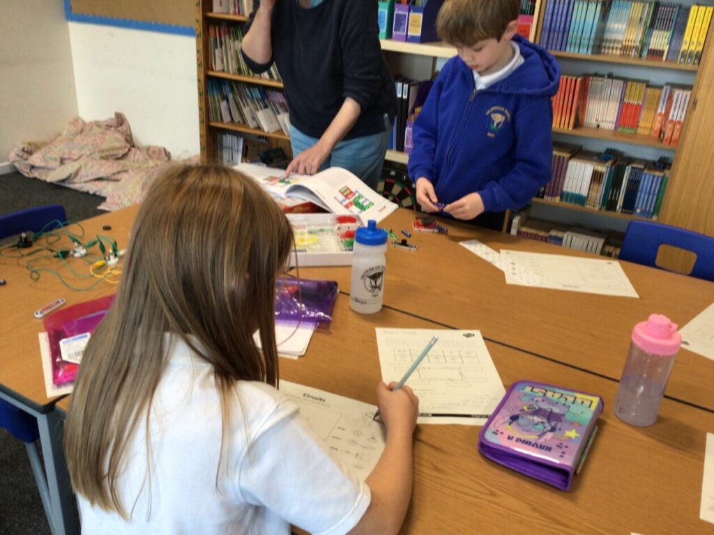 We were making circuits for our electricity topic, my circuit lit up. We also had to draw circuits using straight lines. – Mirren