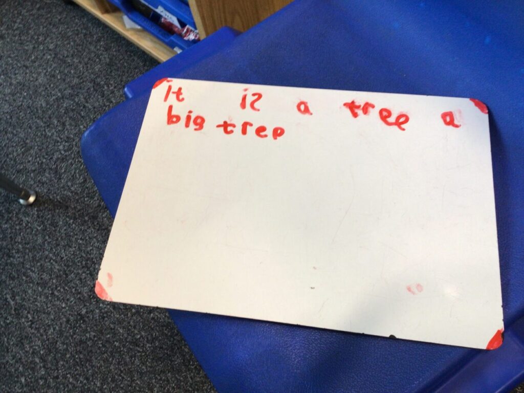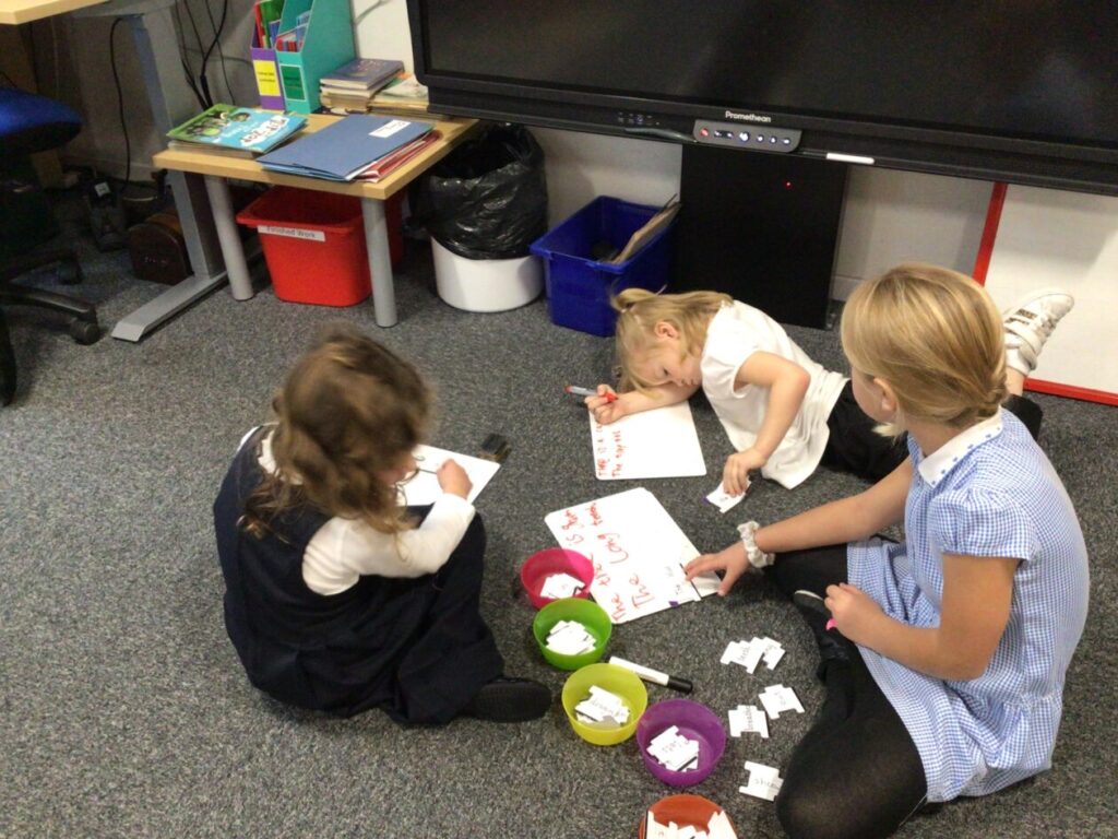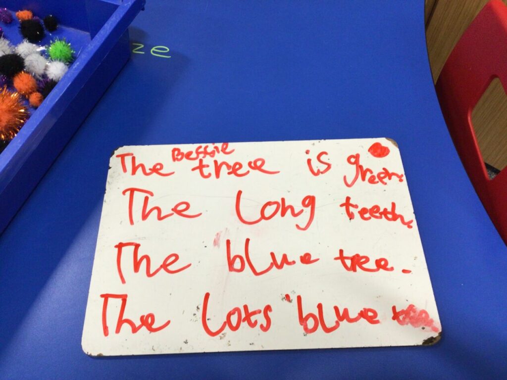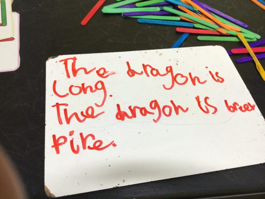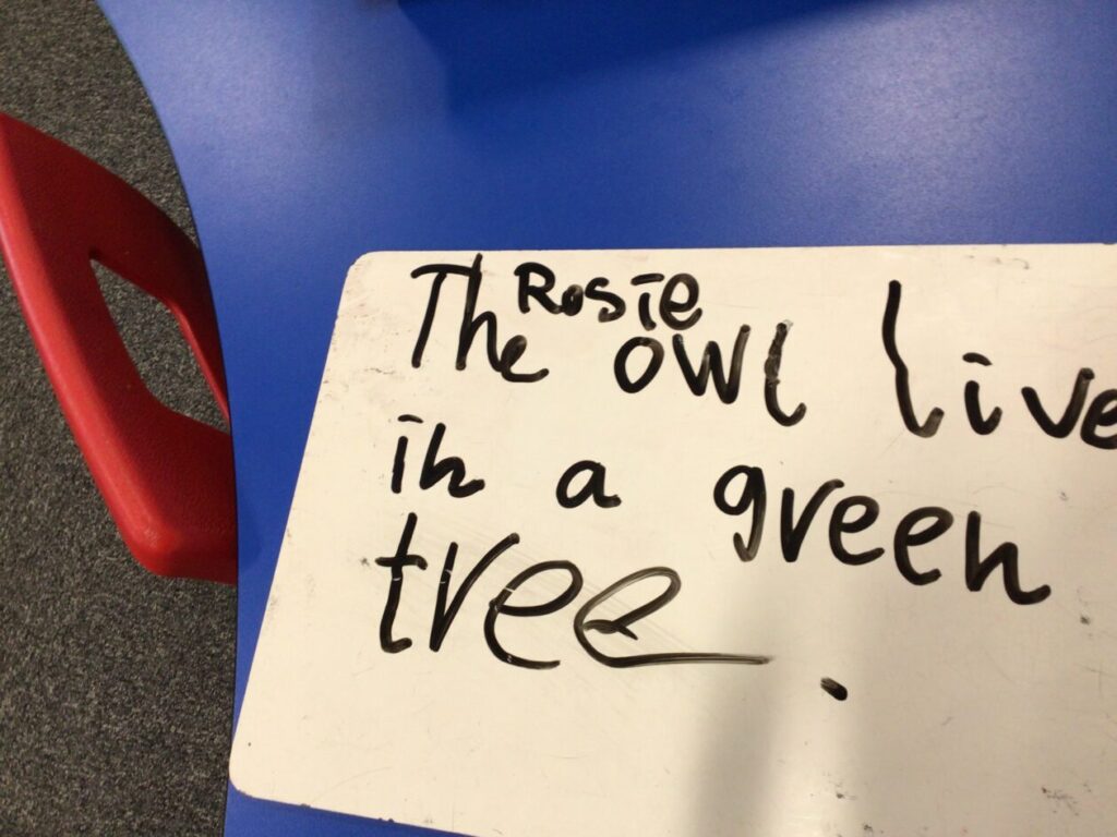 We were putting the different words together so they made sense for a sentence then copied it out onto a whiteboard. – Rosie