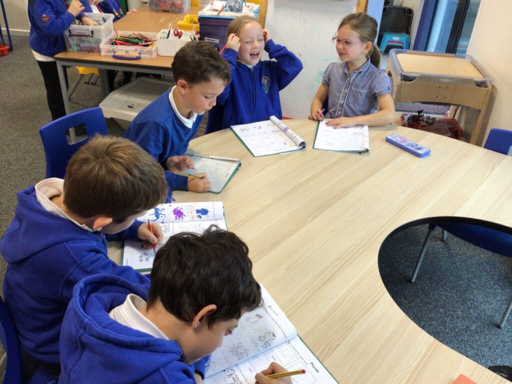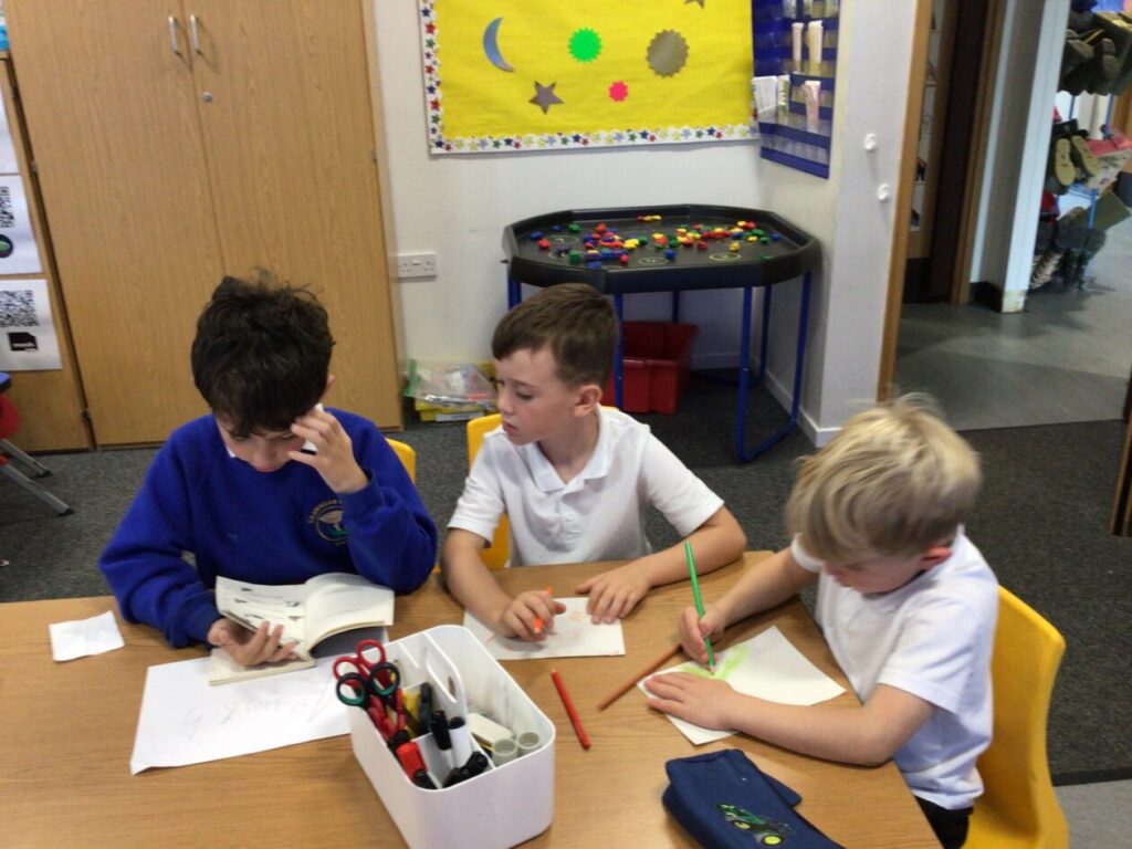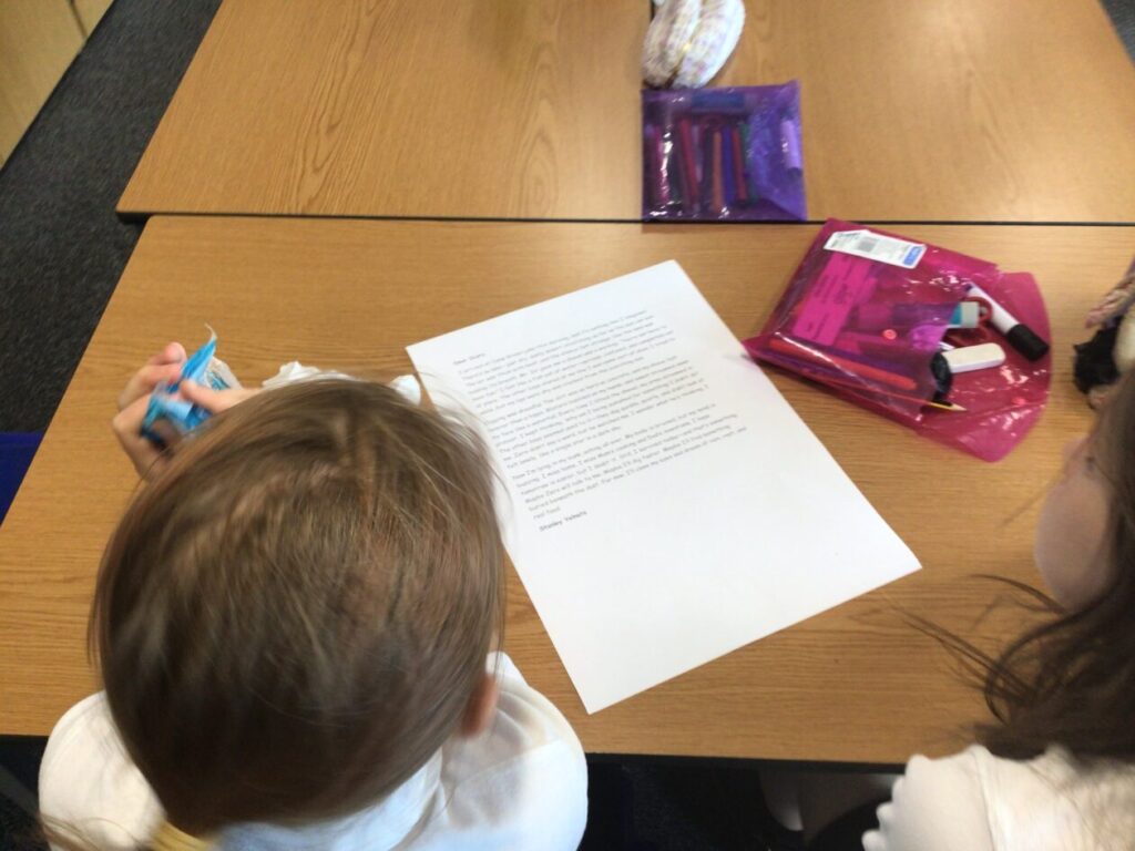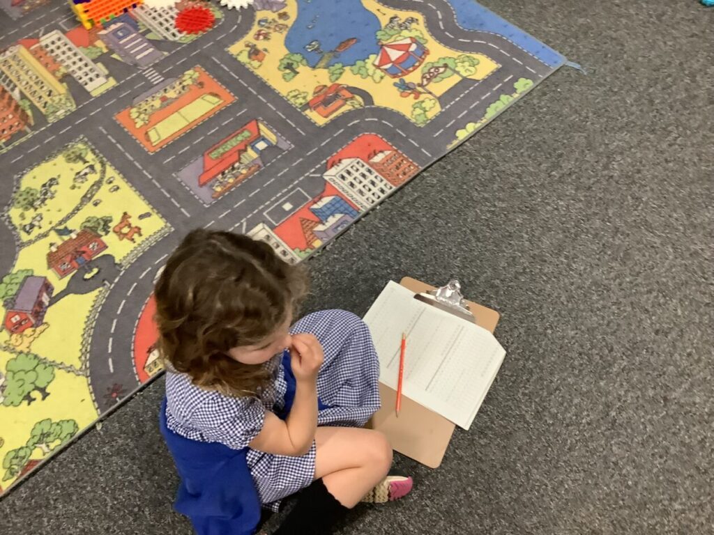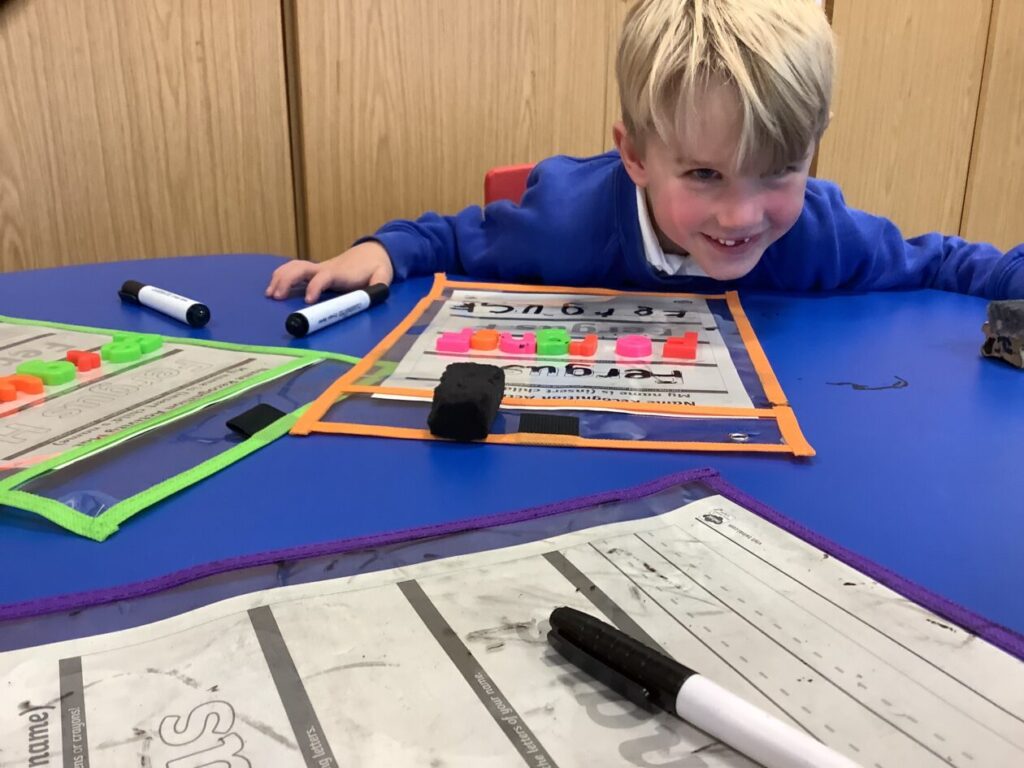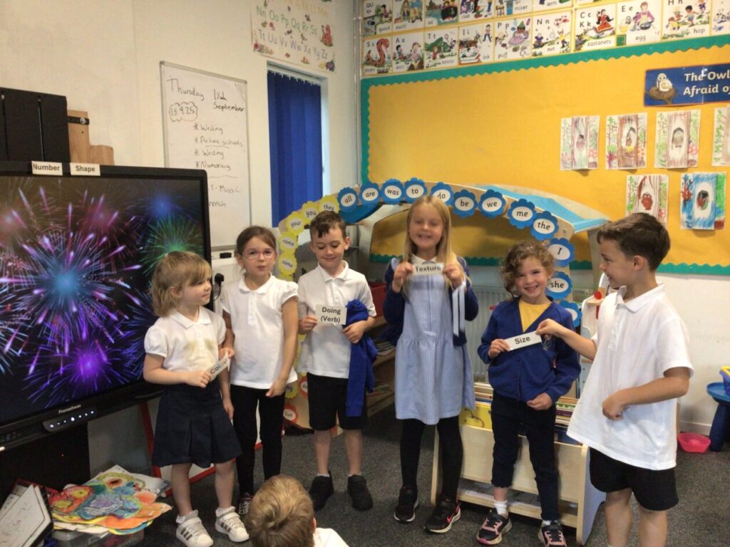 We were putting the different words together so they made sense for a sentence then copied it out onto a whiteboard. – Rosie