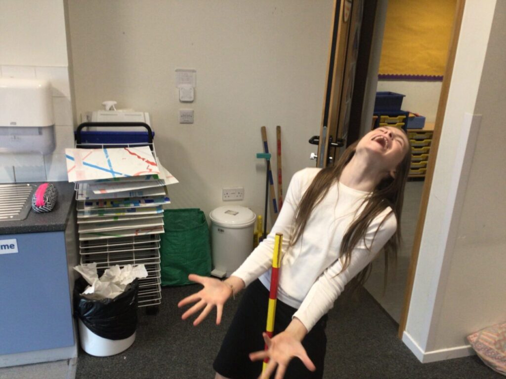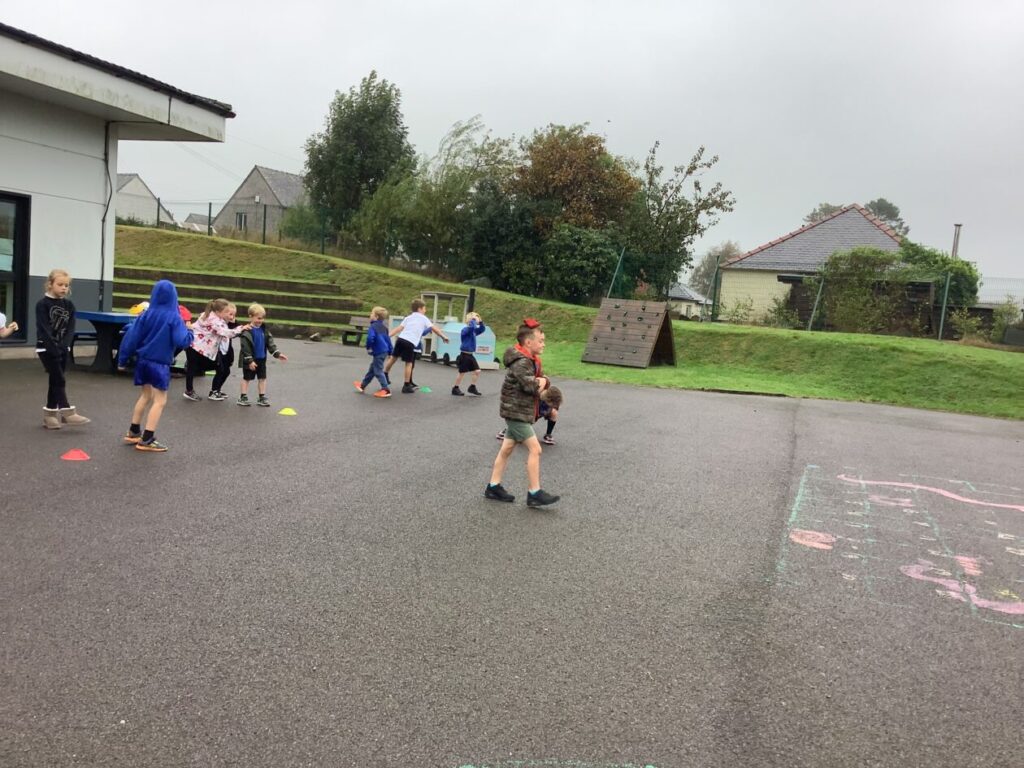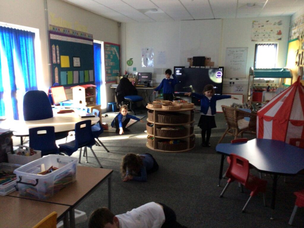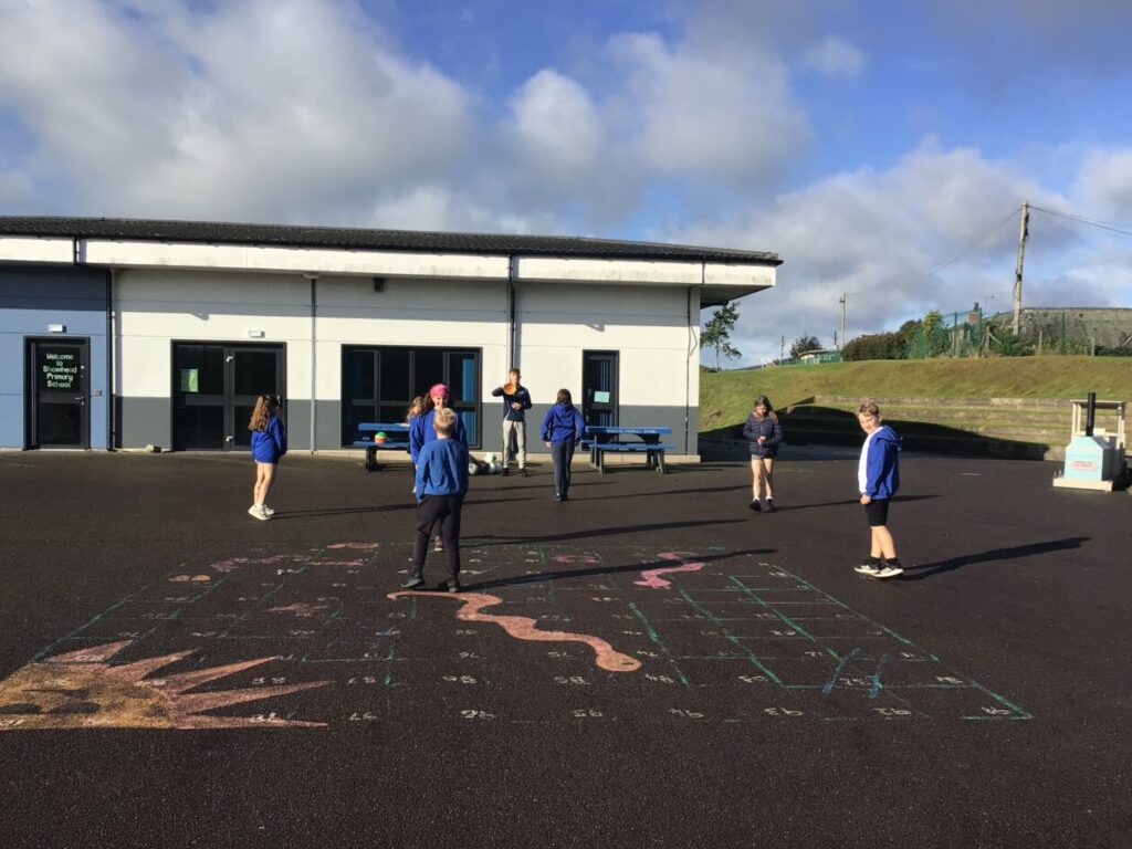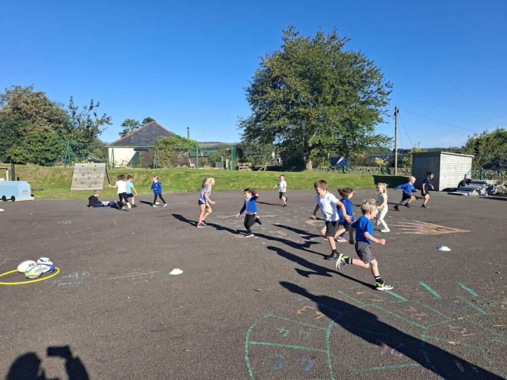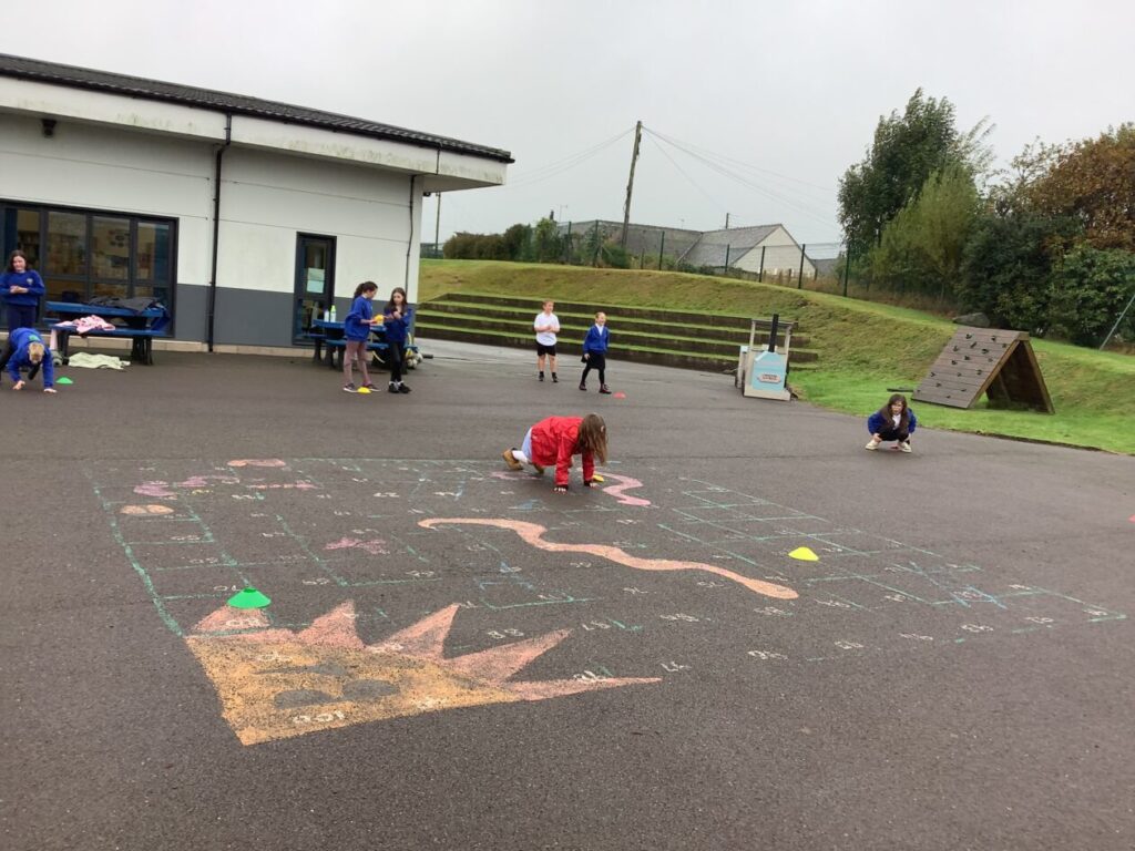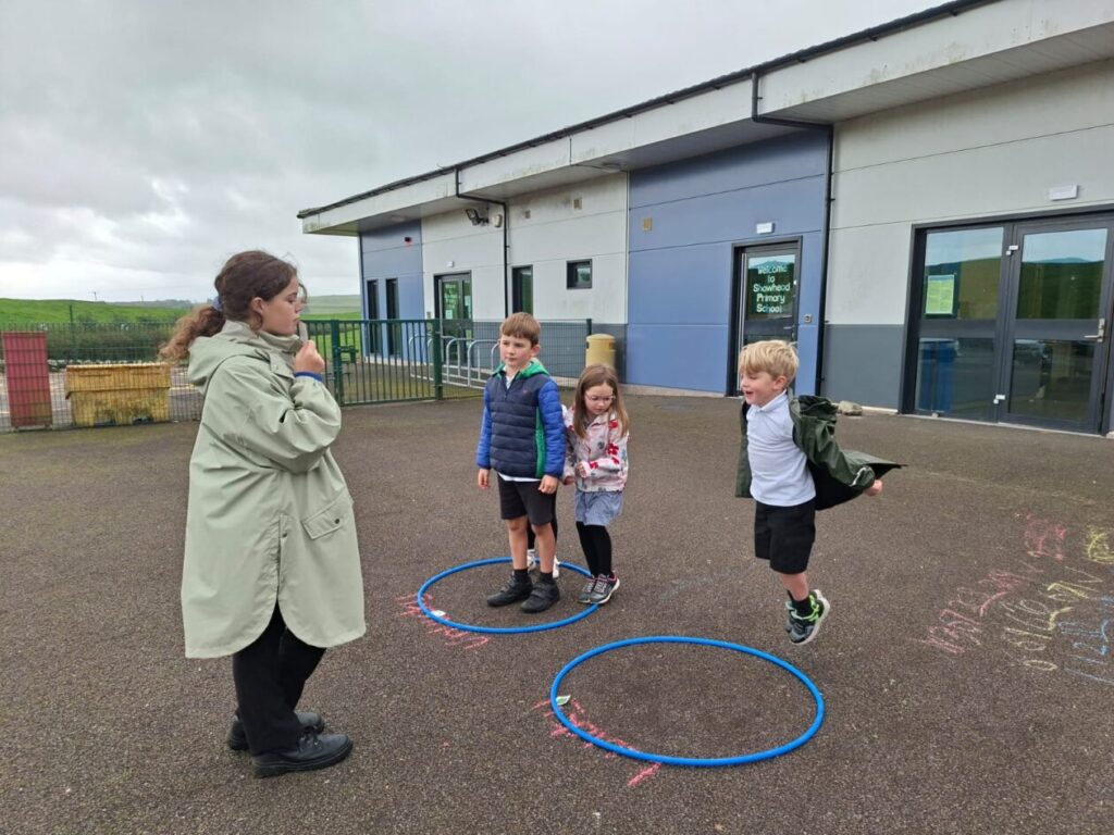 For active schools we were balancing bean bags on our head. We were having different races and Ella forgot how to skip! We also played different games. – Ella & Ruairi