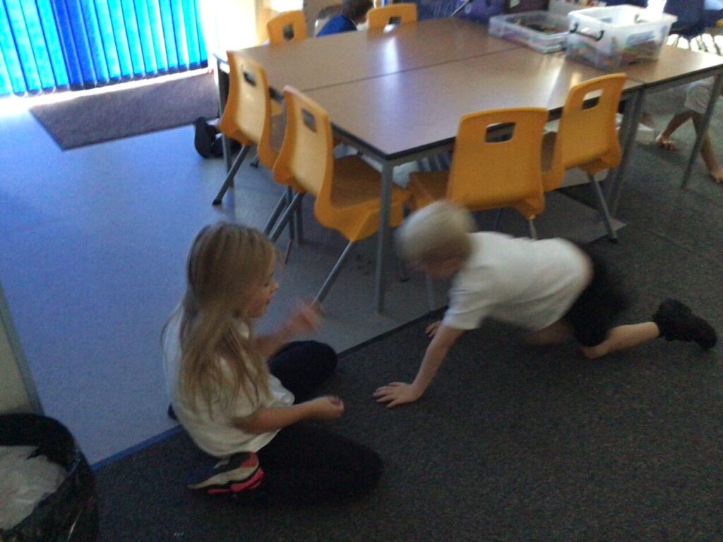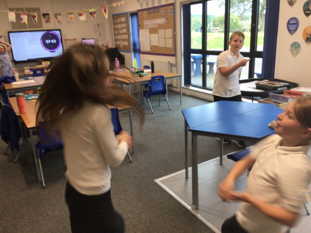In PE we were doing some team building in our houses. We had to get the bean bags from the middle and after Miss McKinnon blew the whistle we had to steal the bean bags from the other teams! – Lola & Zara