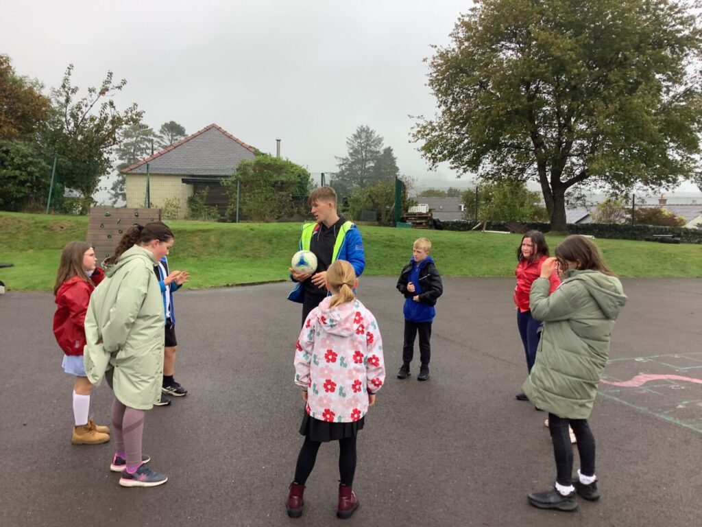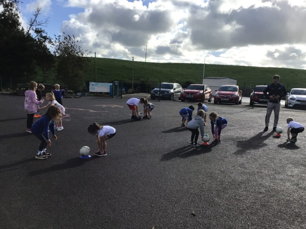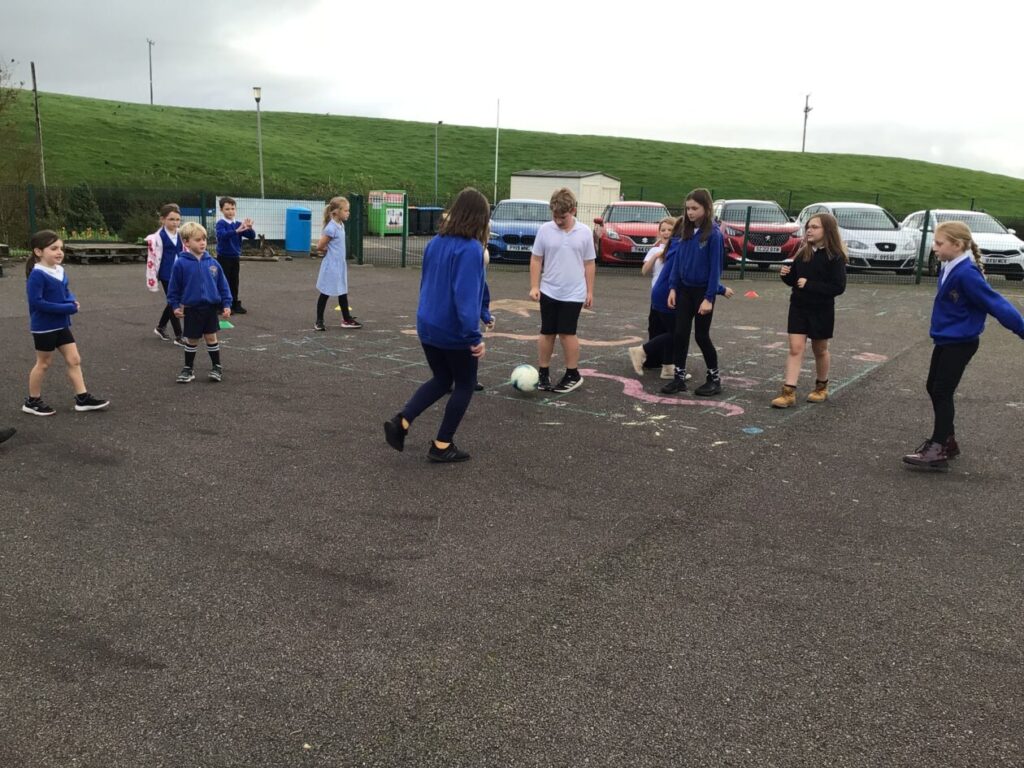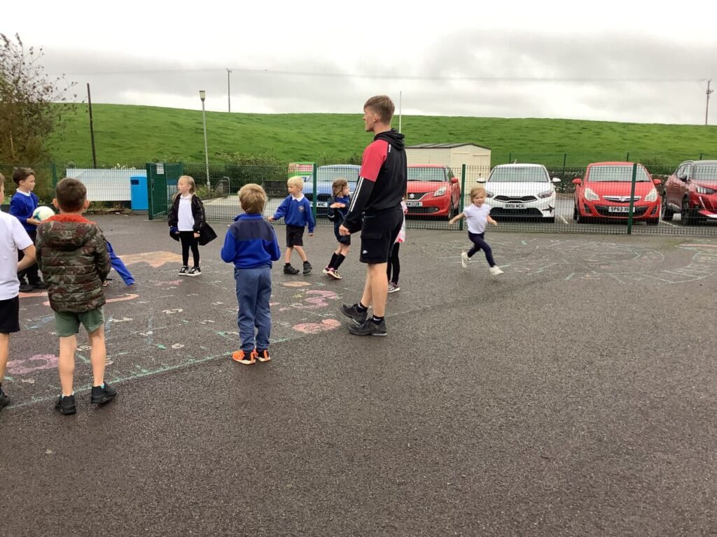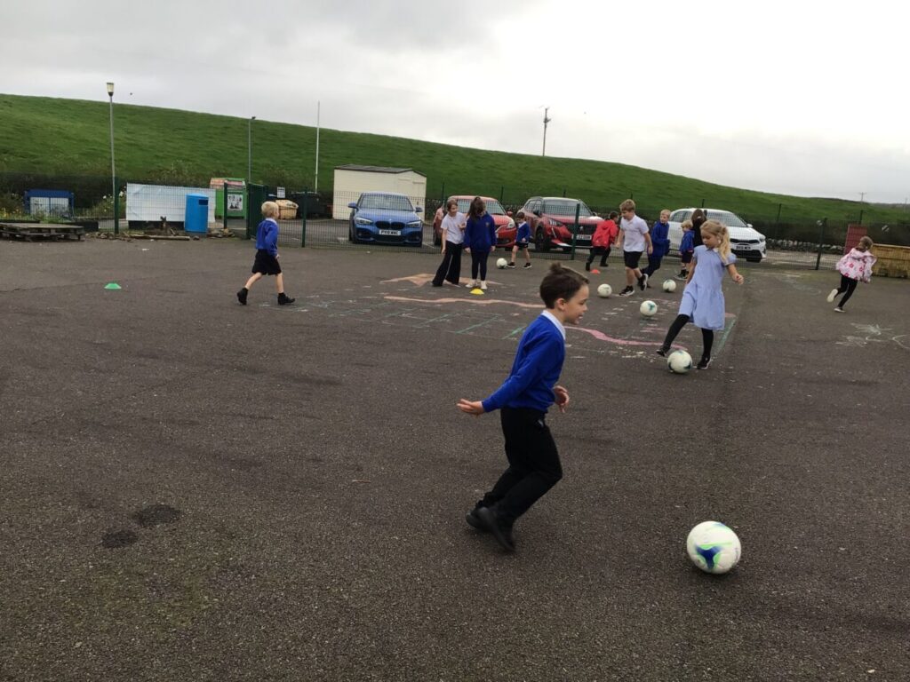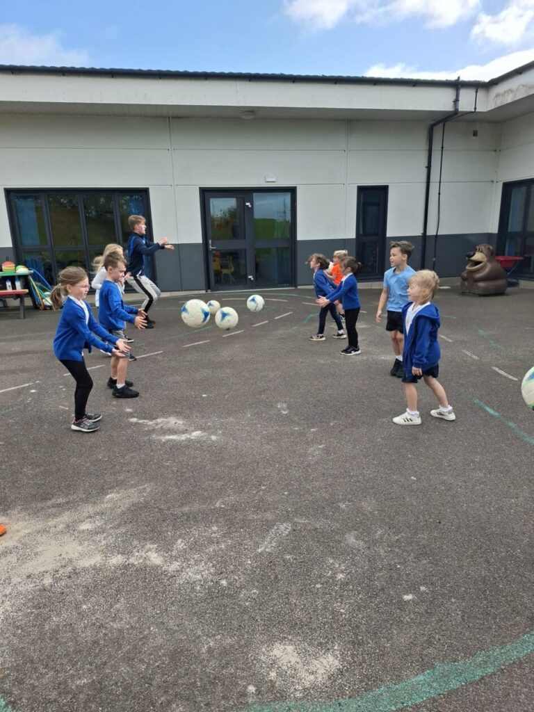 We had active schools in to do football with us. We played a game where we had to tackle each other and get the ball. When he shouted ‘stop’ you had to swap balls with another person. – Asa