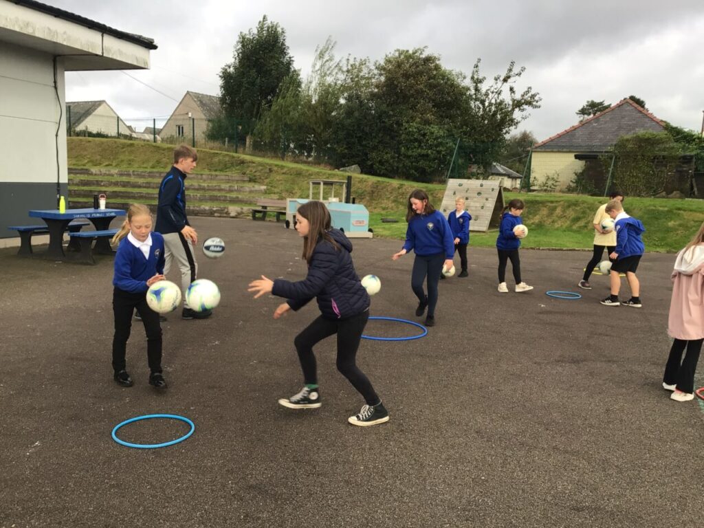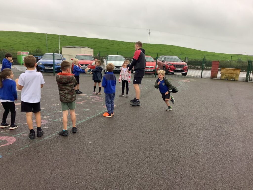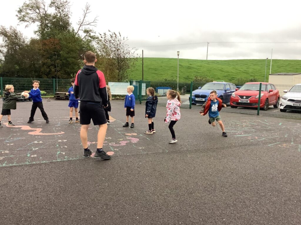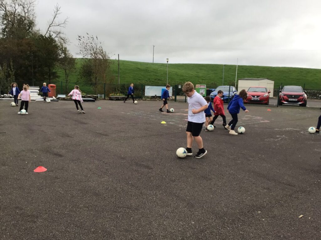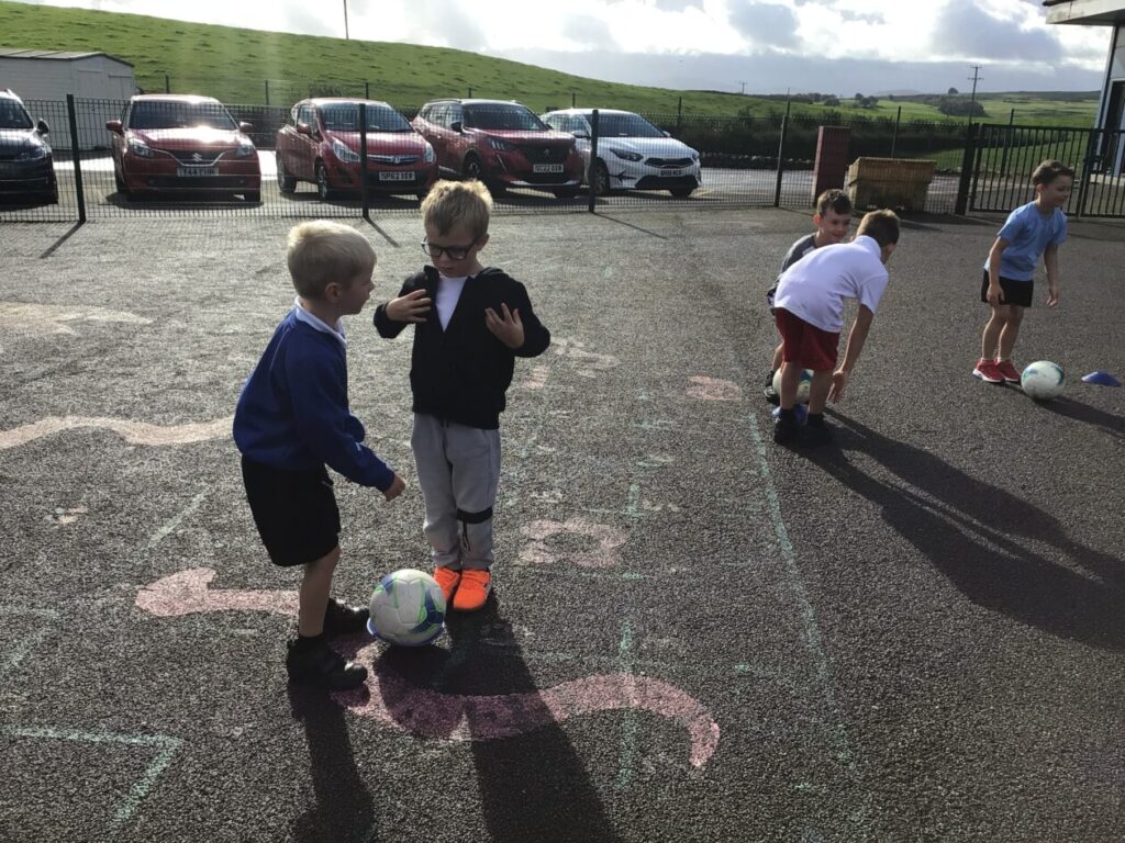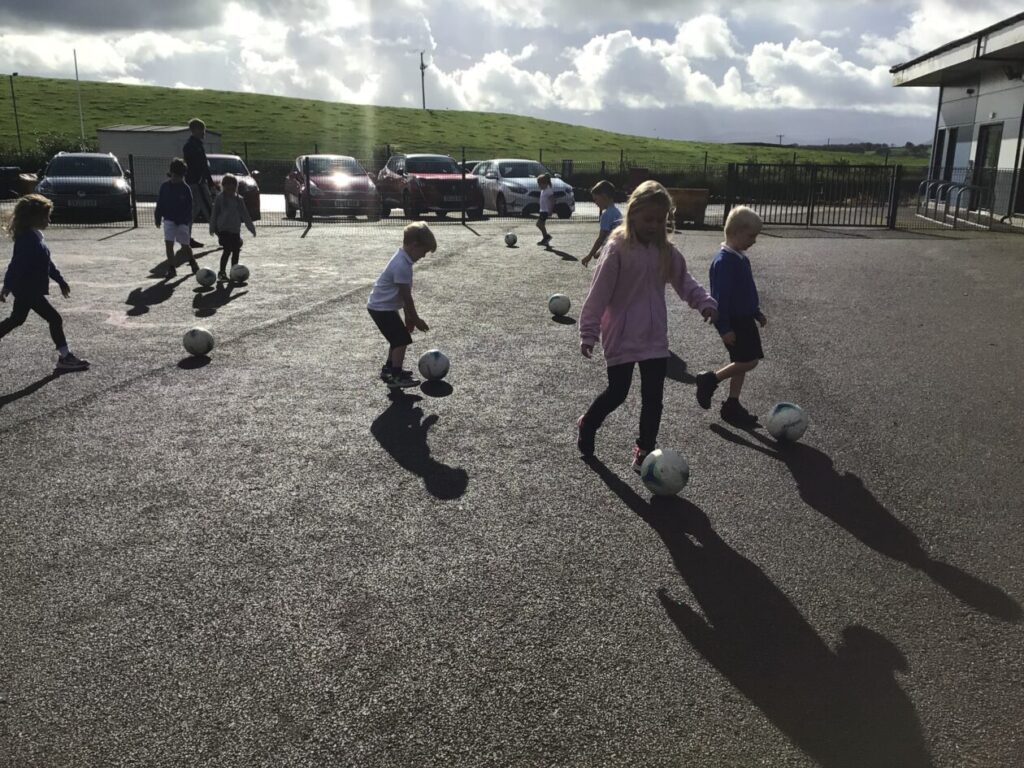 We had active schools in to do football with us. We played a game where we had to tackle each other and get the ball. When he shouted ‘stop’ you had to swap balls with another person. – Asa