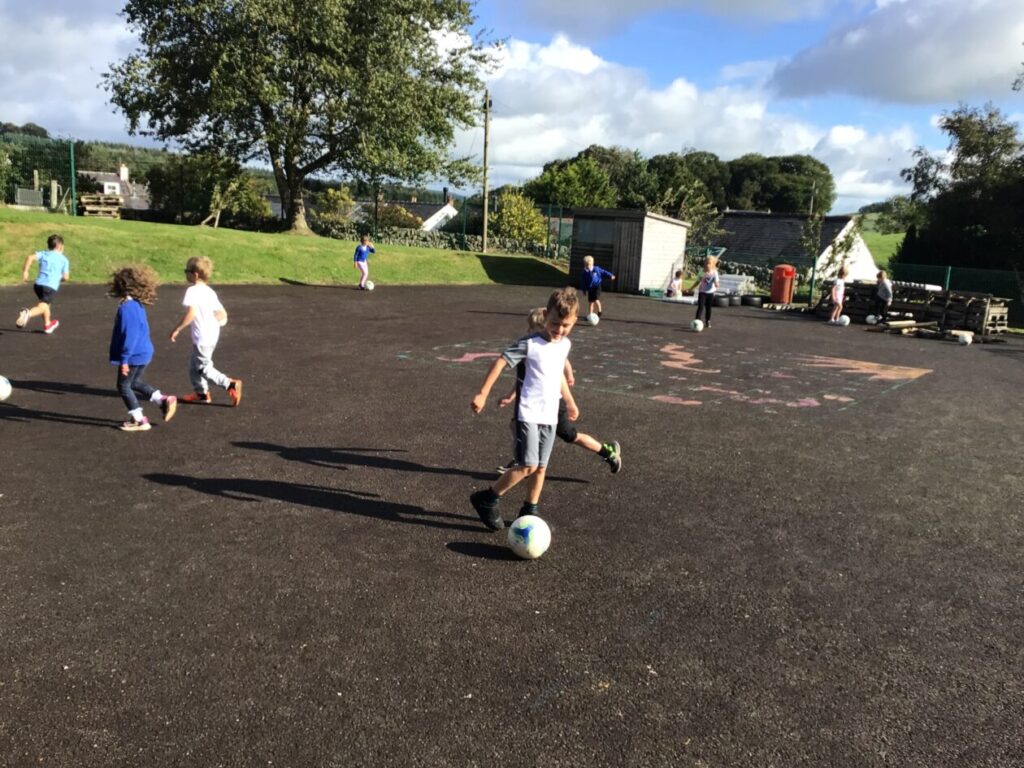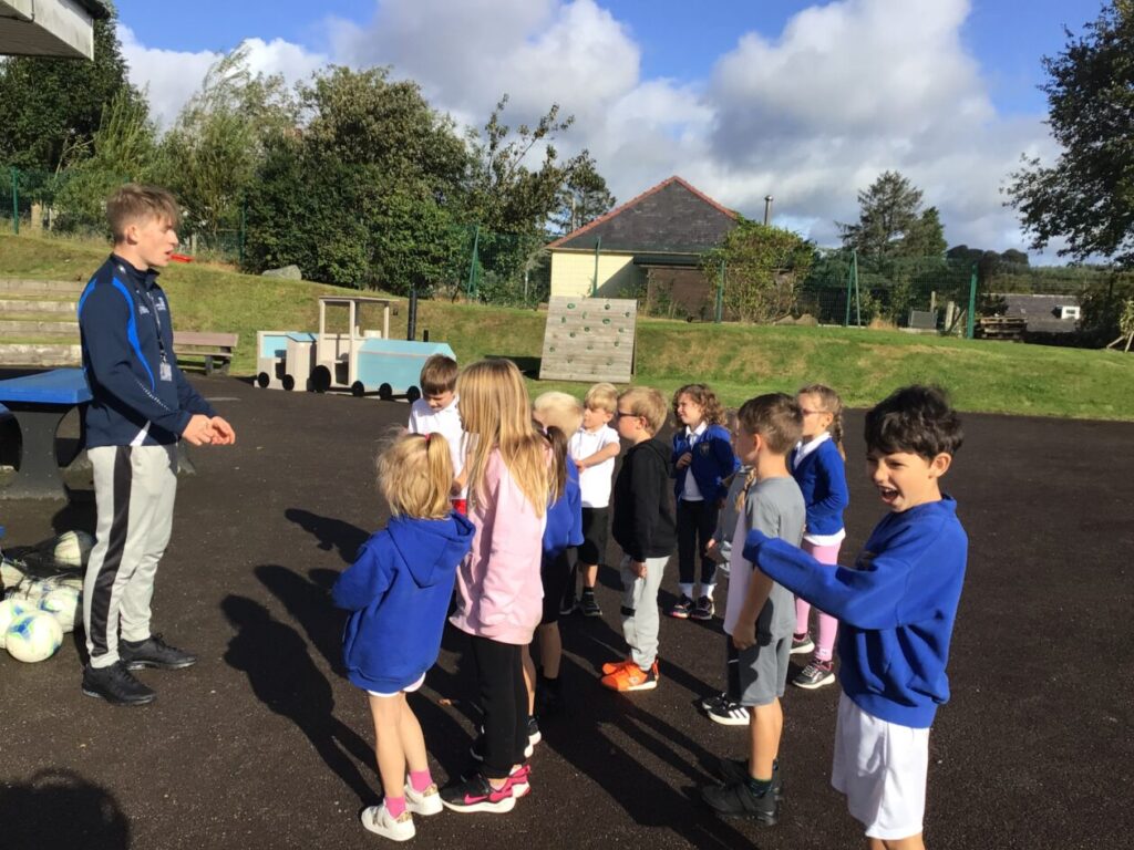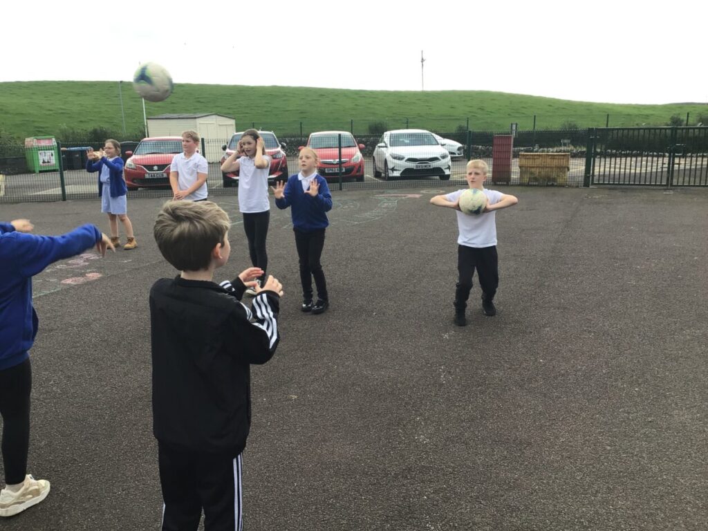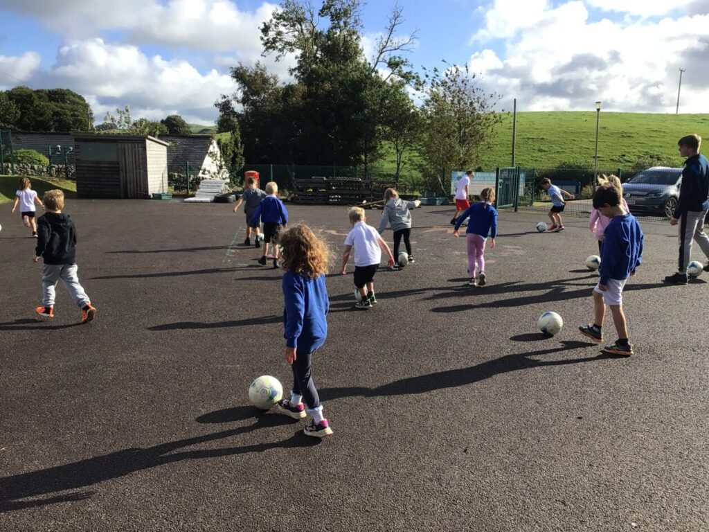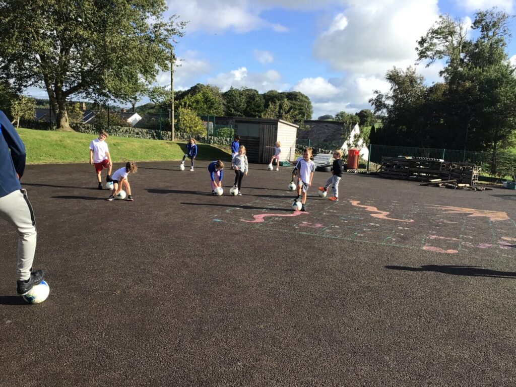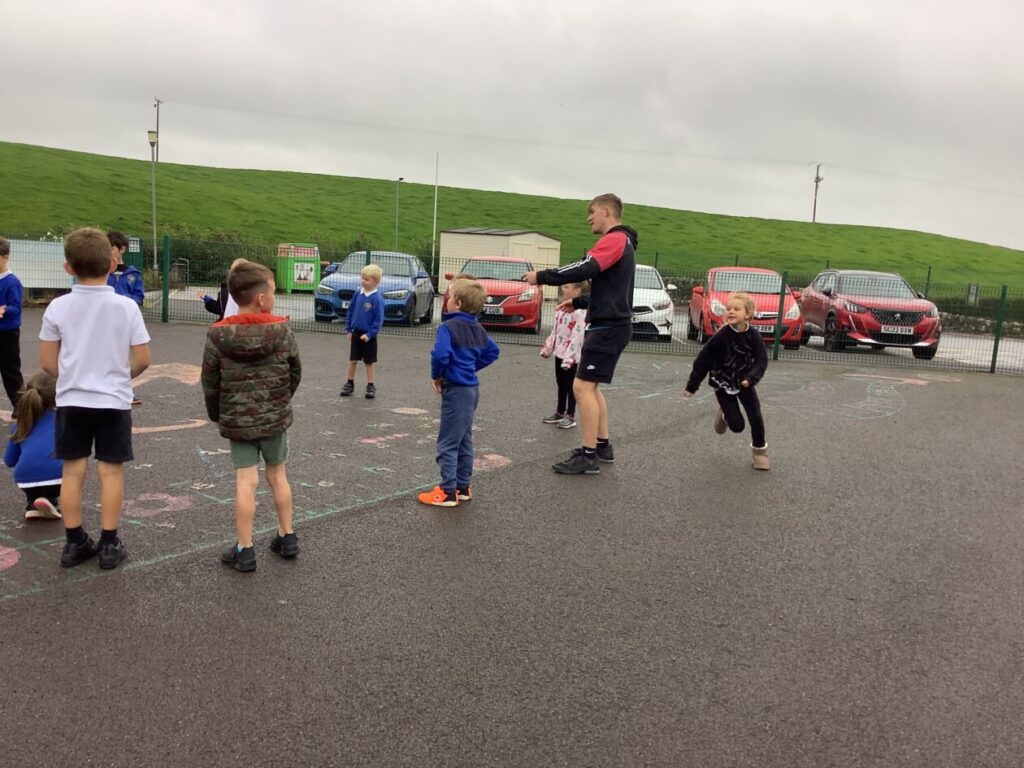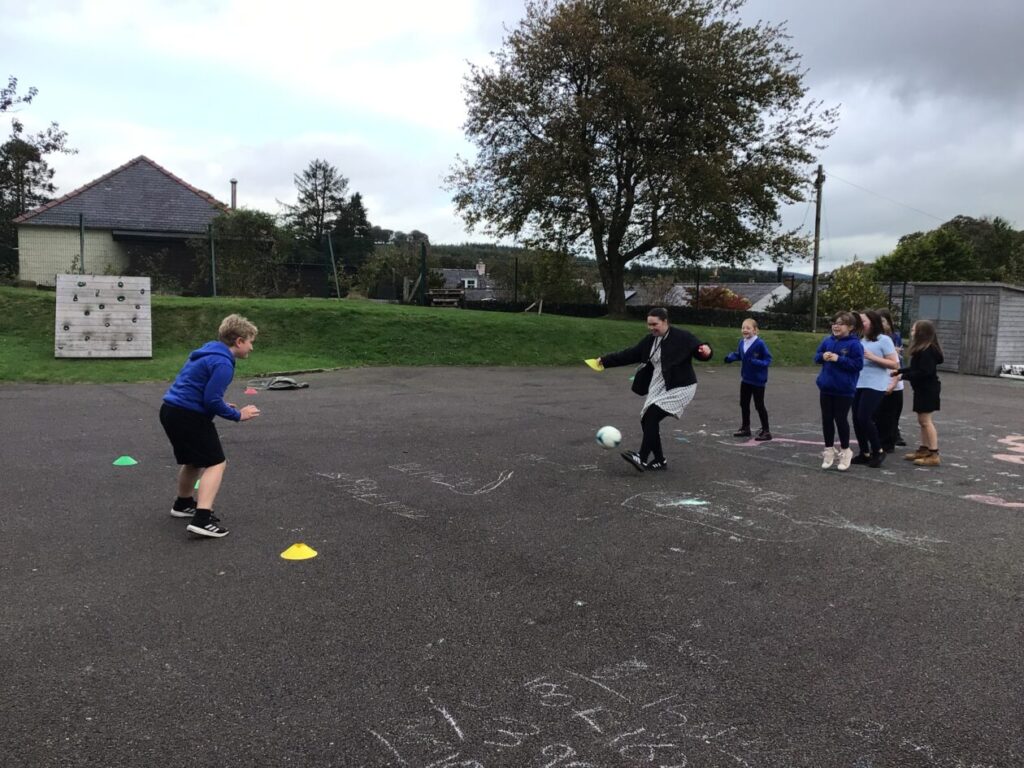 We had active schools in to do football with us. We played a game where we had to tackle each other and get the ball. When he shouted ‘stop’ you had to swap balls with another person. – Asa