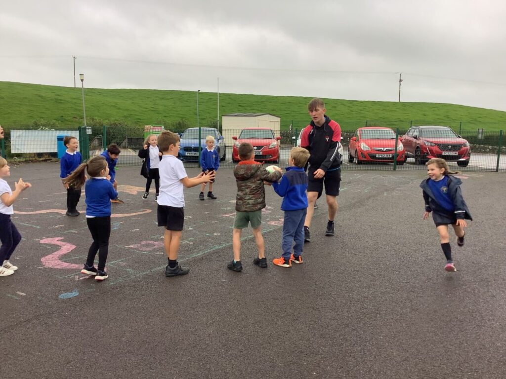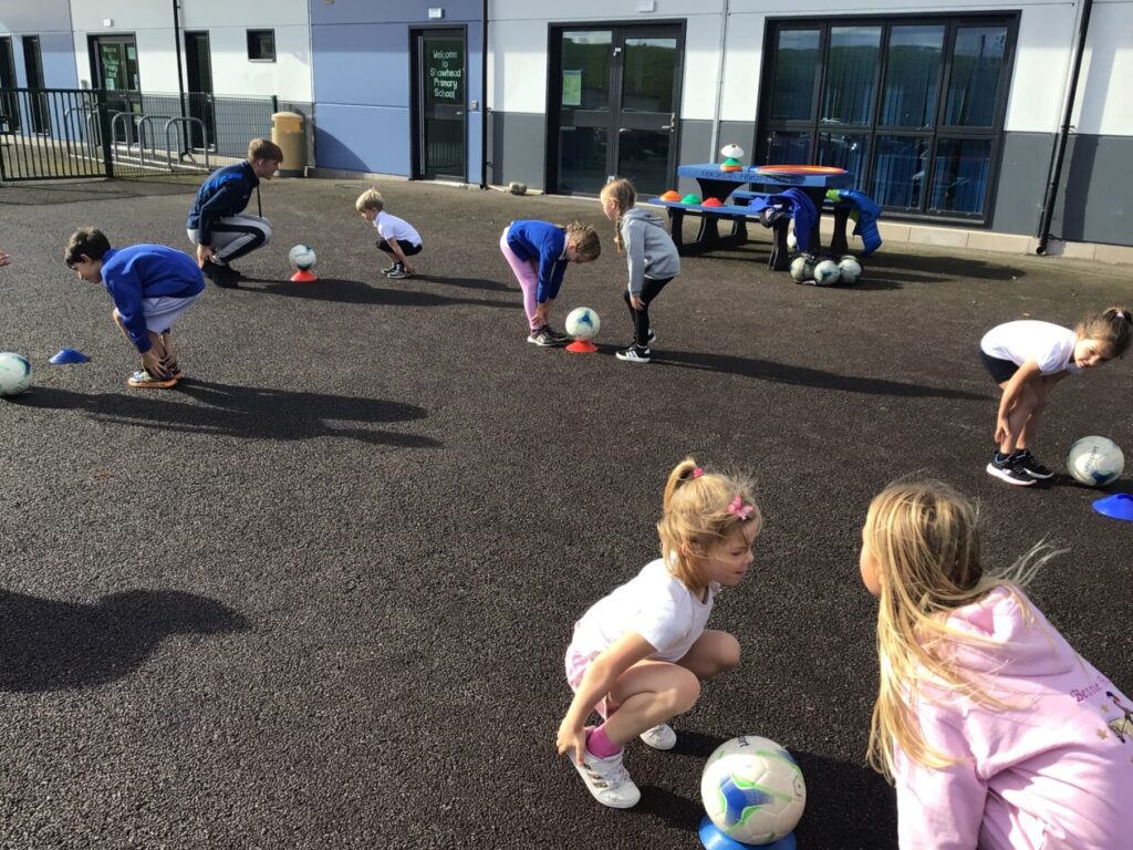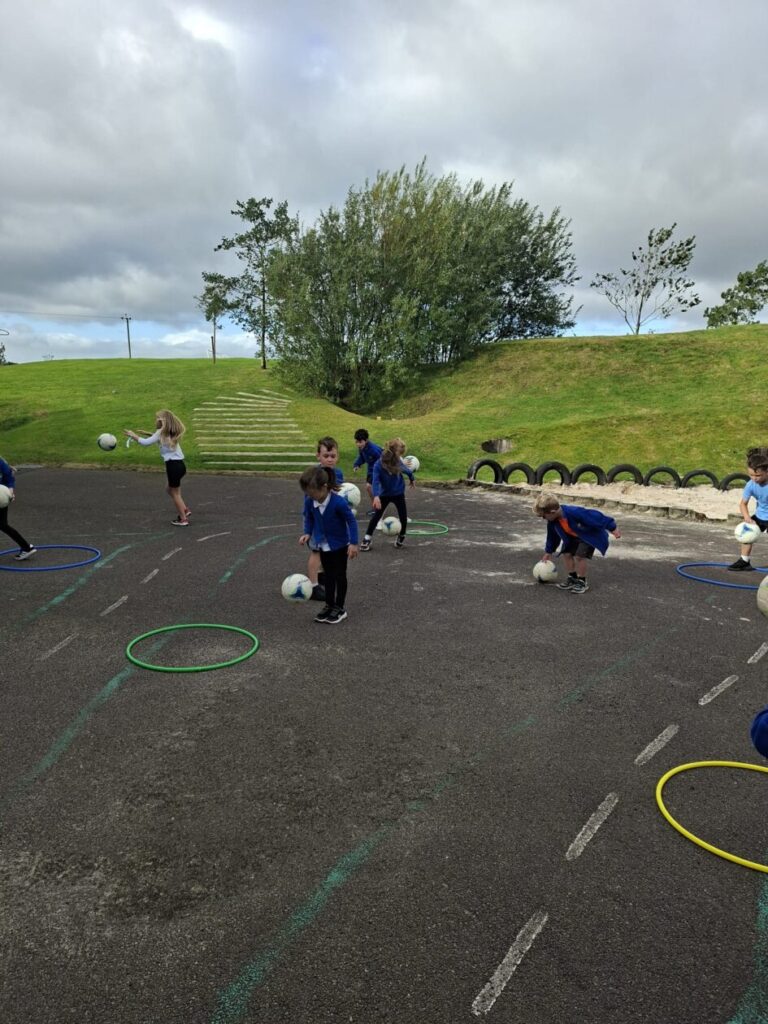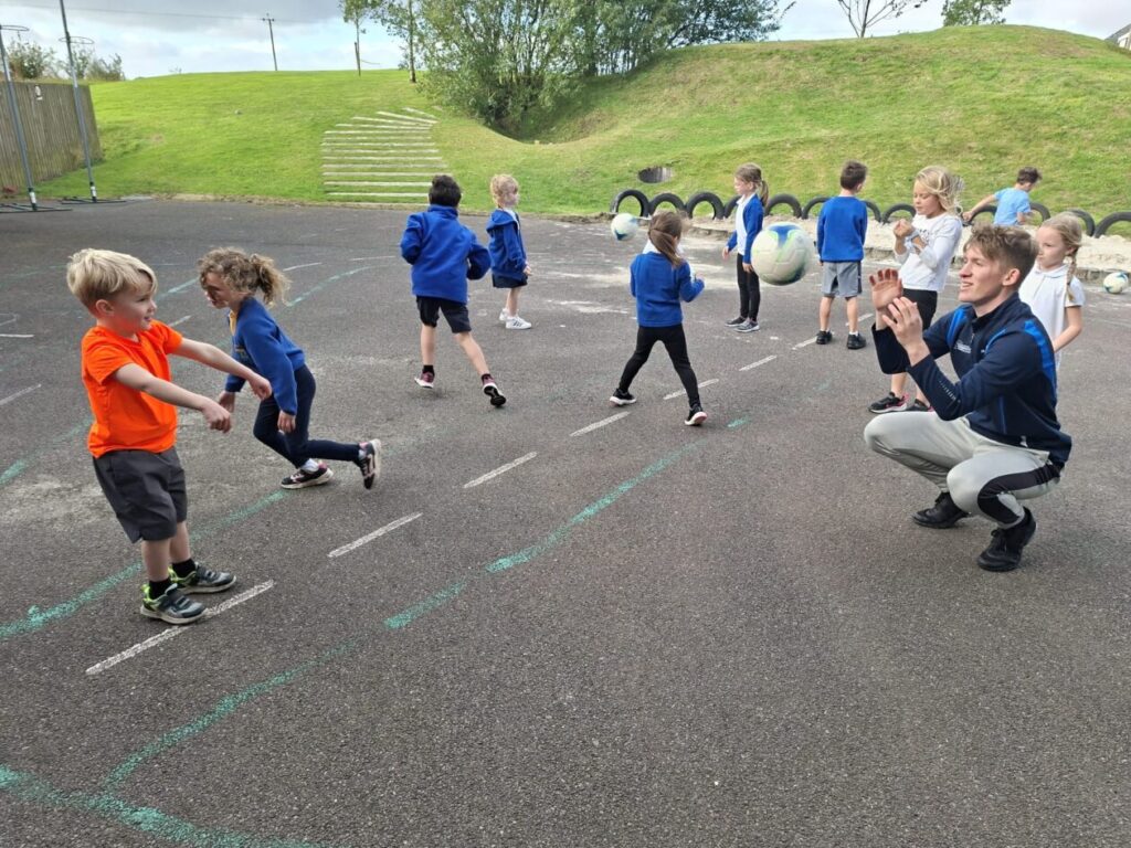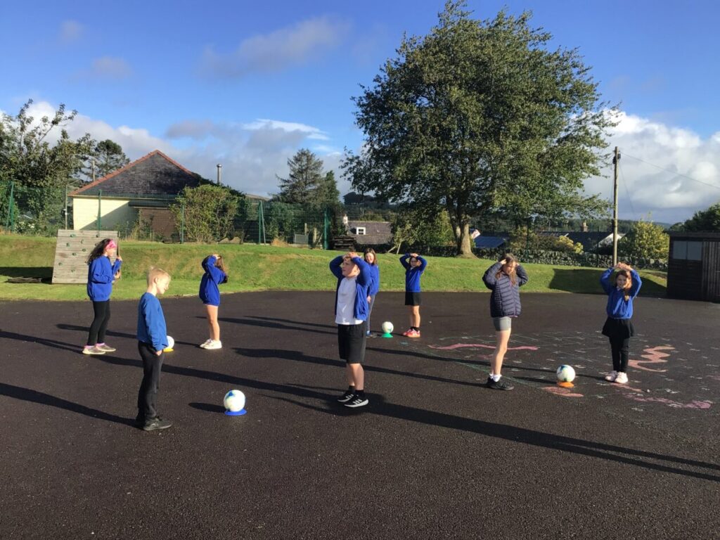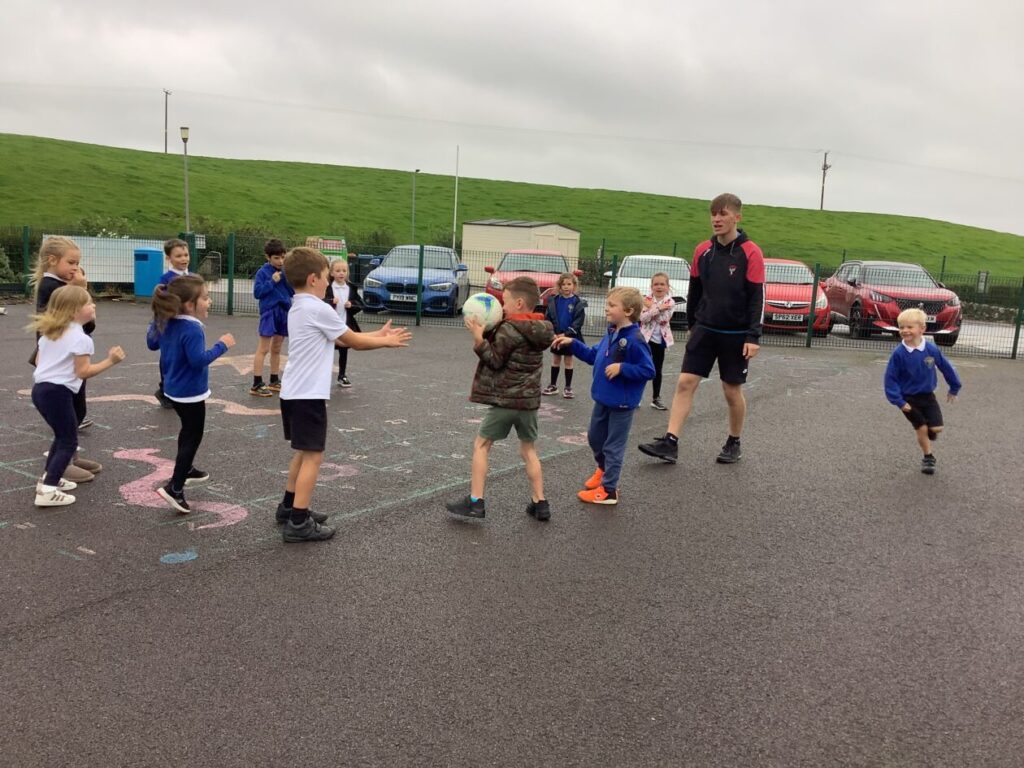 We had active schools in to do football with us. We played a game where we had to tackle each other and get the ball. When he shouted ‘stop’ you had to swap balls with another person. – Asa