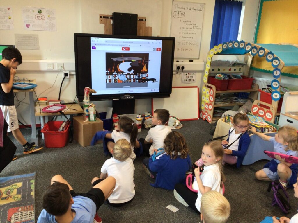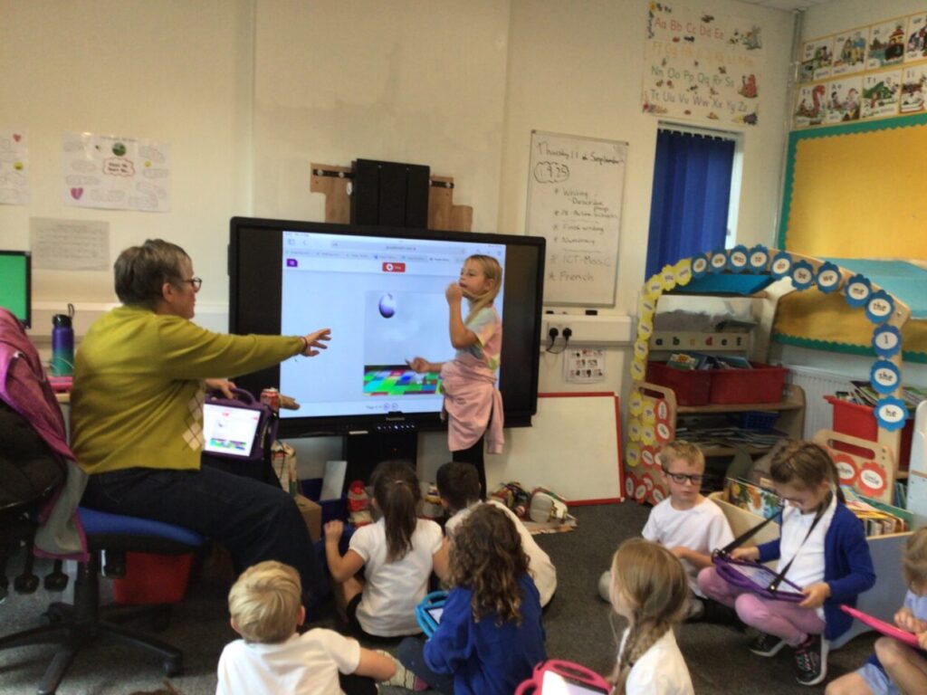 Miss Cochrane came in to do ICT with us. We were on Purple Mash and learning how to move drawings. We made Plop dance and could add music to it. I made Plop flying on the beach. – Zara