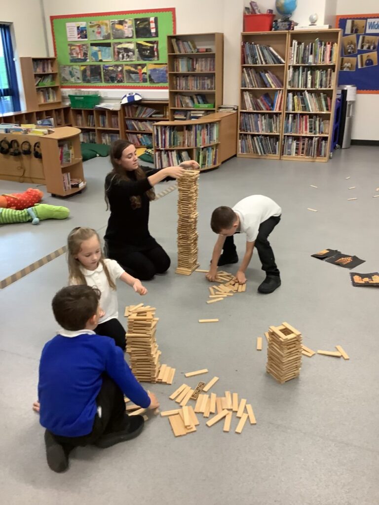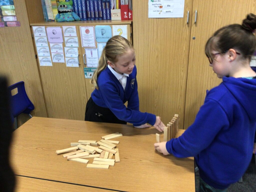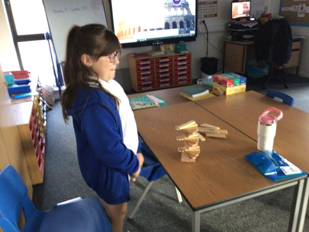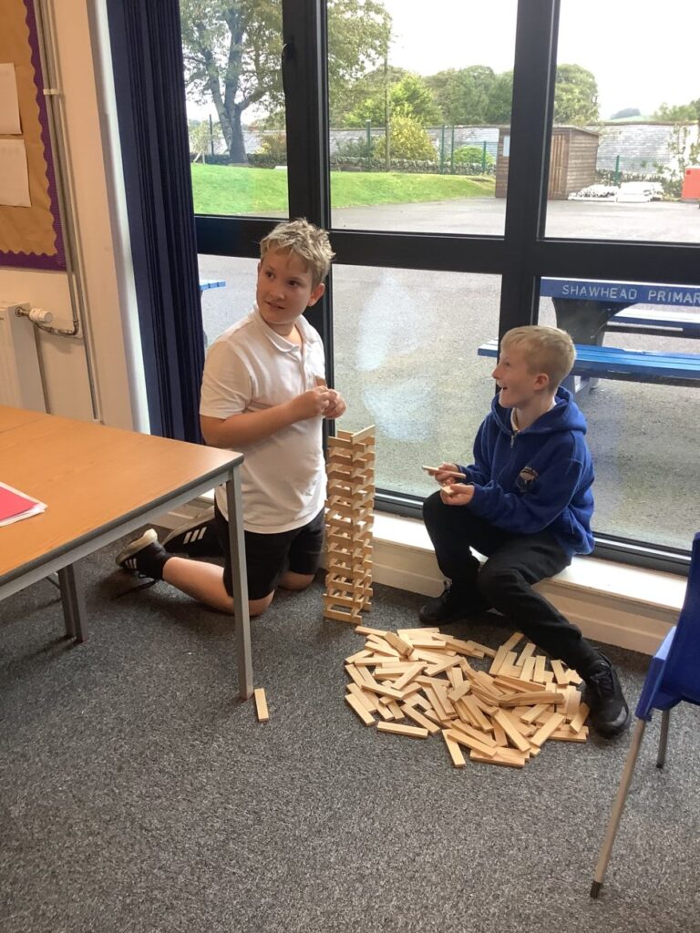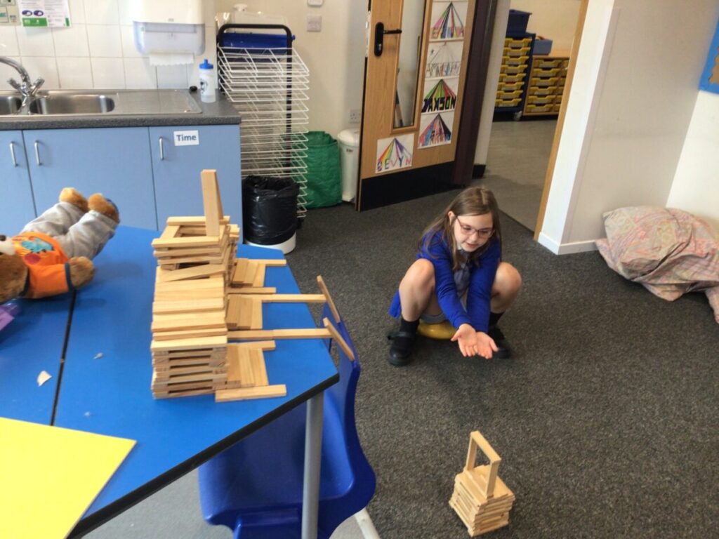 We were building towers to see who could make the sturdiest one and then Miss McKinnon shook the table! – Jesse