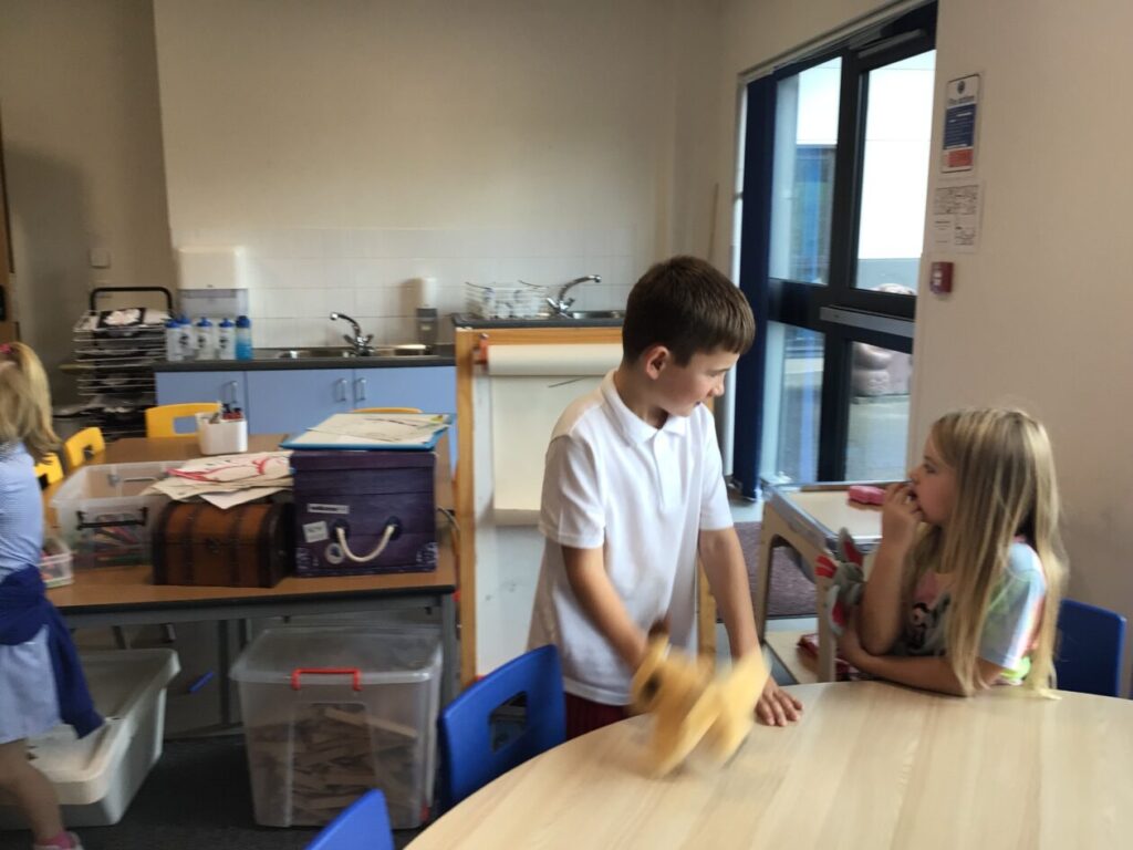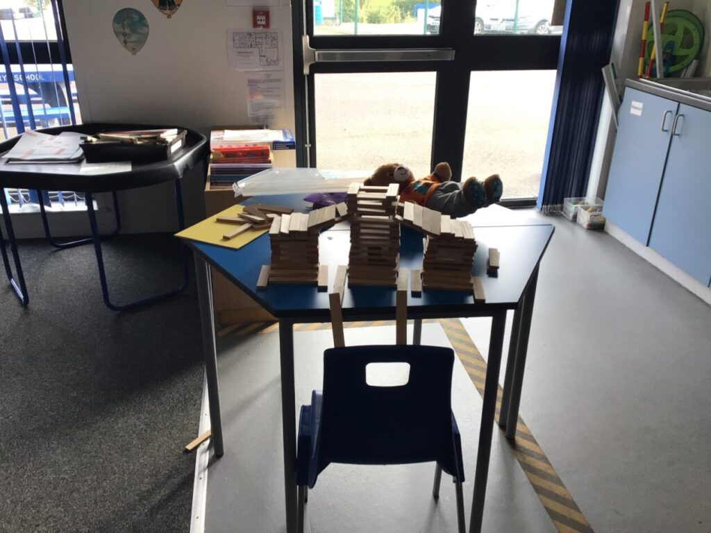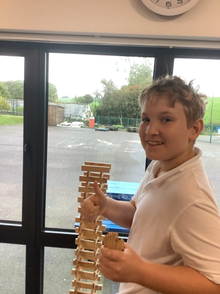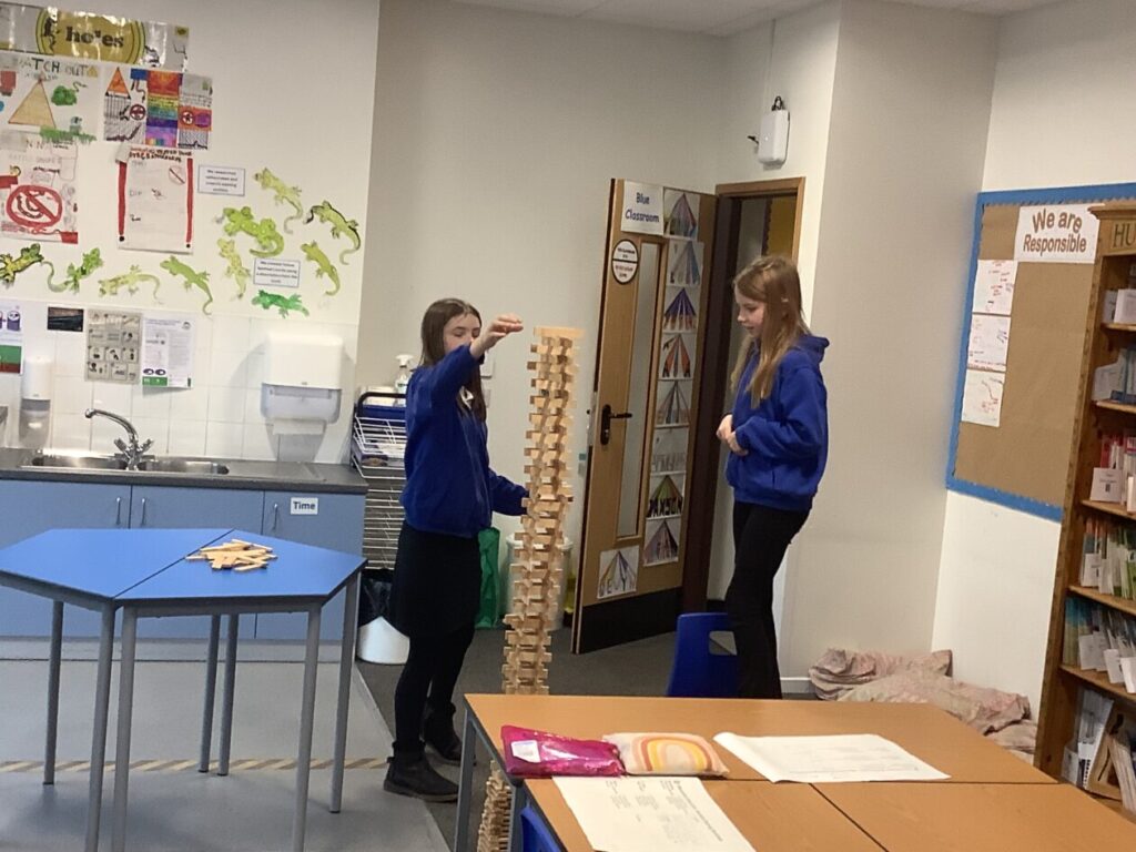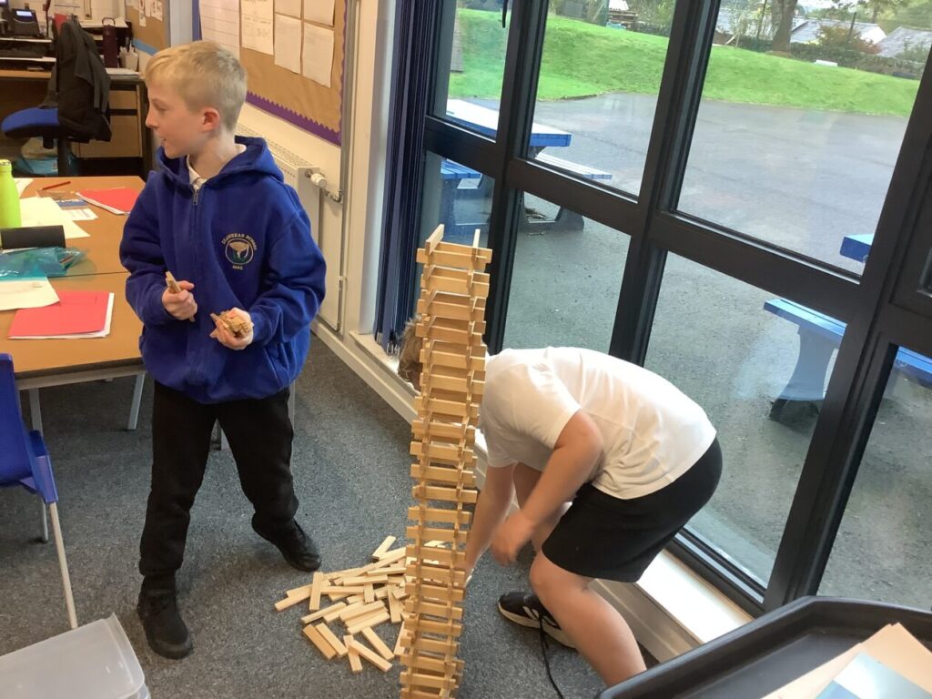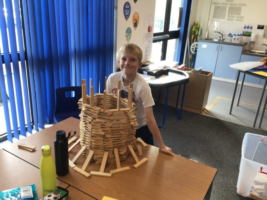 We were building towers to see who could make the sturdiest one and then Miss McKinnon shook the table! – Jesse