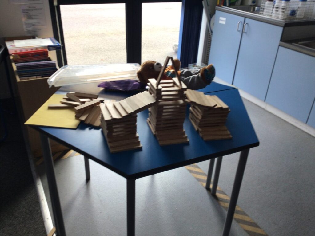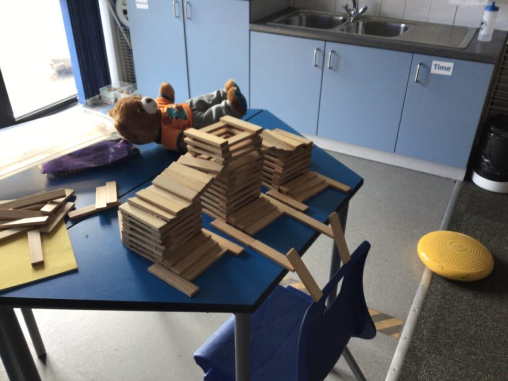 We were making bridges out of Kapla! I also used 2 metre sticks. – Ella