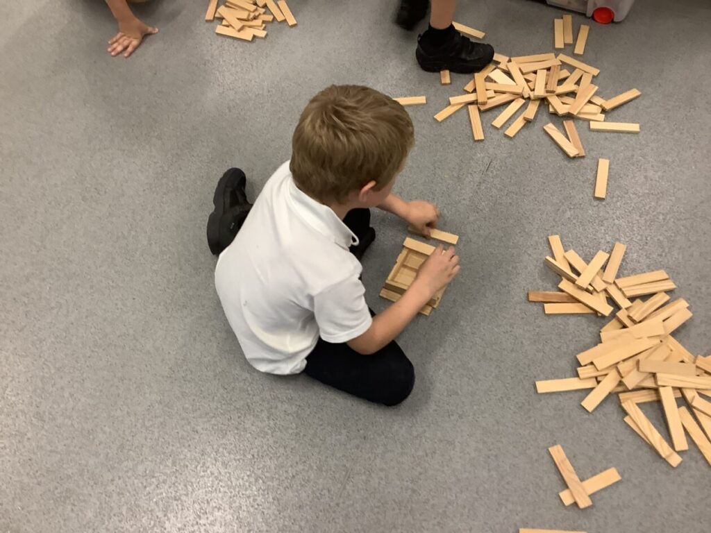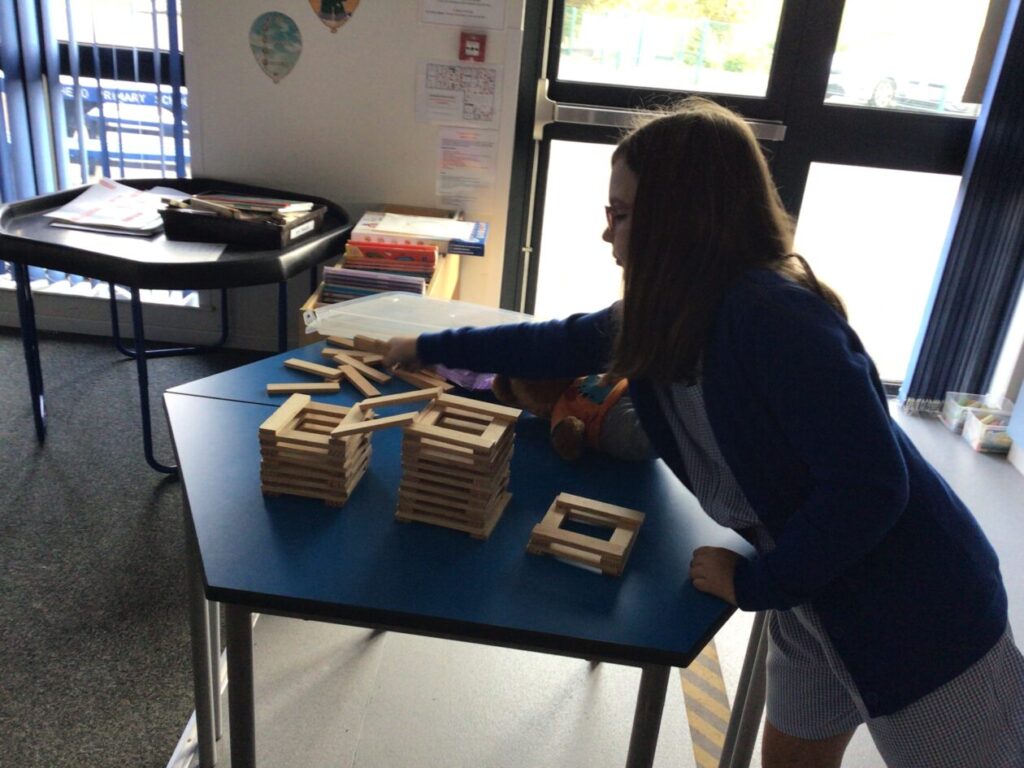 We were using the Kapla to build towers and Mrs McCubbin shook the table to see if they were strong enough and none of them fell! We also made some other things with the Kapla this week. – Zamari