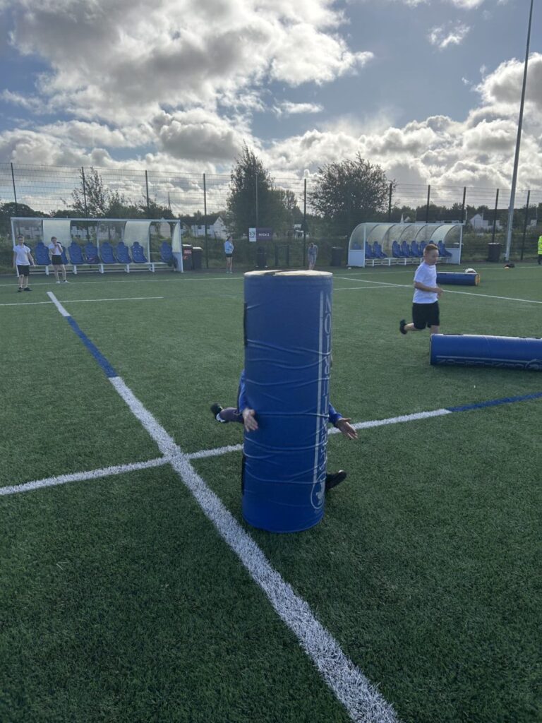 The P7’s went to NWCC to do team building with other P7’s. Today we played rugby and saw the gym. I enjoyed it and we got to run into a tackle bag! – Jesse