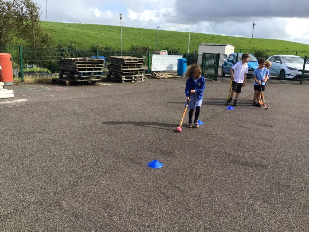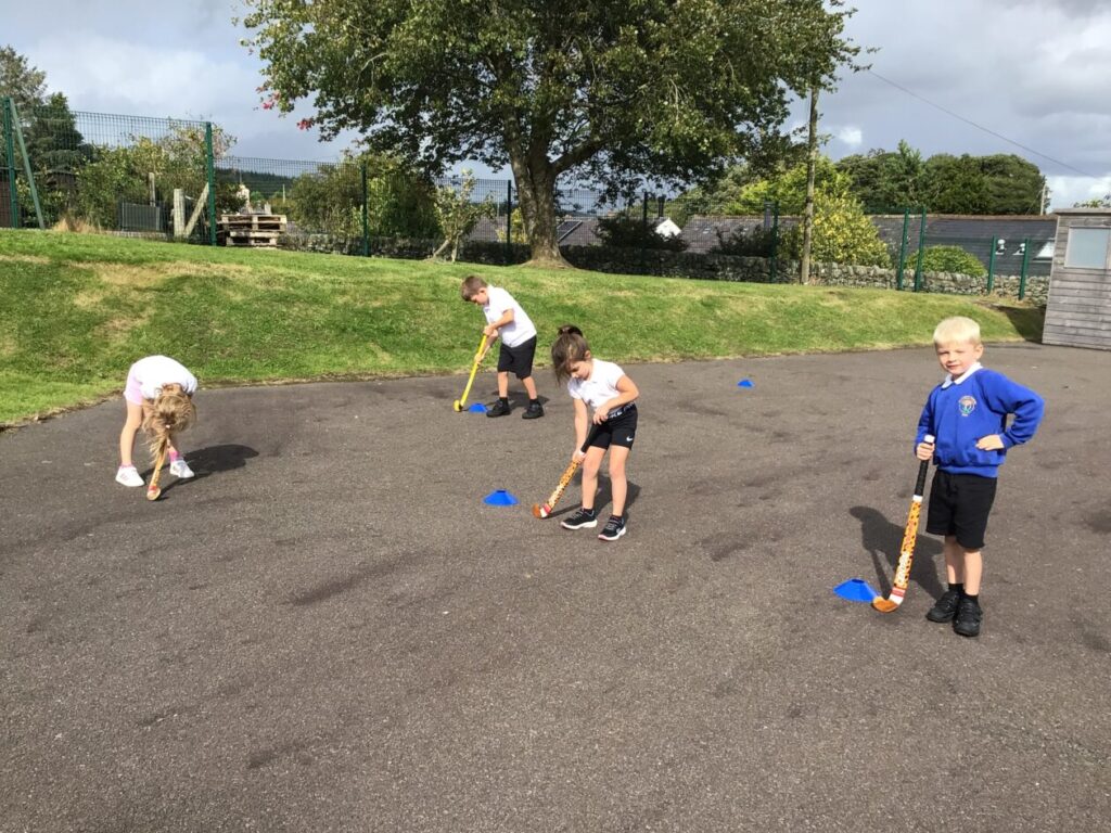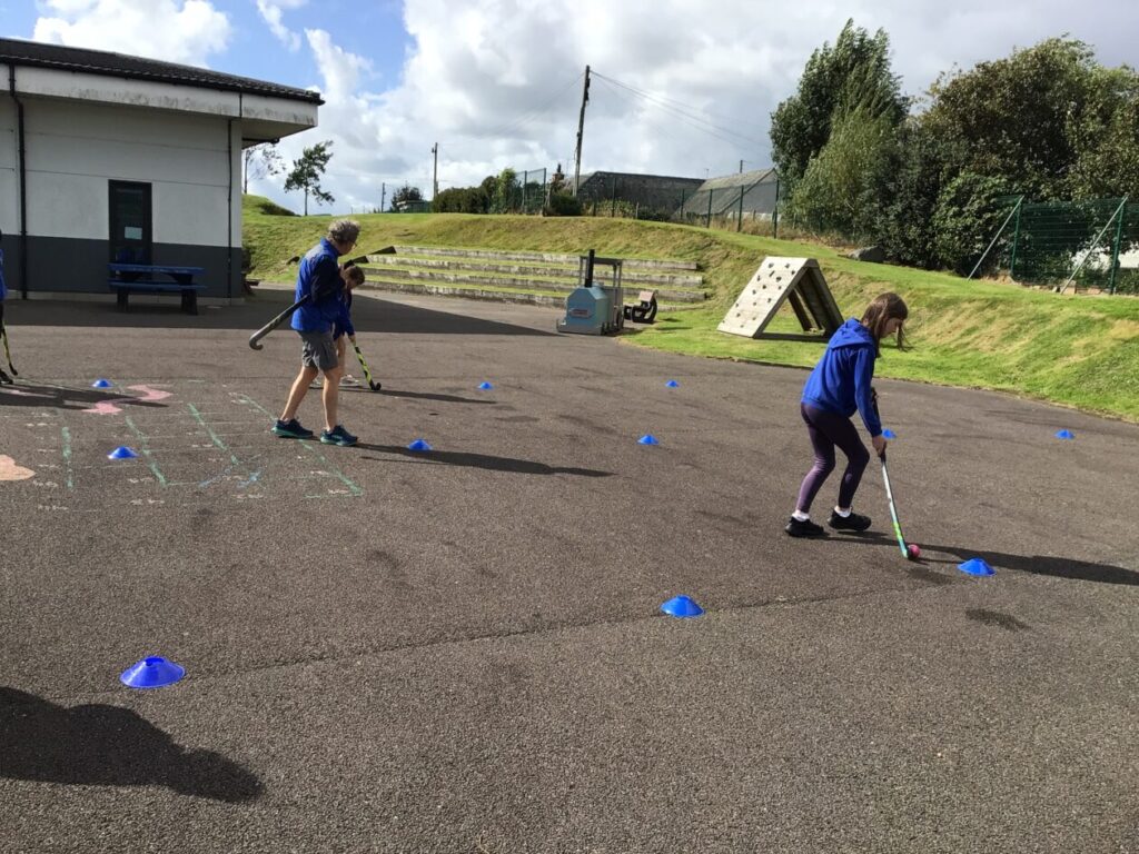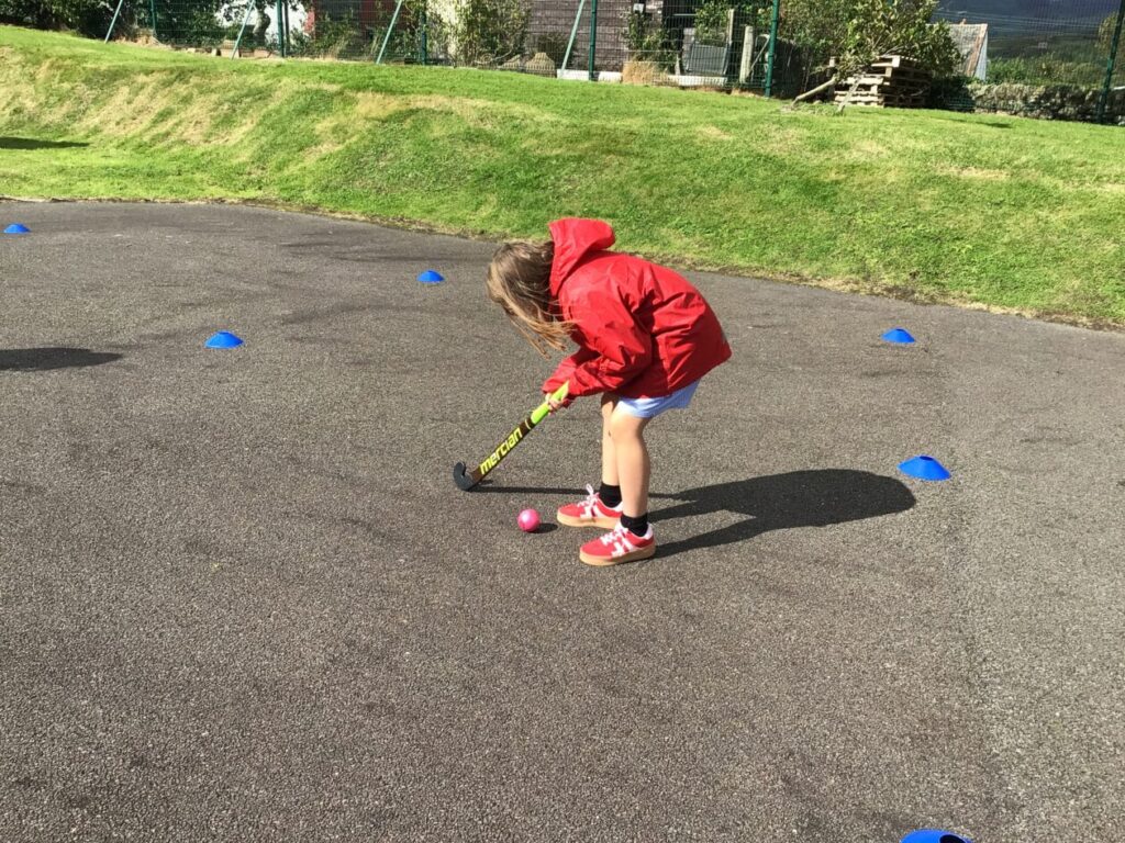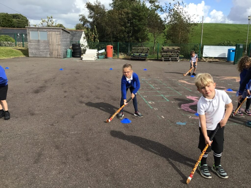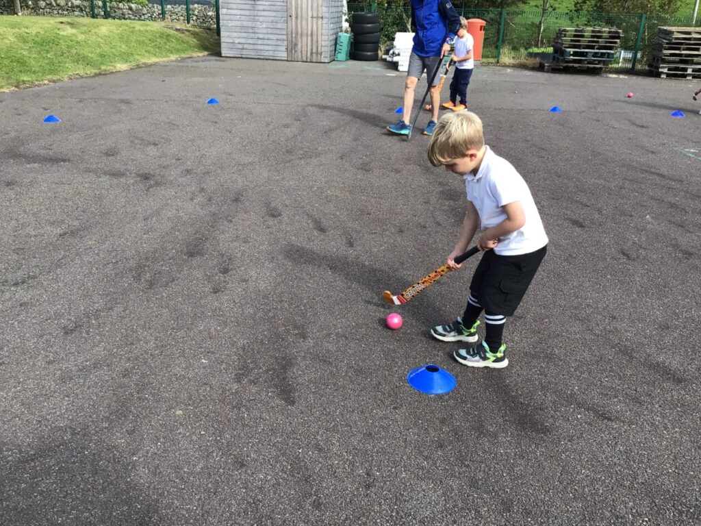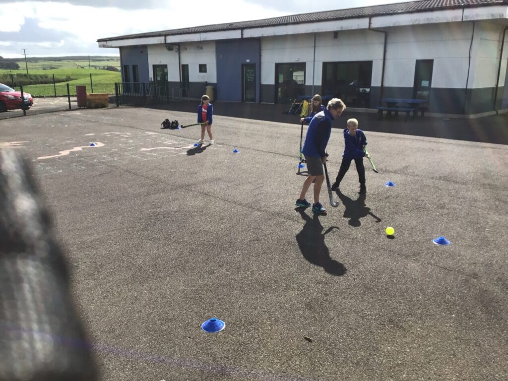 We had a hockey taster session. We were practicing dribbling our ball by pretending they were a puppy and we were taking them on a walk! – Jenny & Alexander