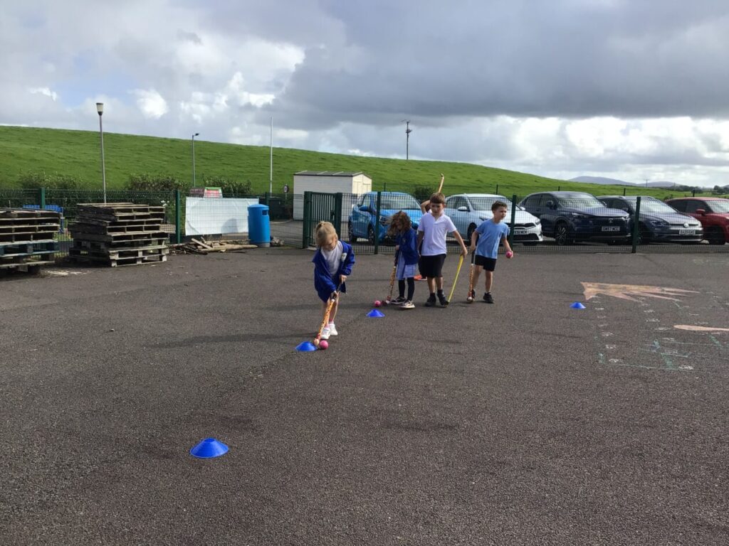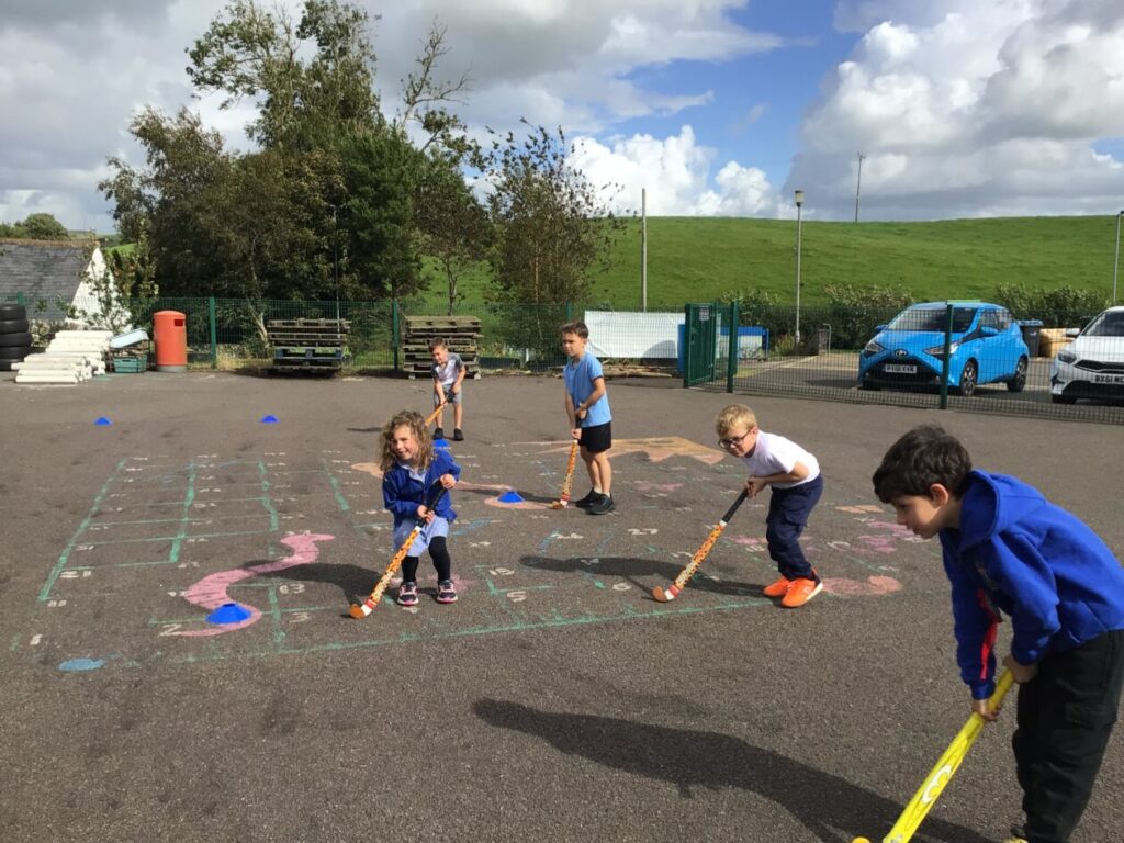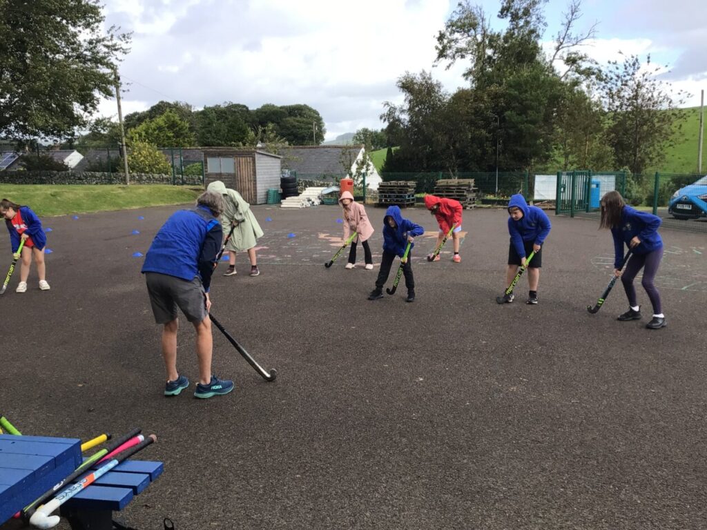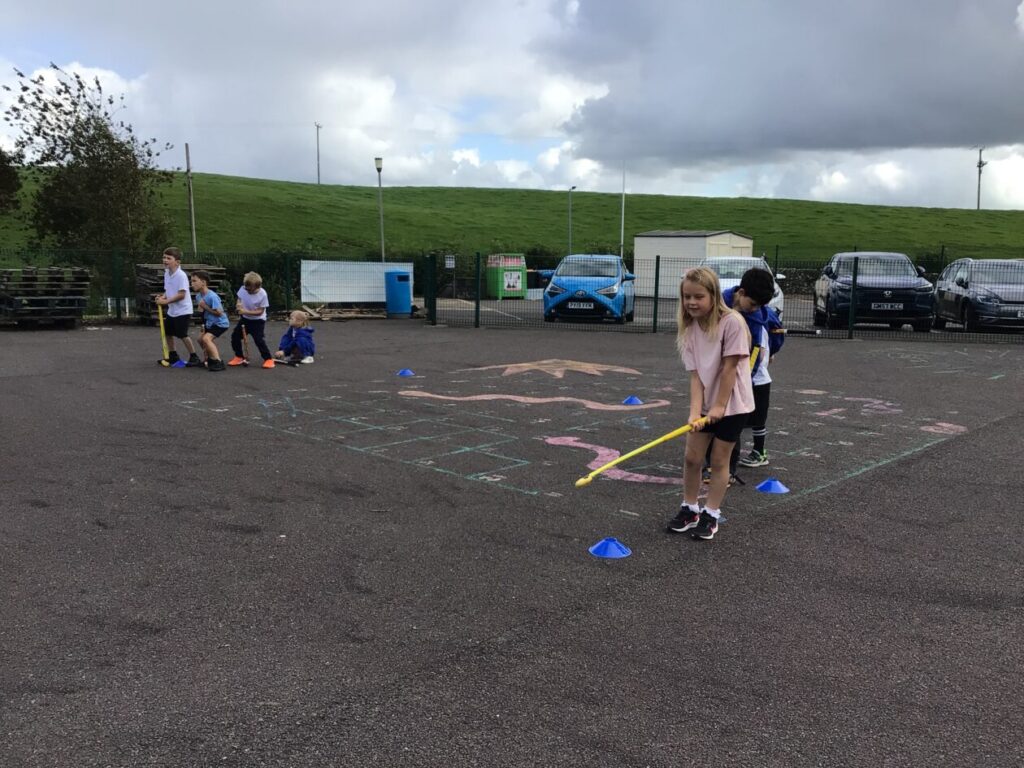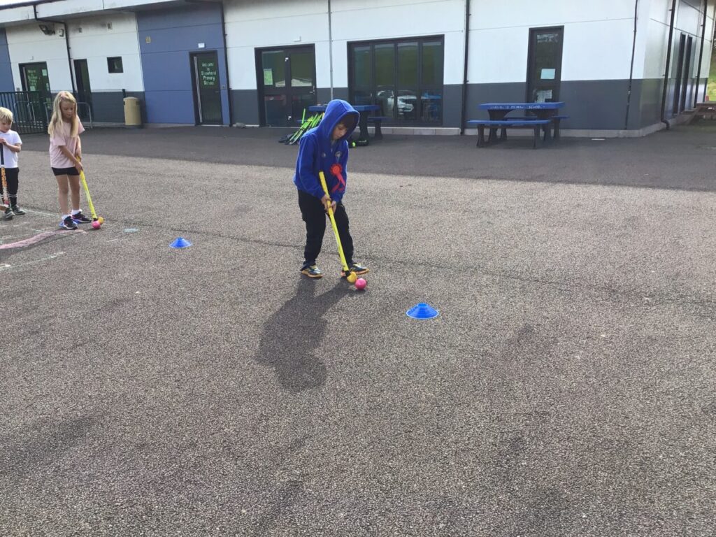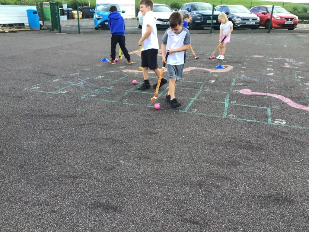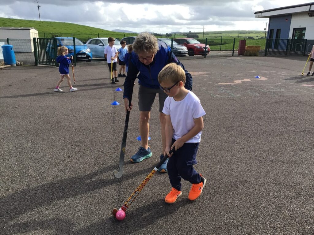 We had a hockey taster session. We were practicing dribbling our ball by pretending they were a puppy and we were taking them on a walk! – Jenny & Alexander