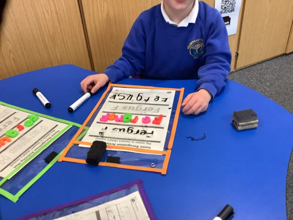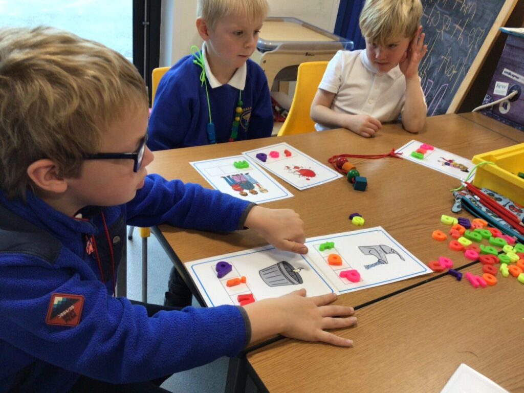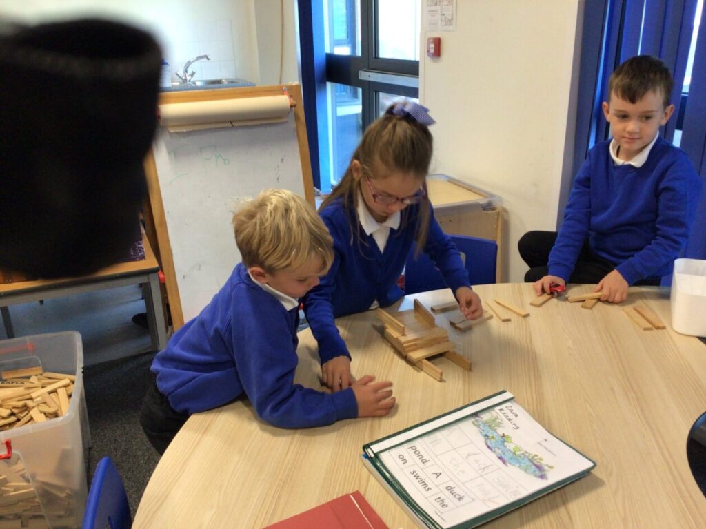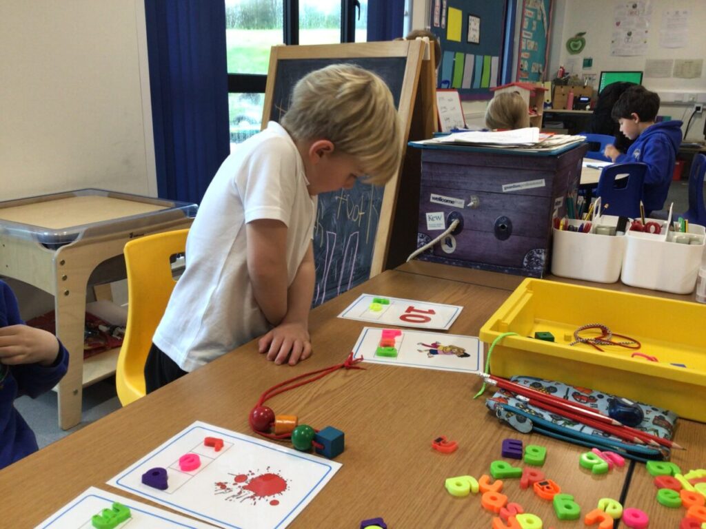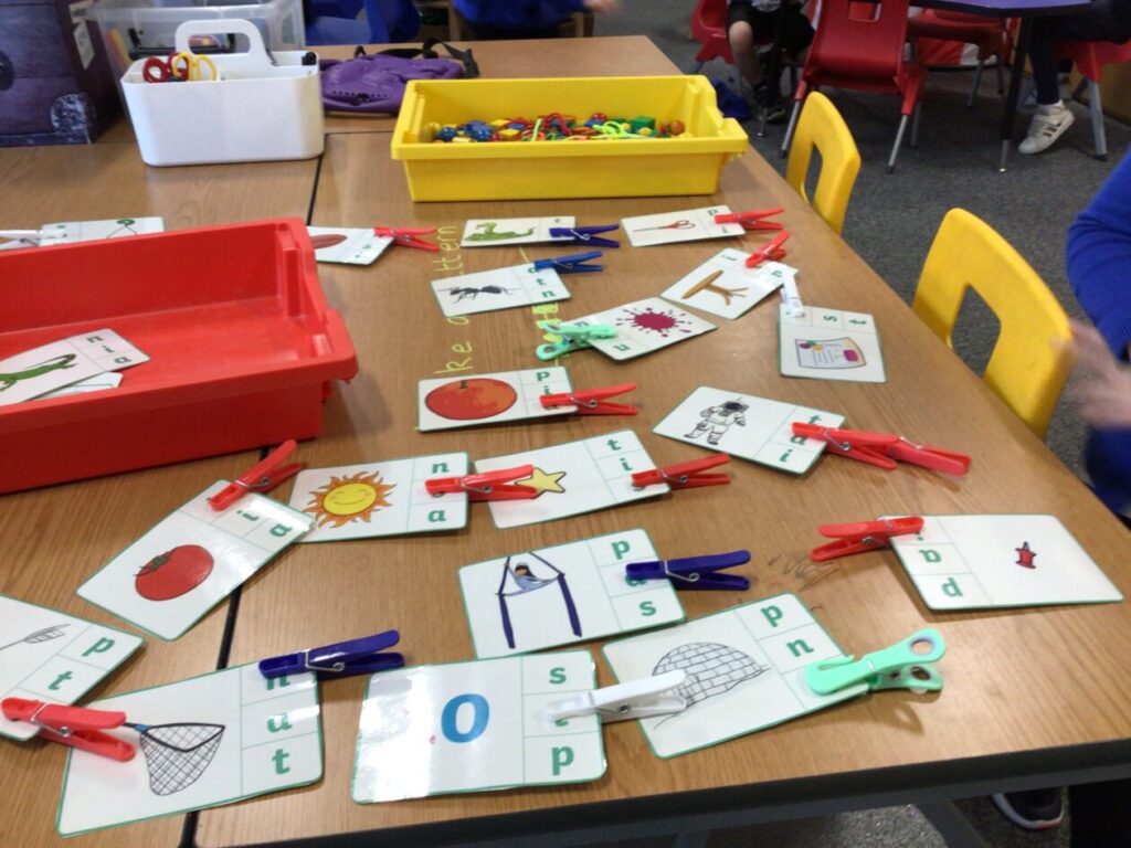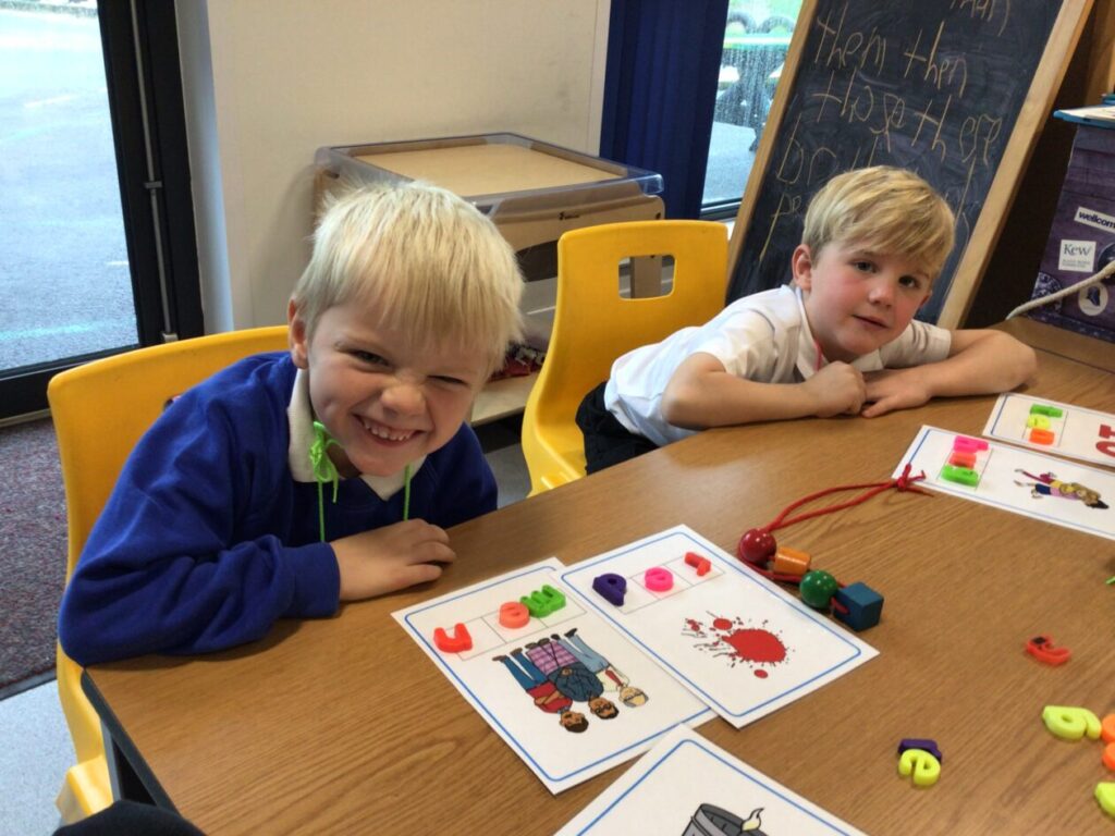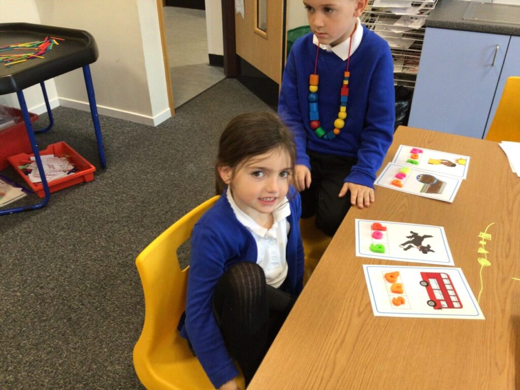 The P1’s have been making words using their sounds. They have also been finding things in the classroom beginning with that letter. – Rosie