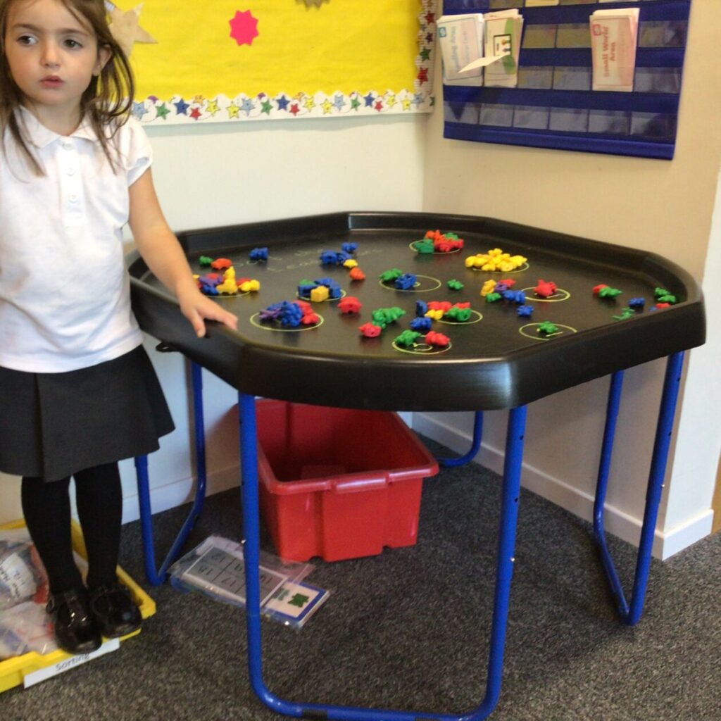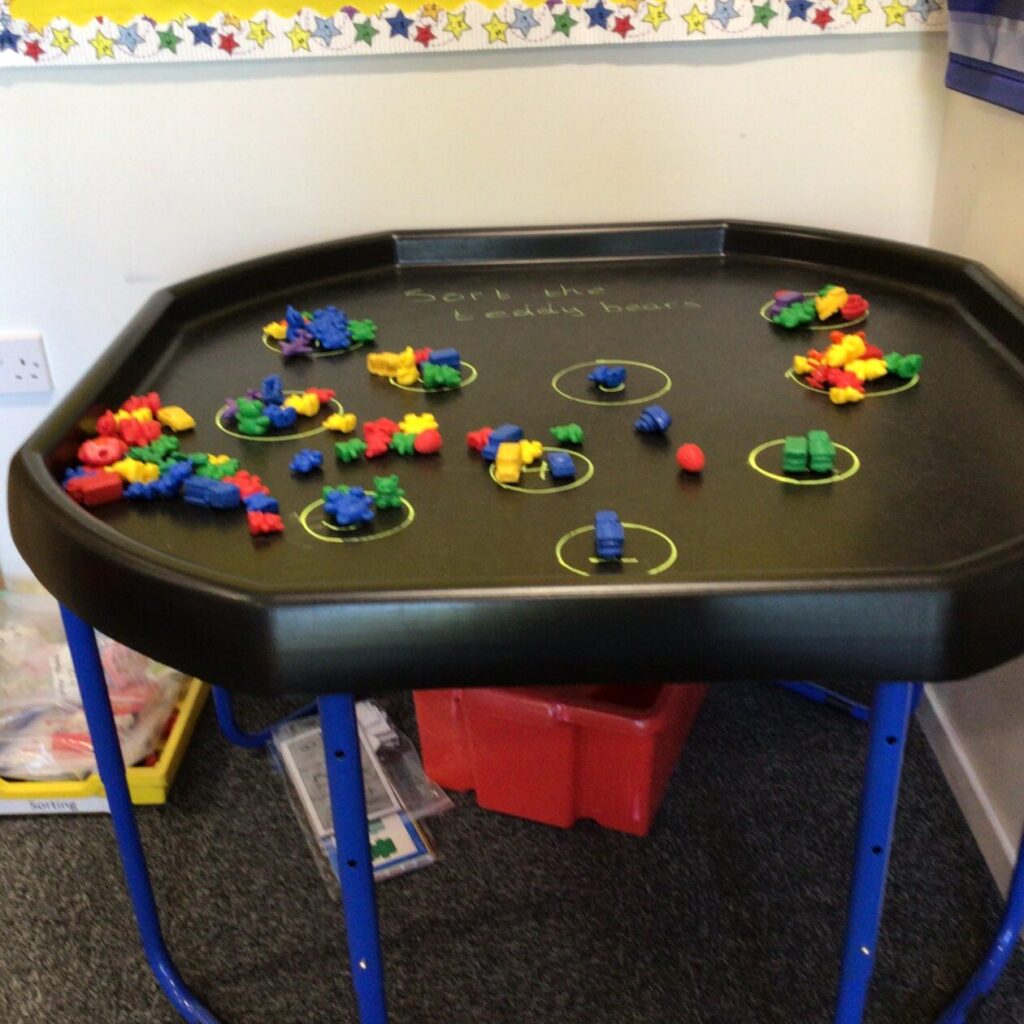 The P1’s were practicing writing their numbers, making them with Play-Doh and sorting the bears. – Zamari