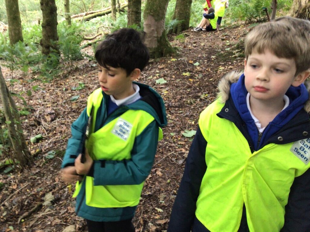 We went to the woods for a scavenger hunt. Some of the stuff we had to find was a feather, acorns, a hole in a tree and footprints. – Jenny & Alexander