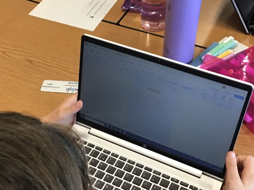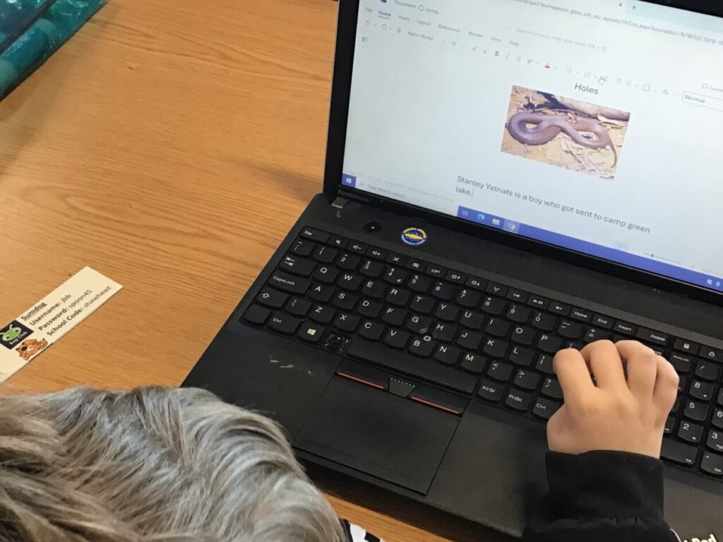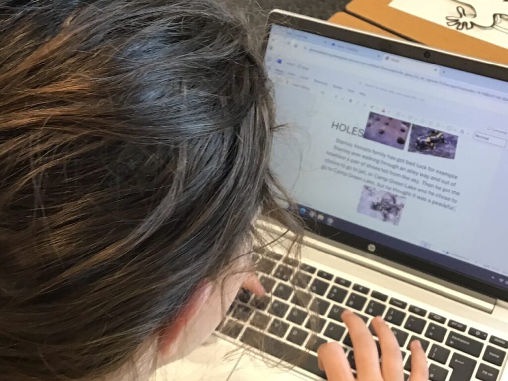 We were writing our own story for our topic Holes and adding pictures in. – Jenny