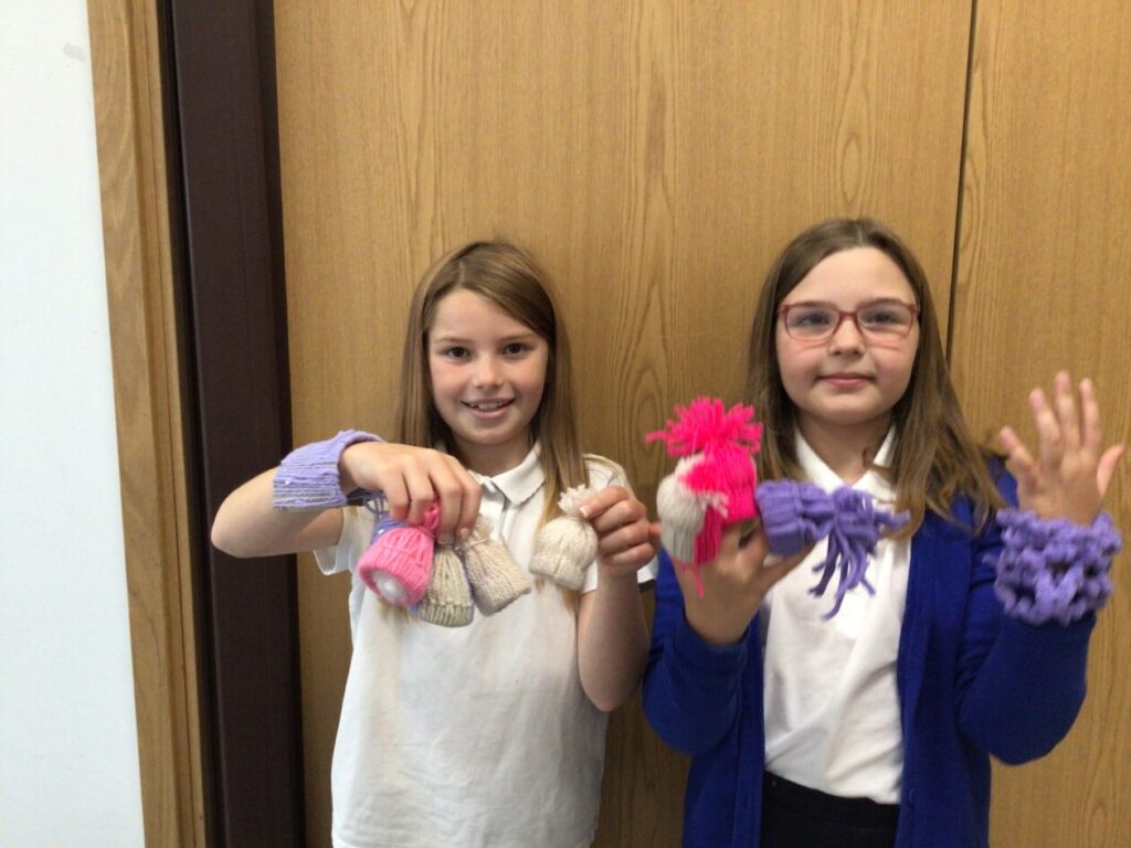 We have been making hats, bracelets and blankets using wool, crochet hooks and cardboard. – Ella & Devyn