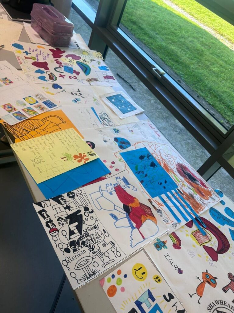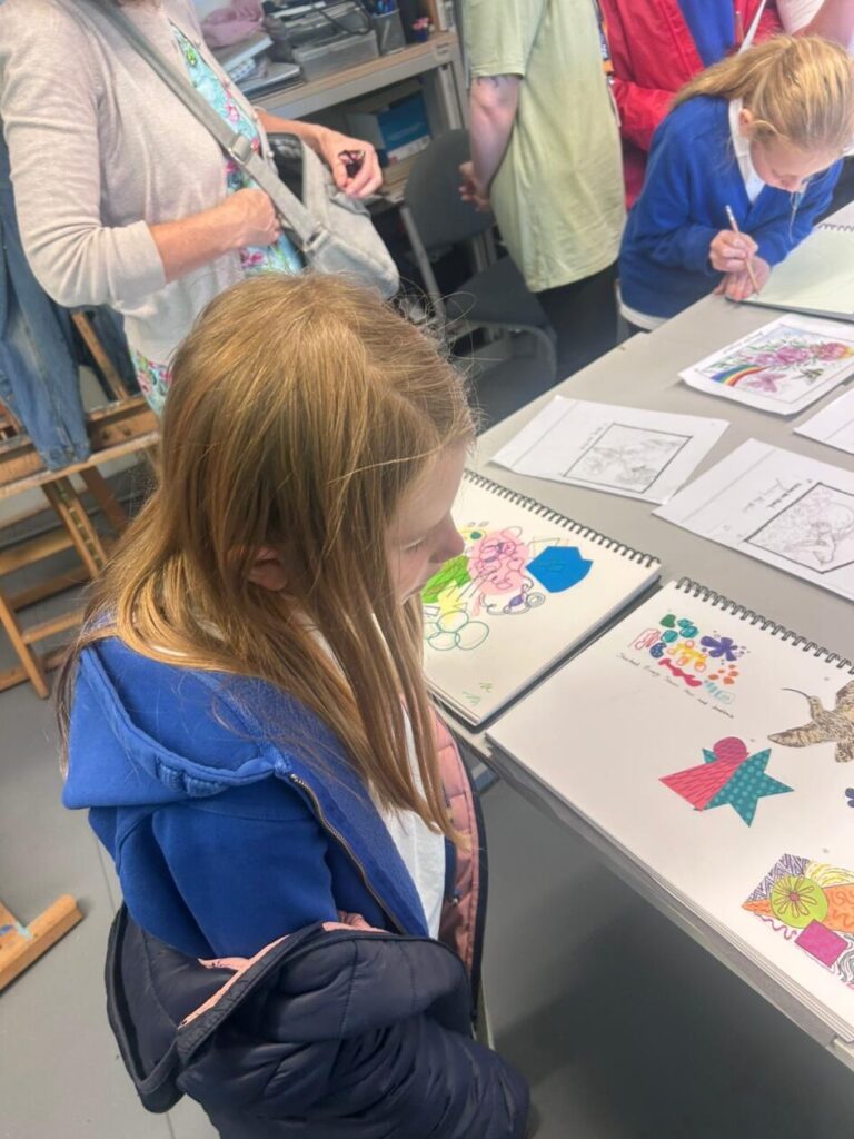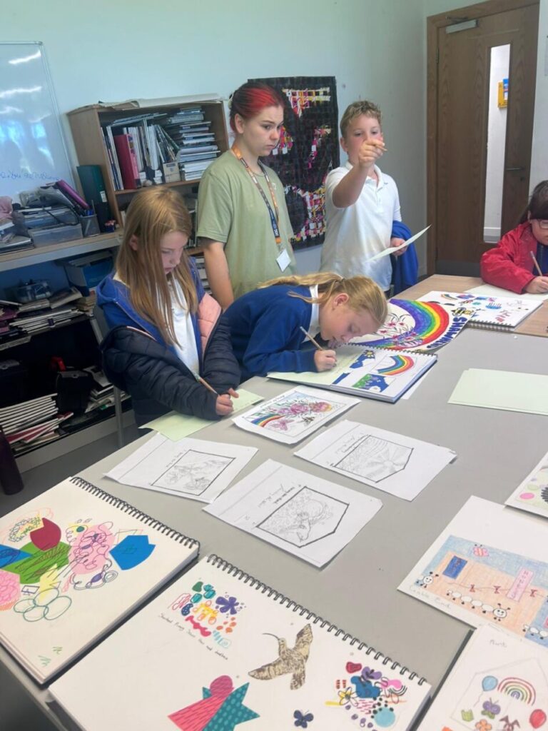 Jo Shennan (Jesse’s mum) brought her college art students to our school to help us with making our mural for our sheds outside. We got to draw our ideas down of what we liked and the college students will put some ideas together and when we go visit them soon we will see them. We both loved it and we can’t wait to see them again and their ideas. – Lola & Zara