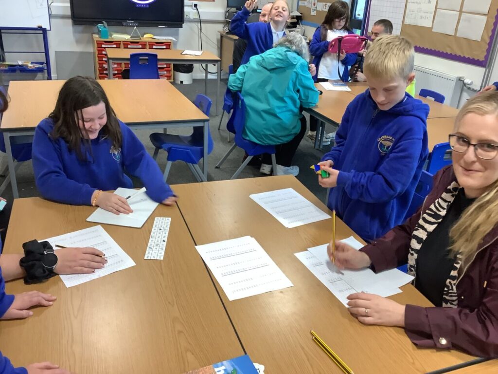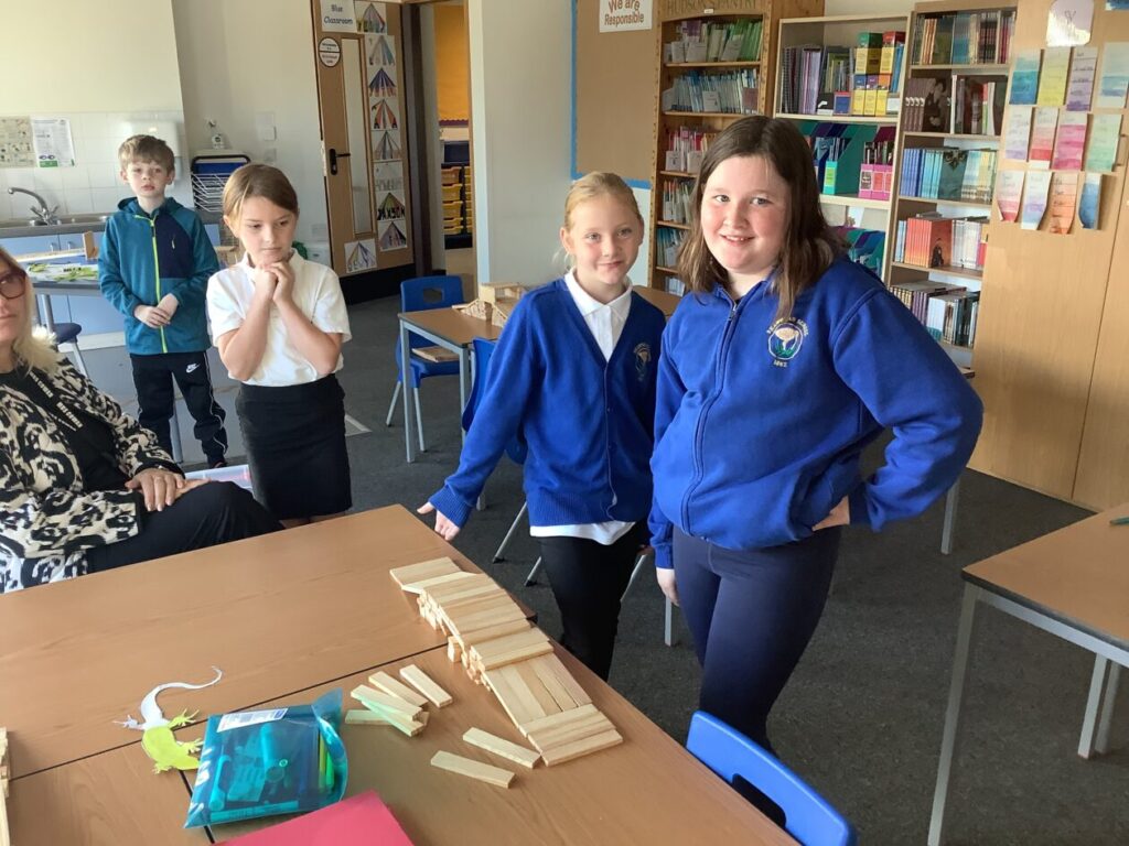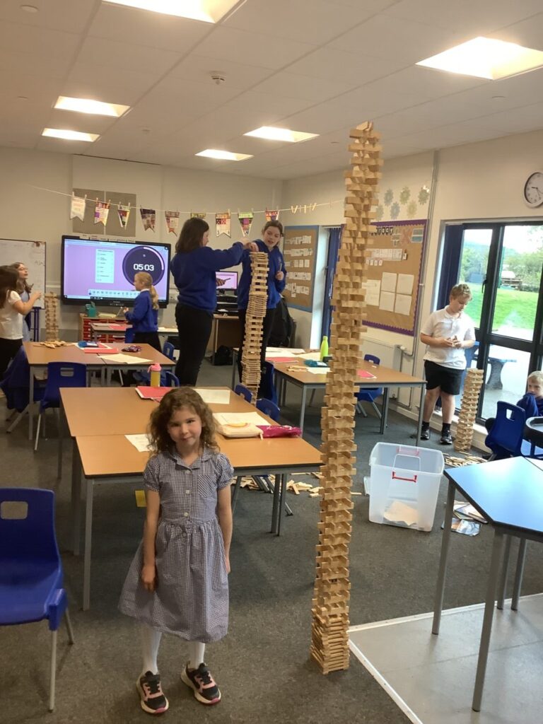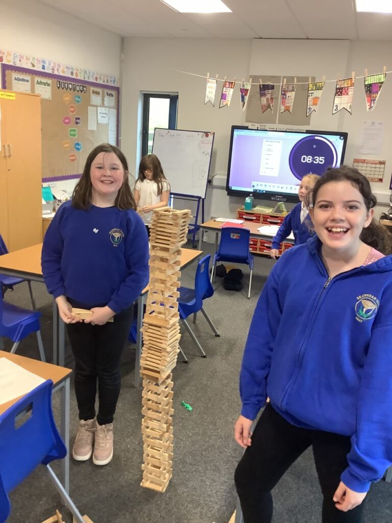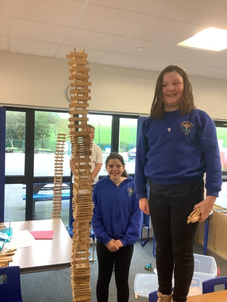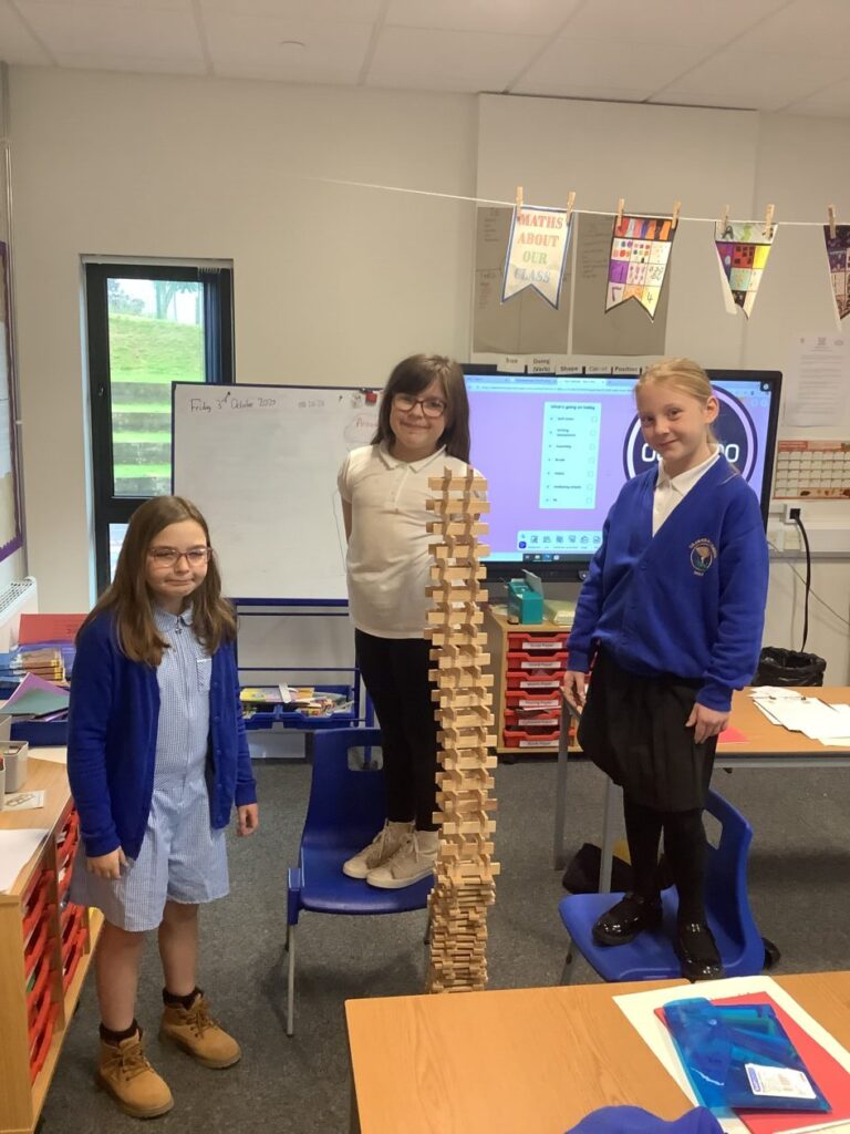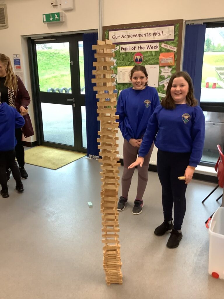 We had an open afternoon for our families to come in. We had a Kapla challenge to build the tallest tower, the parents had to do a P7 mental maths sheet and we also made stop motions with the iPads. – Ella & Ruairi