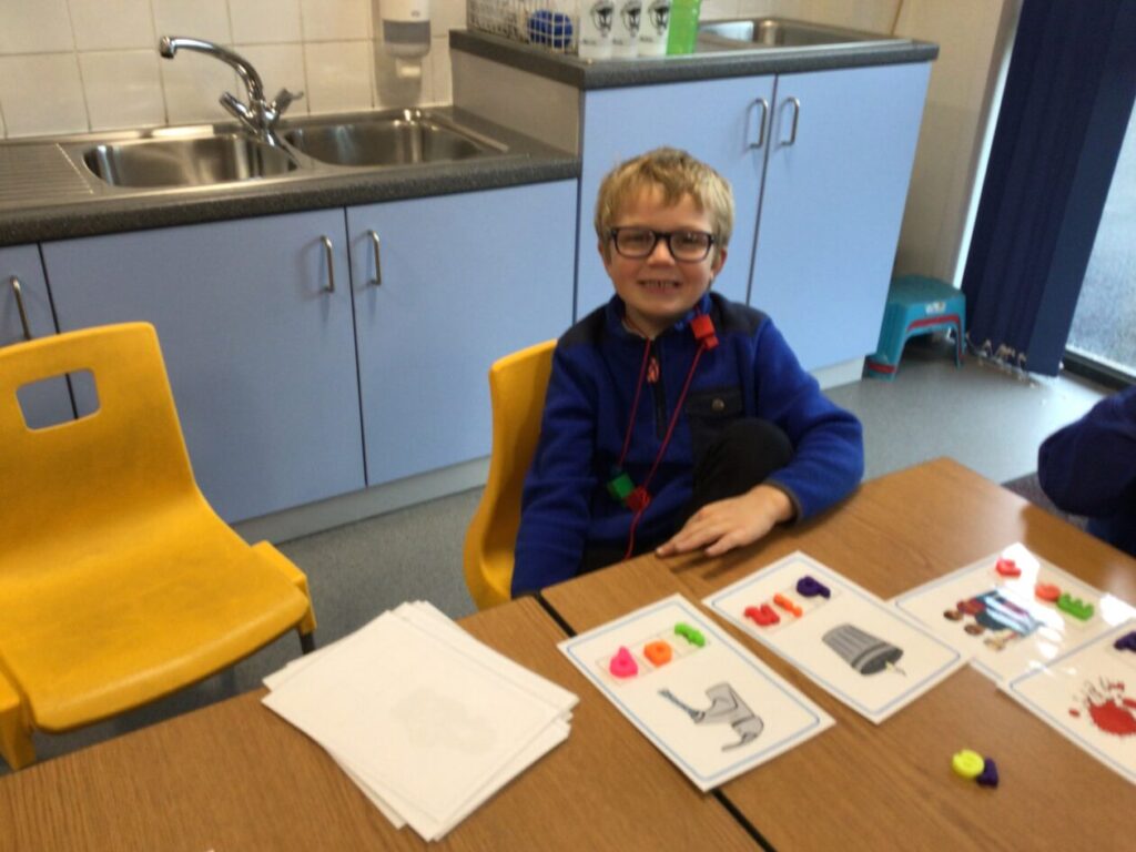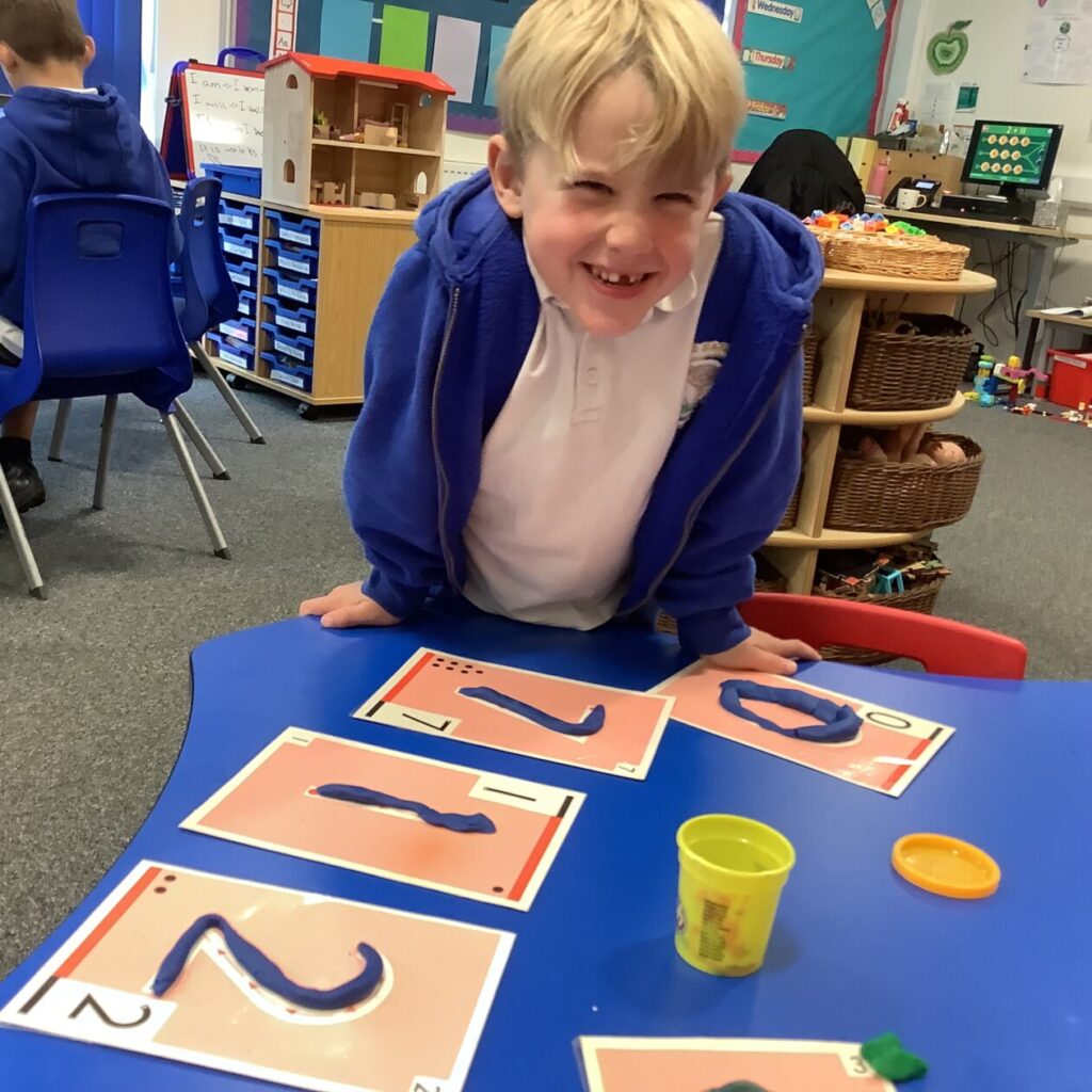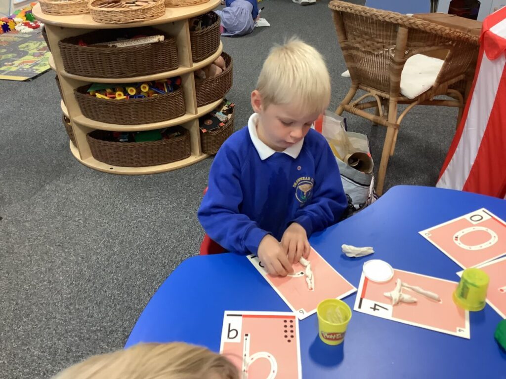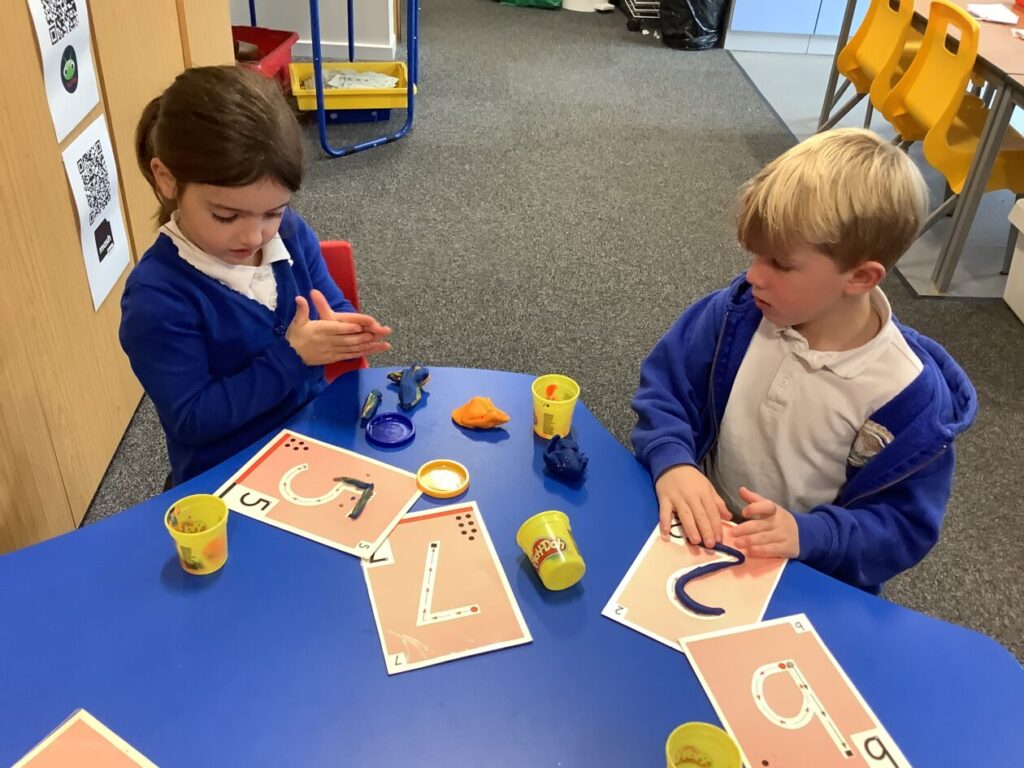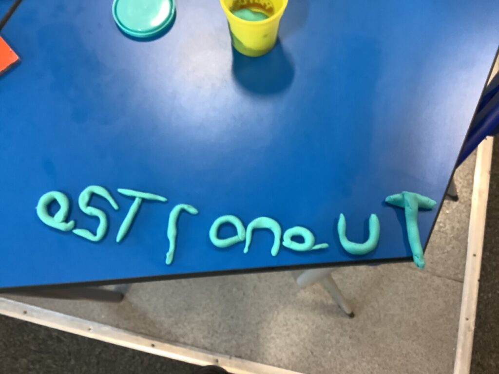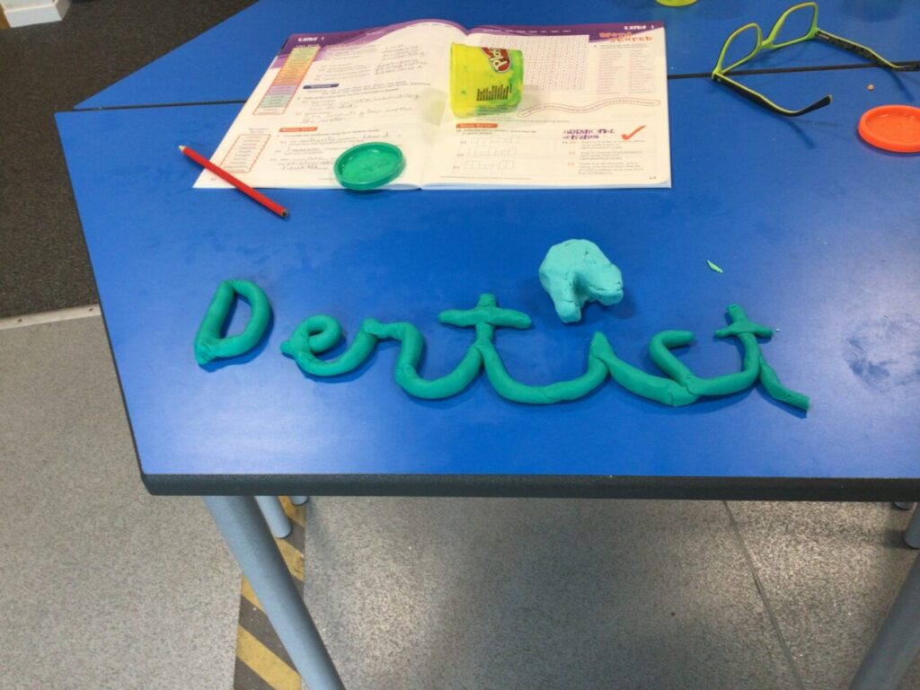 Blue class have been making their spelling words using Play-doh. – Mirren