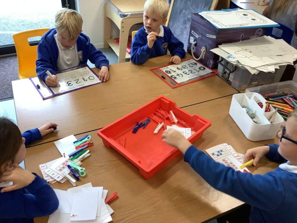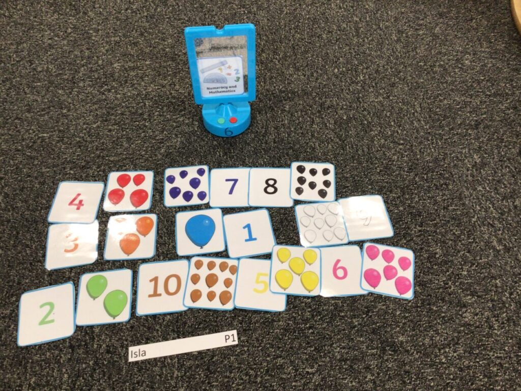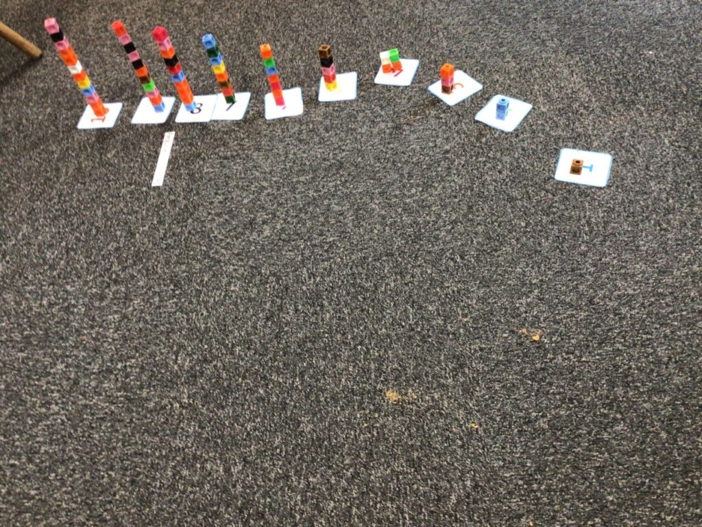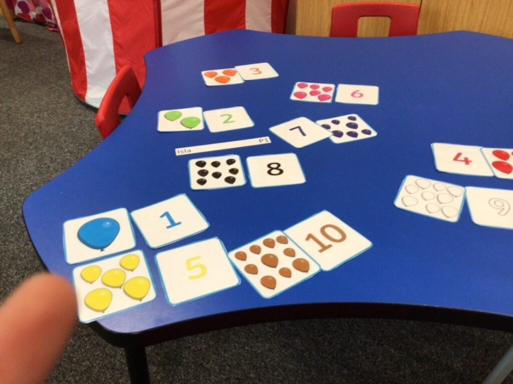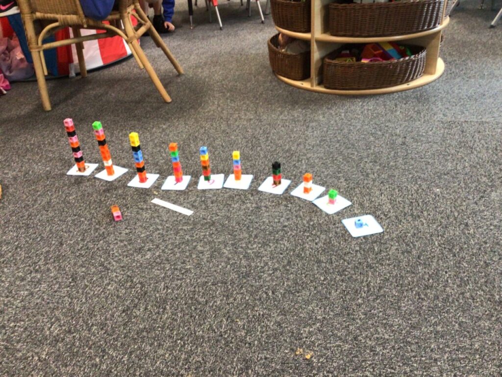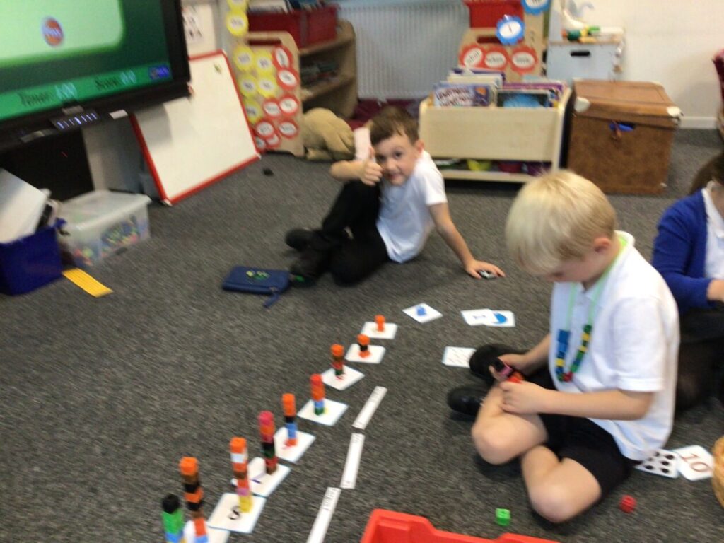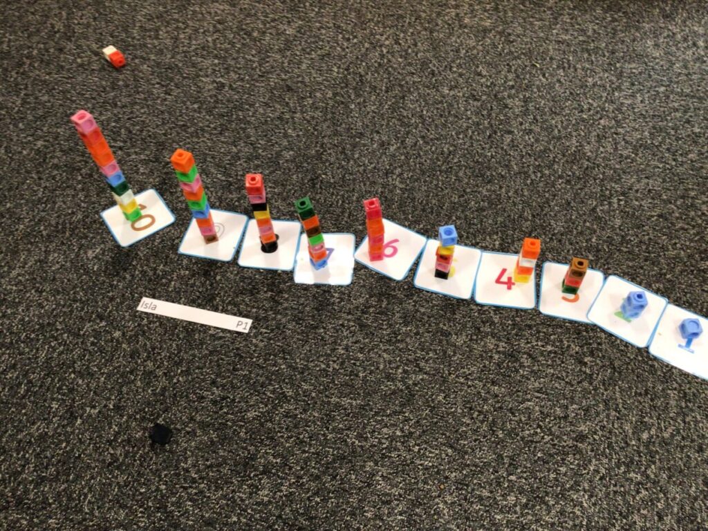 The P1’s have been matching the number to the picture with the right amount. They were also making cube towers with the right amount it says on the card. – Rosie