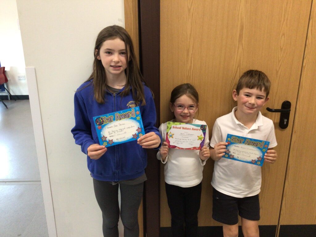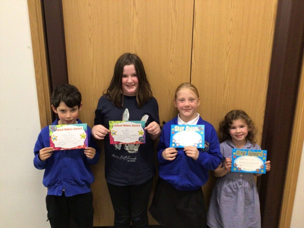 The school value was effort and Mirren and Zara won it! Jenny and Bobby got Pupil of the Week!