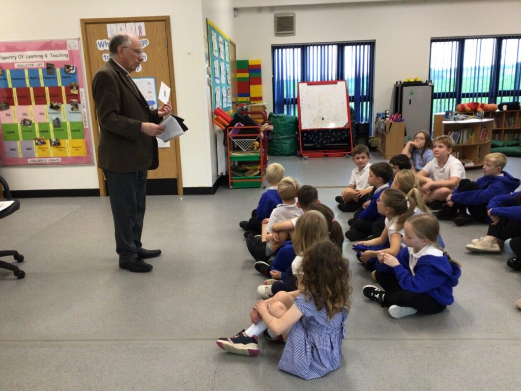 Reverend Peacock came in to talk about different types of cards you give people. This was for Harvest. – Ella & Ruairi