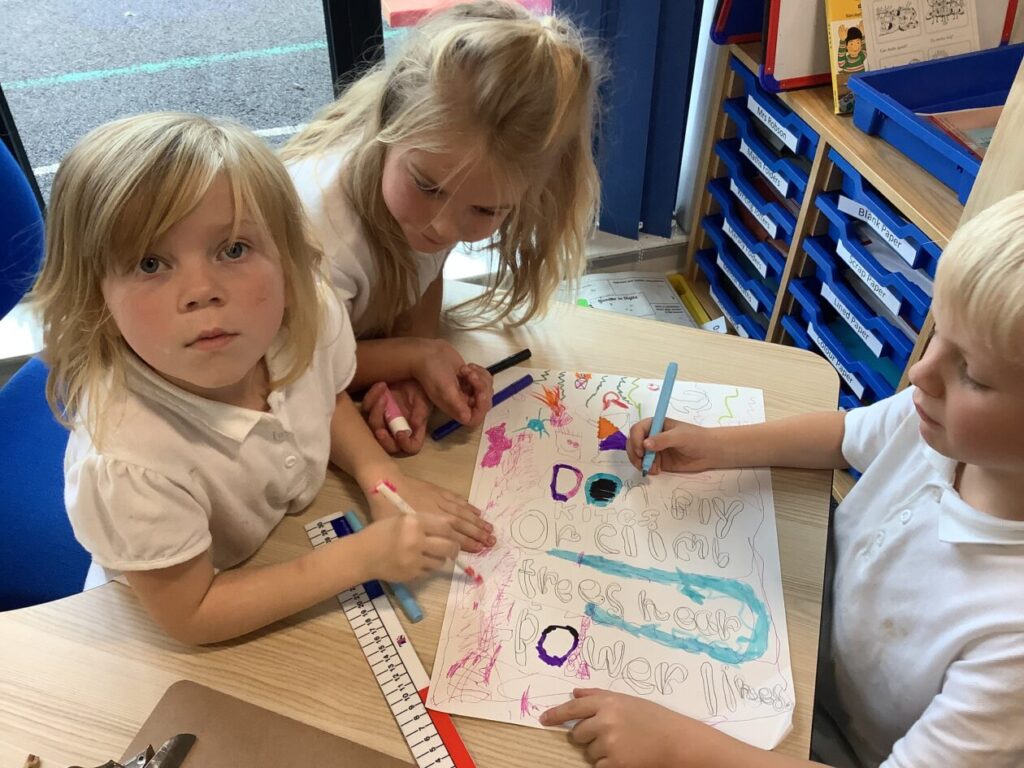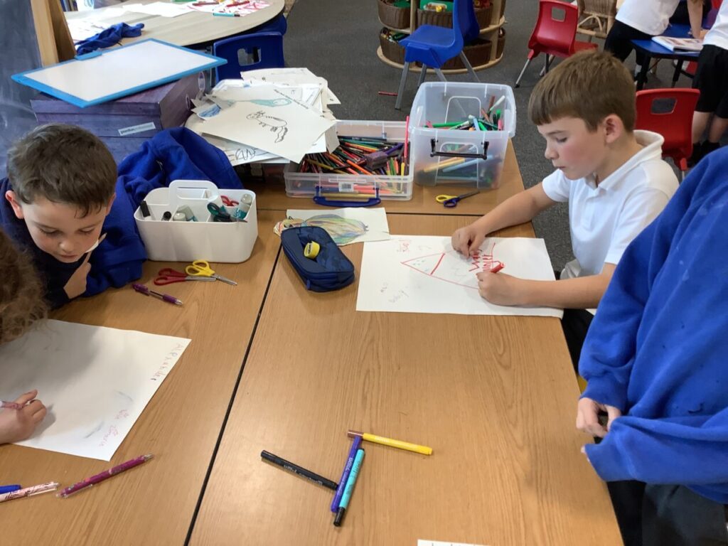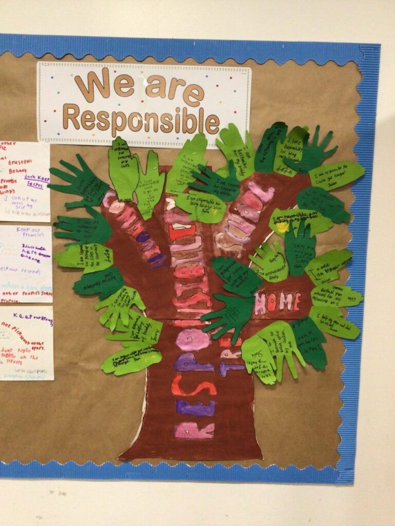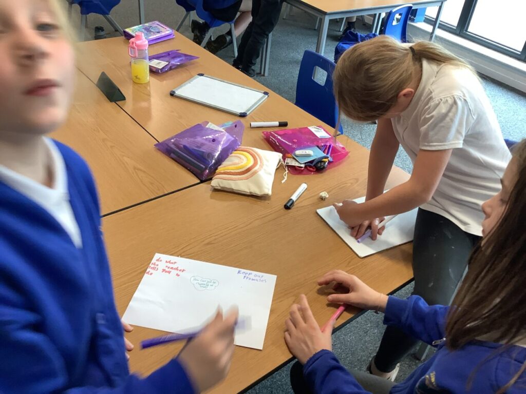 The blue class were making responsibility posters to see how we can be responsible at school and at home.