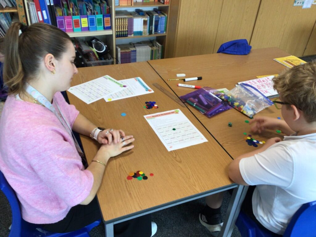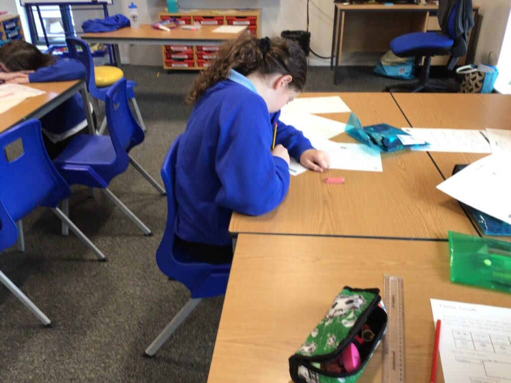 For maths our group was rolling dice to make numbers up 10 million, then saying them out loud and adding to them. – Lola