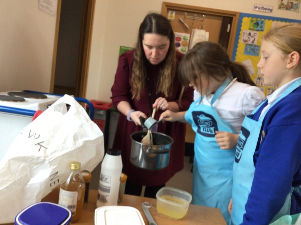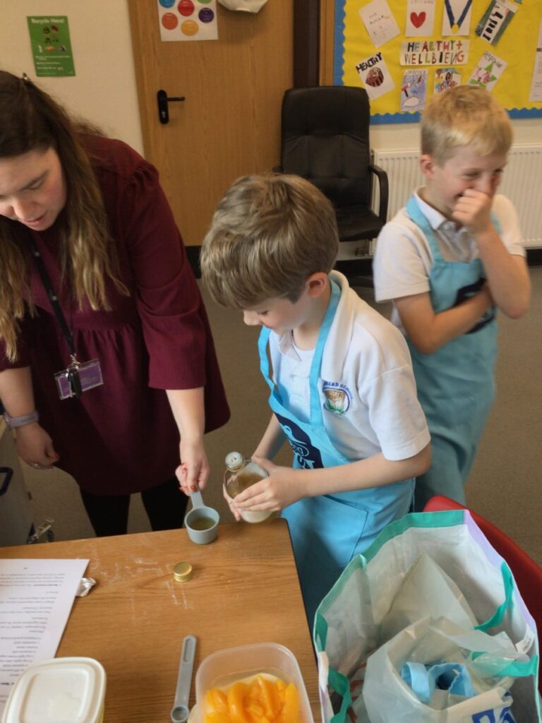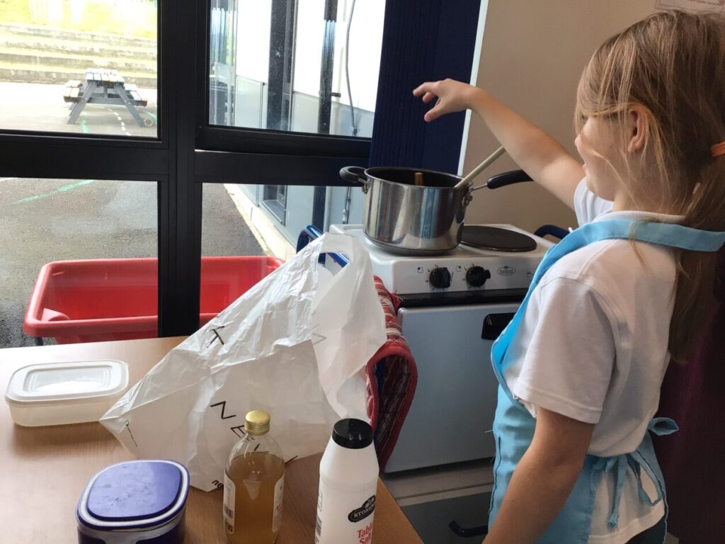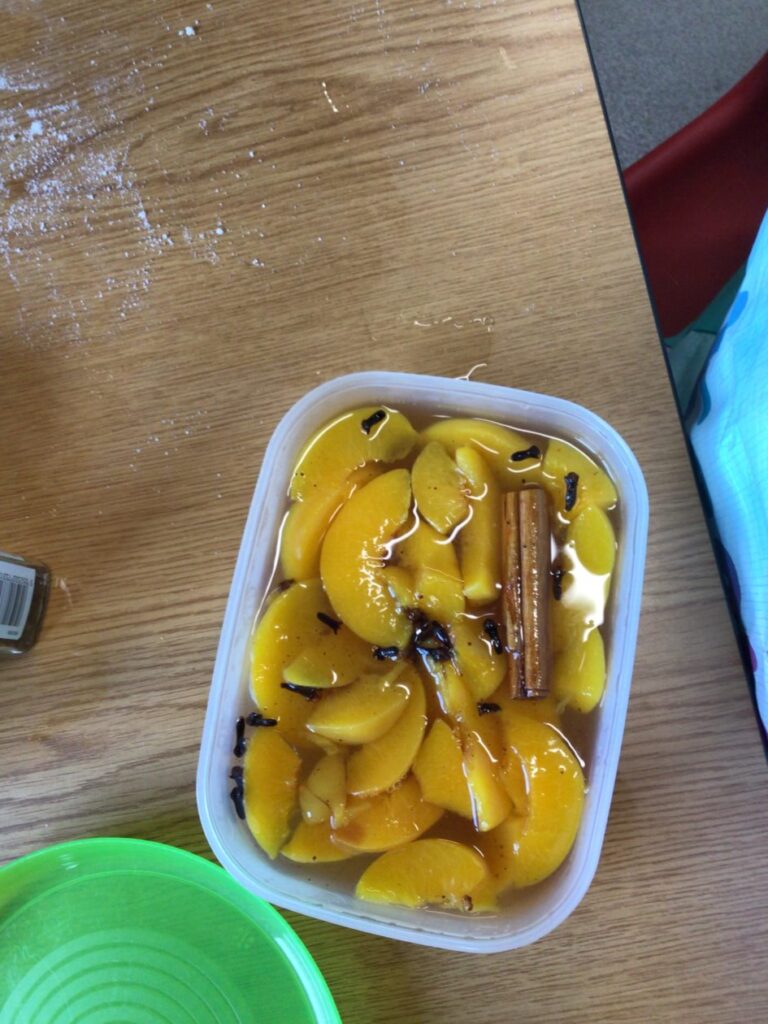 We were making spicy peaches based on the book ‘Holes’. We added clovers, cinnamon sticks, apple cider vinegar, salt, sugar and peaches. The taste was very strong. – Mirren