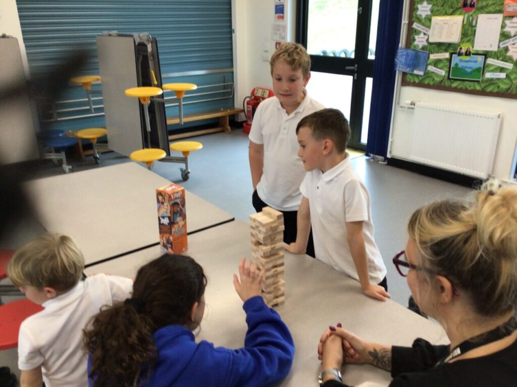 At playtime they were playing with giant Jenga that Mr T kindly brought in. – Asa