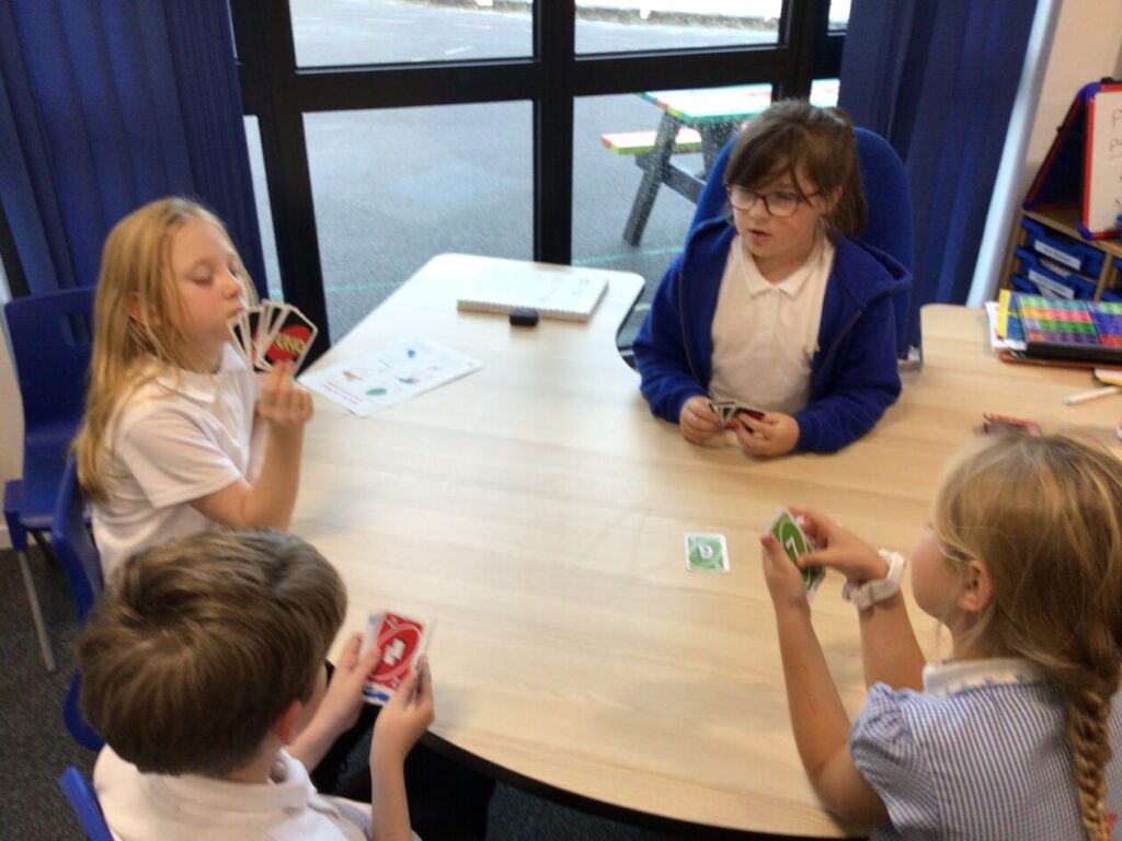 We were playing different games on Tuesday for a fun afternoon. We had to make sure we were following the rules and playing well together. My favourite game was Uno. – Mirren