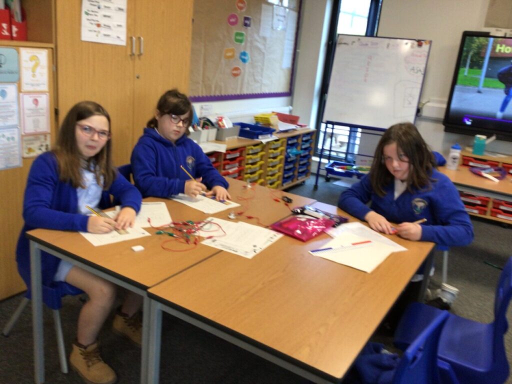 We were making posters for electricity safety. We also got to use the electric circuits. My one lit up a light. – Ruairi