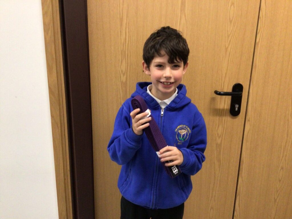 Bobby has now moved up to the purple karate belt!