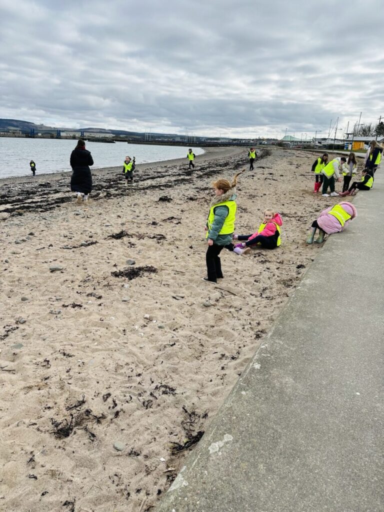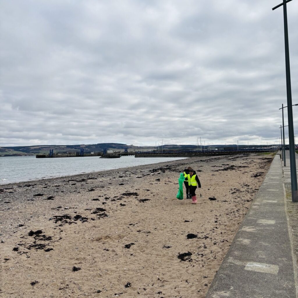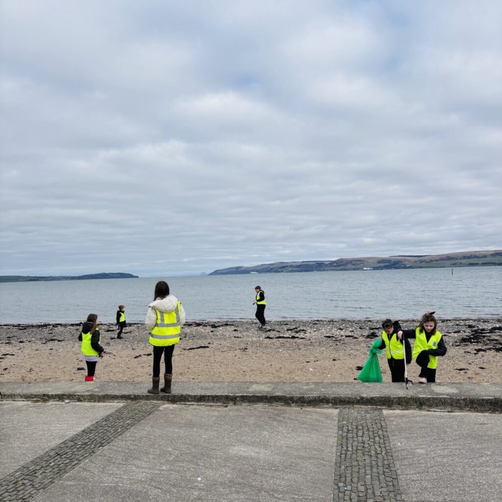 When we arrived, we were delighted to see that the beach was already very clean – a wonderful testament to our community’s efforts in looking after our local area. However, that didn’t stop our eager pupils from getting stuck in! We split into two groups and focused on collecting as much litter as we could from around Agnew Park.