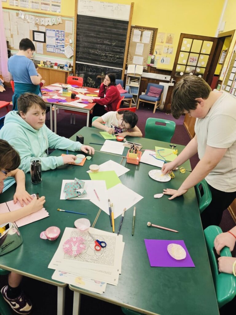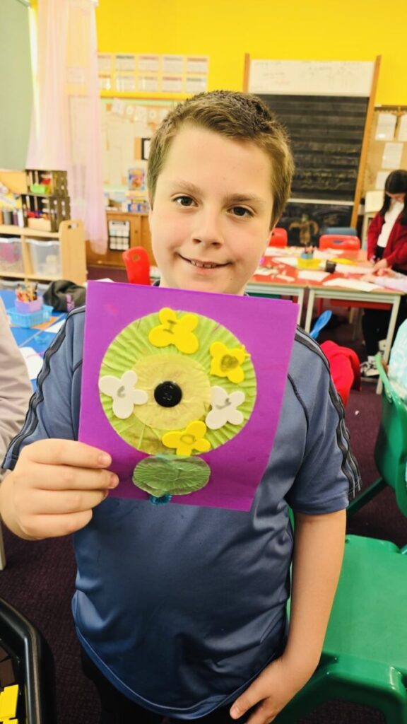 Over in the P1–4 classroom, the younger children also got stuck into their own wonderful cards and crafts, pouring lots of love and care into their work 🖍️.