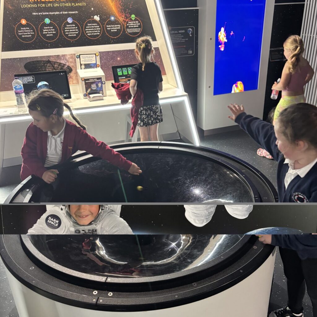On Tuesday, our P1β4 pupils had a fantastic adventure to Kirkcudbrightβs Dark Space Planetarium! From the moment we arrived, the children were buzzing with excitement β and the experience didnβt disappoint. The Planetarium offered a brilliant mix of interactive exhibits, hands-on learning, and engaging activities that truly brought the wonders of space to life.