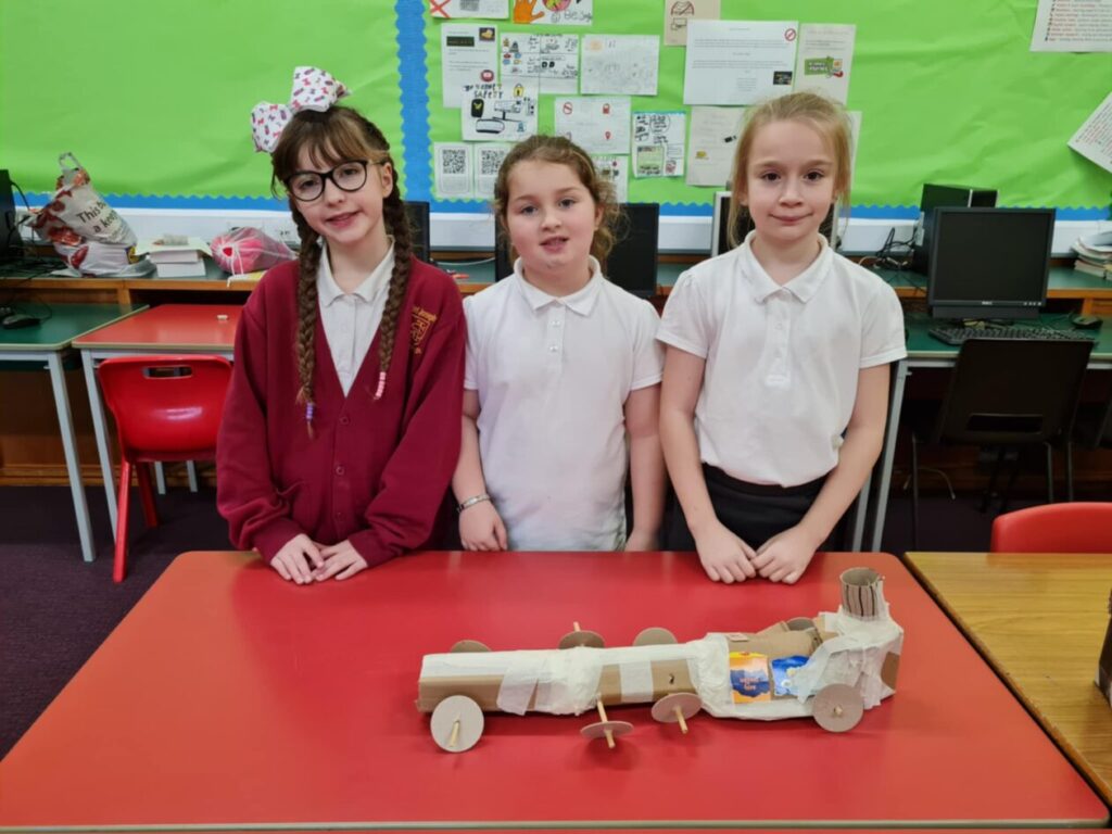 This week P5-7 began an exciting STEM project for Rail 200! Each teamis designing and building a train model from junk and cardboard, including one moving part.
