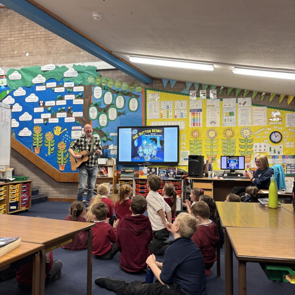 A highlight of the day was working together to create an original song, linked to the themes in Alan’s books. The children sang, moved, and even finished the session with a dance, celebrating their learning in a fun and memorable way.