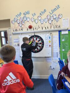 The three Primary 7 House Captains represented the school on Sunday at the Remembrance service at the war memorial. Brendan and Richie read ‘Flanders Fields’ and Freya laid the wreath. All of Primary 6/7 then visited the MGuffie Arch on Wednesday to place their crosses. Primary 6/7 are also very happy to say that since August they have been working together to gain 1,000 class points to win a big class prize. This week they achieved this and now have a dart board for the classroom. They are hoping for another 1,000 points before Christmas.