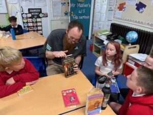 On Friday we had an Author visit from David Flannigan who wrote ‘Uncle Pete and his undersea Adventure’. We read the first chapter of the book before we went to get an idea of what it was about. We really loved the characters and the silly inventions right from the start!