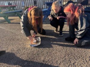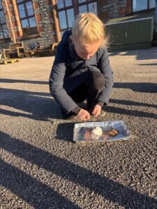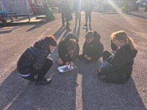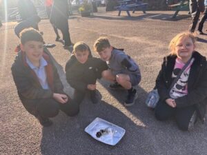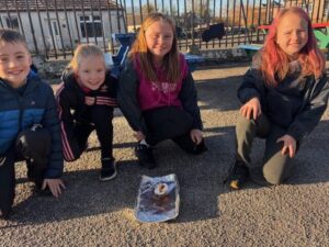 On Monday the 17th November, the whole school was involved with Outdoor Classroom Day. The P4/5’s needed to wrap up in warm clothes as it was very cold! For part of the day we learned about road safety – in particular driver blind spots and stopping distances. We sat inside a car and had a classmate walk around it. We realised we couldn’t see then all the way around – which is a blind spot. We also looked at stopping distances and were shocked to see how long it takes for a car to stop at 20 and 30mph! If it was 60mph, the stopping distance would have been bigger than the bottom playground, through the school fence and into the houses beyond!