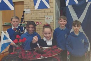 Primary 6 enthralled the parents with their fabulous Burns Supper. Having sent out their digital invitations to parents the young people impressed them with music, poetry, dance and speeches during the afternoon and there was haggis, neeps and tatties to enjoy as well. A special thanks must go to Grants and Brownings for their wonderful donations towards the afternoon. Many thanks also to the parents who attended and who helped create such a good atmosphere and response for the children. Such a super time had by all!