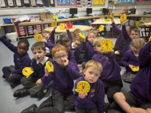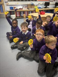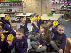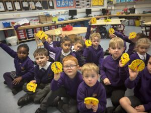 We were learning all about 2d shapes with Mrs Haggerty. We got to explore lots of shapes, heard some songs and then made patterns.