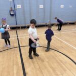 During PE we were learning all about badminton. We played a few warm up activities before we were getting the chance to use balloons to practise our technique. We moved on to using shuttlecocks. They were flying everywhere- some were describing them as rockets!!