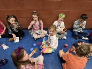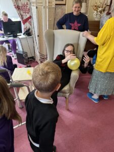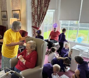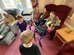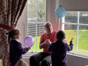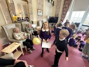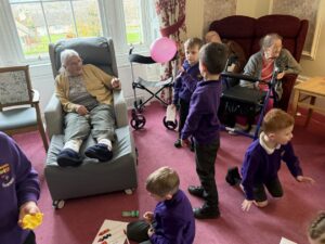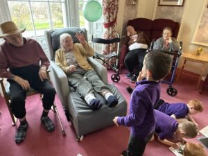 Today we visited the residents in Springhill Care Home. We had good fun, we played with balloons and bubbles, as well as making playdoh fireworks and fireworks pictures.