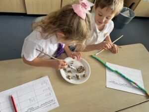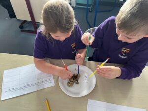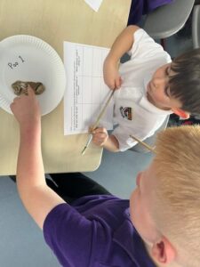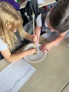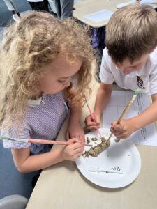 To learn more about carnivore, herbivore and omnivore dinosaurs, P2 had to investigate poo samples. They had to find out what was inside and decide what kind of dinosaur it came from. We recorded our findings on our observation sheets. The children had lots of fun although did question many times if it was real or not.